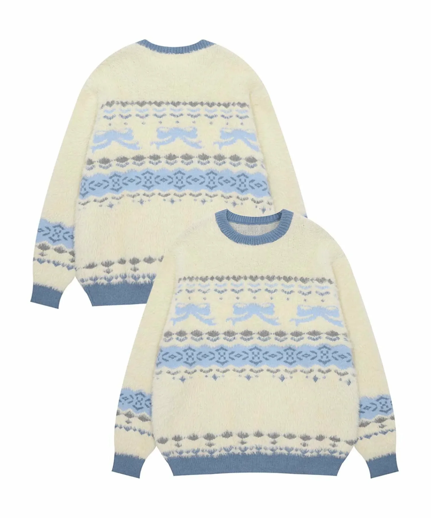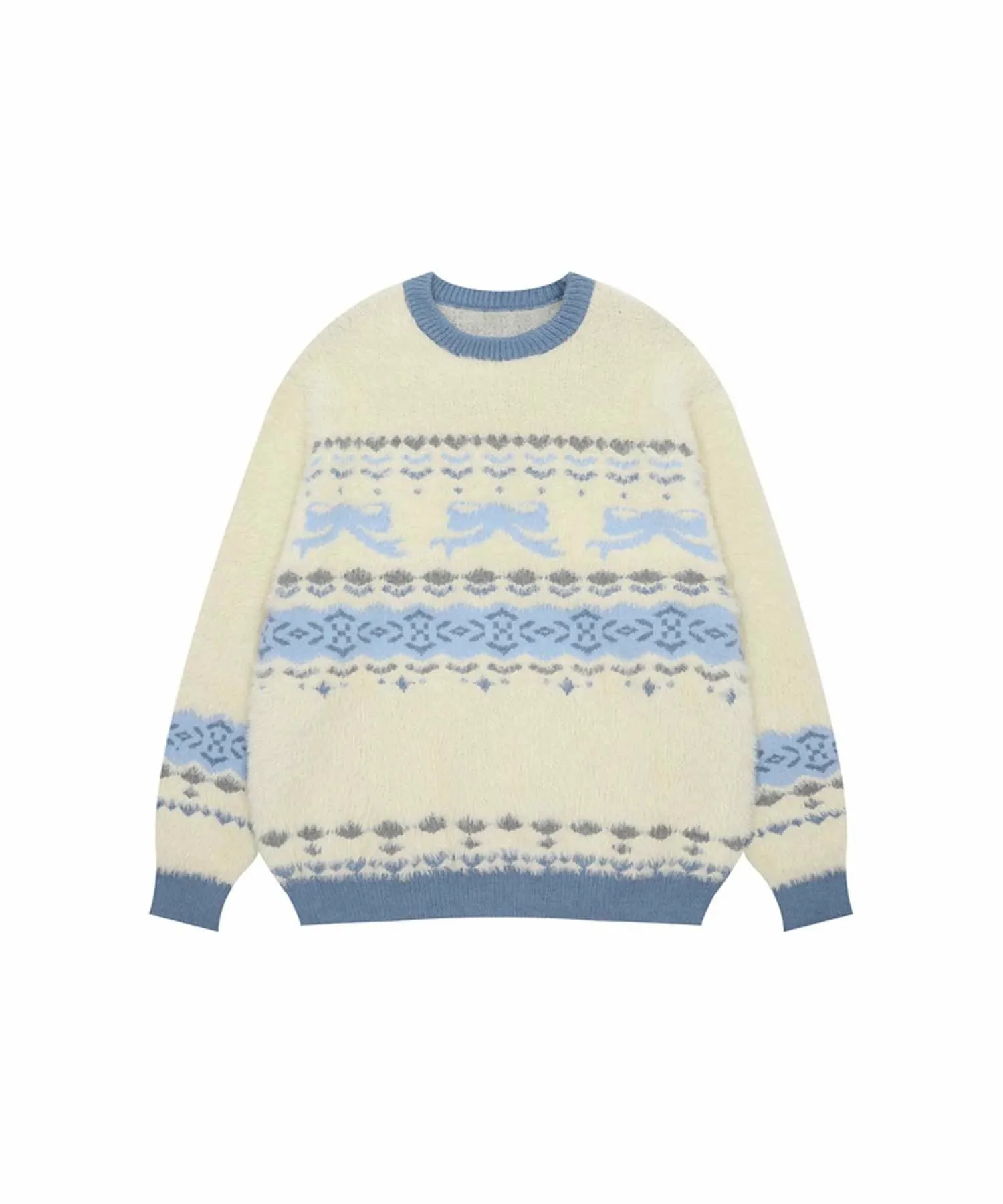 Вязаный свитер с пушистым узором в стиле Fair Isle, украшенный милой, «взрослой» лентой.