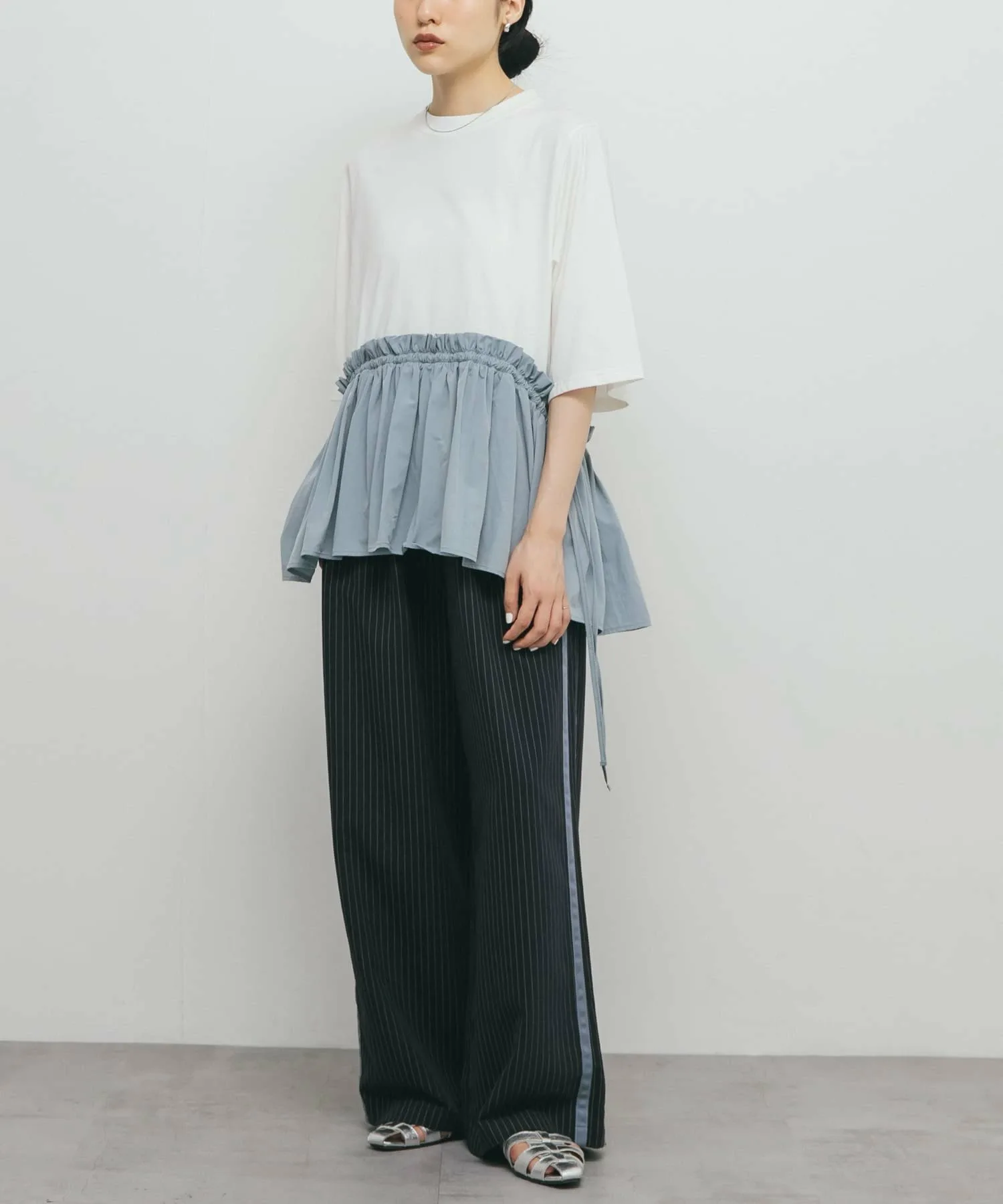 Этот топ сочетает в себе плотную тканую ткань и трикотаж для создания привлекательного силуэта. Затяните пояс, чтобы создать стройную, подчеркнутую талию. Длина идеально закрывает бедра, а трикотажная ткань обладает свойствами, предотвращающими появление пятен от пота, что идеально подходит для лета.