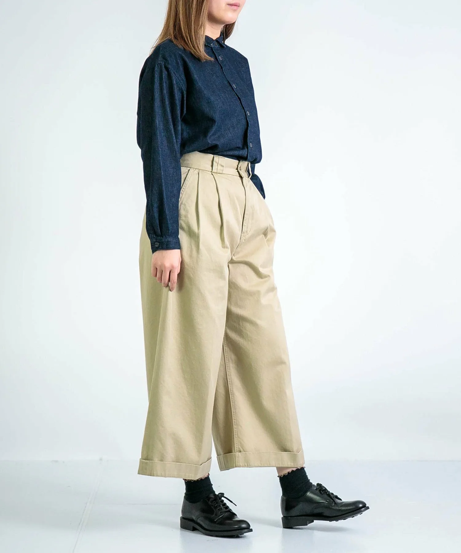 Изготовлены из ткани чинос с идеальной текстурой и легким блеском. Специальная обработка создает слегка потертый вид, напоминающий винтажные чиносы.Этот прочный материал не изнашивается при стирке и ношении, и вам не нужно беспокоиться о складках на коленях, поэтому чем больше вы их носите, тем более изысканным будет их вид.Эти кюлоты имеют две складки спереди и расклешенный силуэт А-образной формы.Линии учитывают объем спереди и сзади, при этом создавая впечатление стройности. Рекомендуем носить их с подвернутыми штанинами.Легко сочетаются с различными вещами, их можно носить как брюки или создавать сбалансированный образ, похожий на юбку.……………………Прозрачность: отсутствуетТолщина: обычнаяРастяжимость: отсутствуетМожно стирать: Да……………………100% хлопок