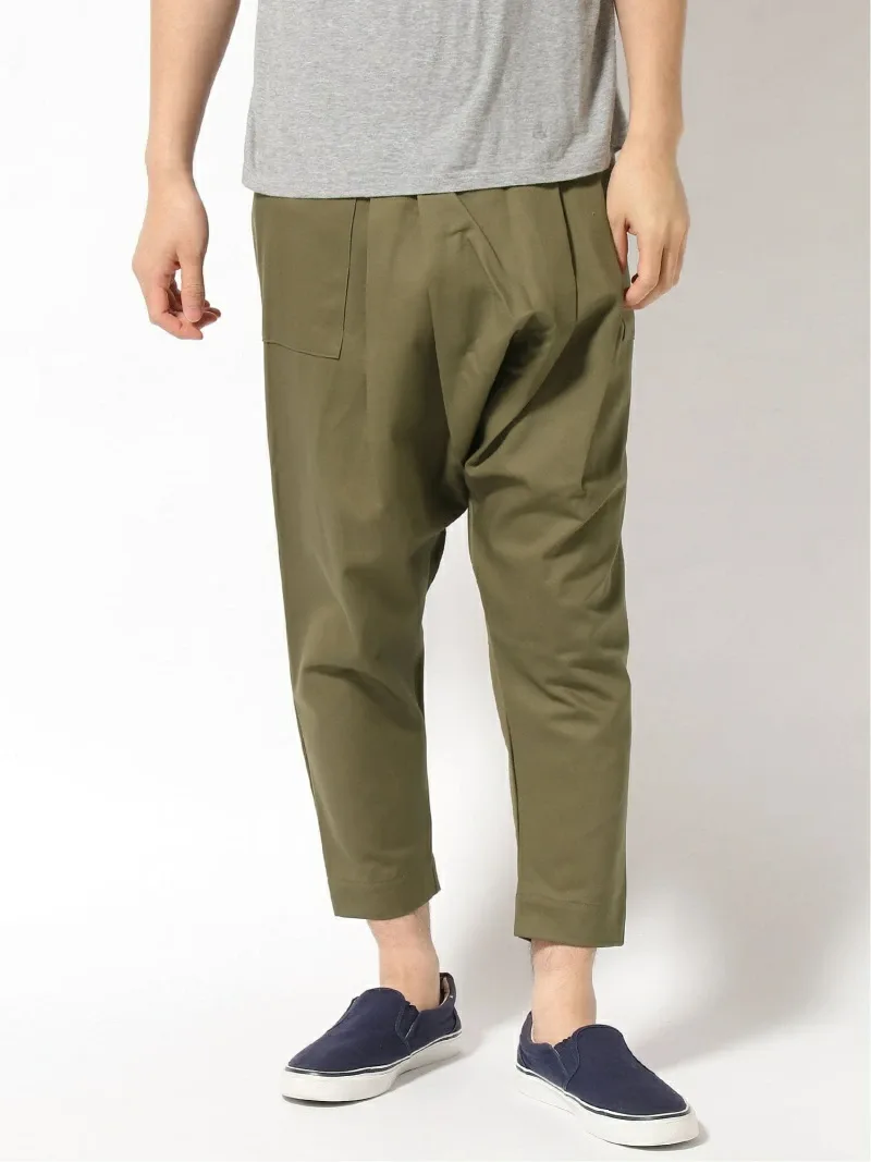 Зауженный силуэт устраняет склонность брюк саруэль к чрезмерному образованию складок в области промежности, создавая образ, который хорошо смотрится как на мужчинах, так и на женщинах.