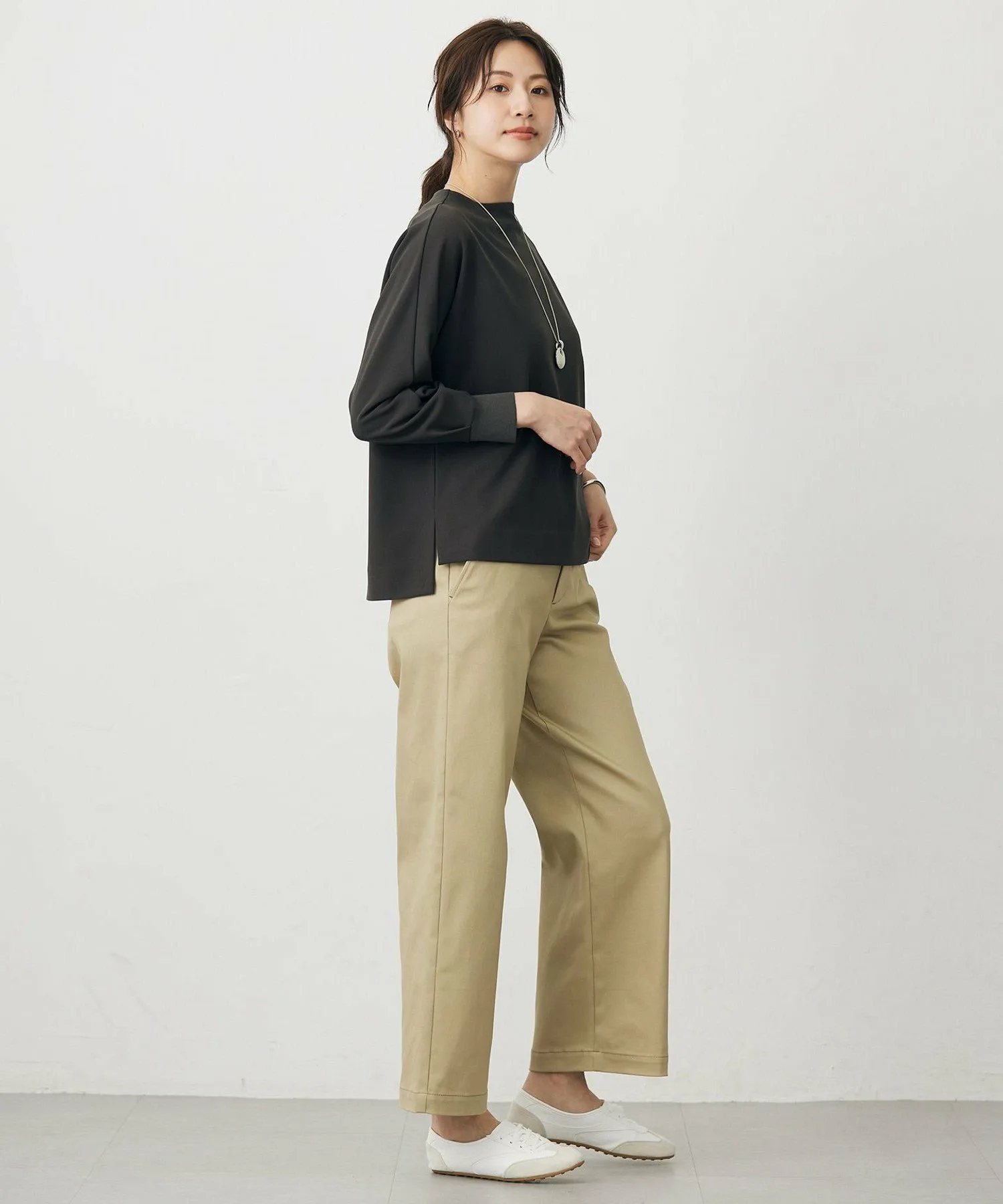 Дизайн: Этот топ с высоким воротником имеет свободный силуэт и хорошую вентиляцию, что делает его удобным в ношении даже в жаркую погоду. Широкий воротник устраняет дискомфорт в области шеи и создает осенний дизайн. Трикотажные манжеты создают изысканный контраст с топом, придавая ему утонченный вид. Разрезы добавляют образу непринужденности, создавая утонченный, но в то же время расслабленный образ, идеально подходящий для перехода между сезонами.