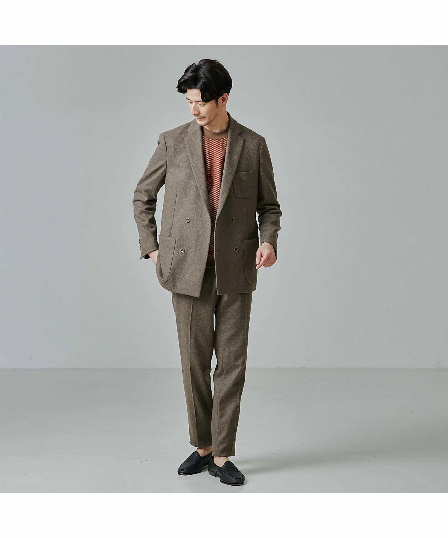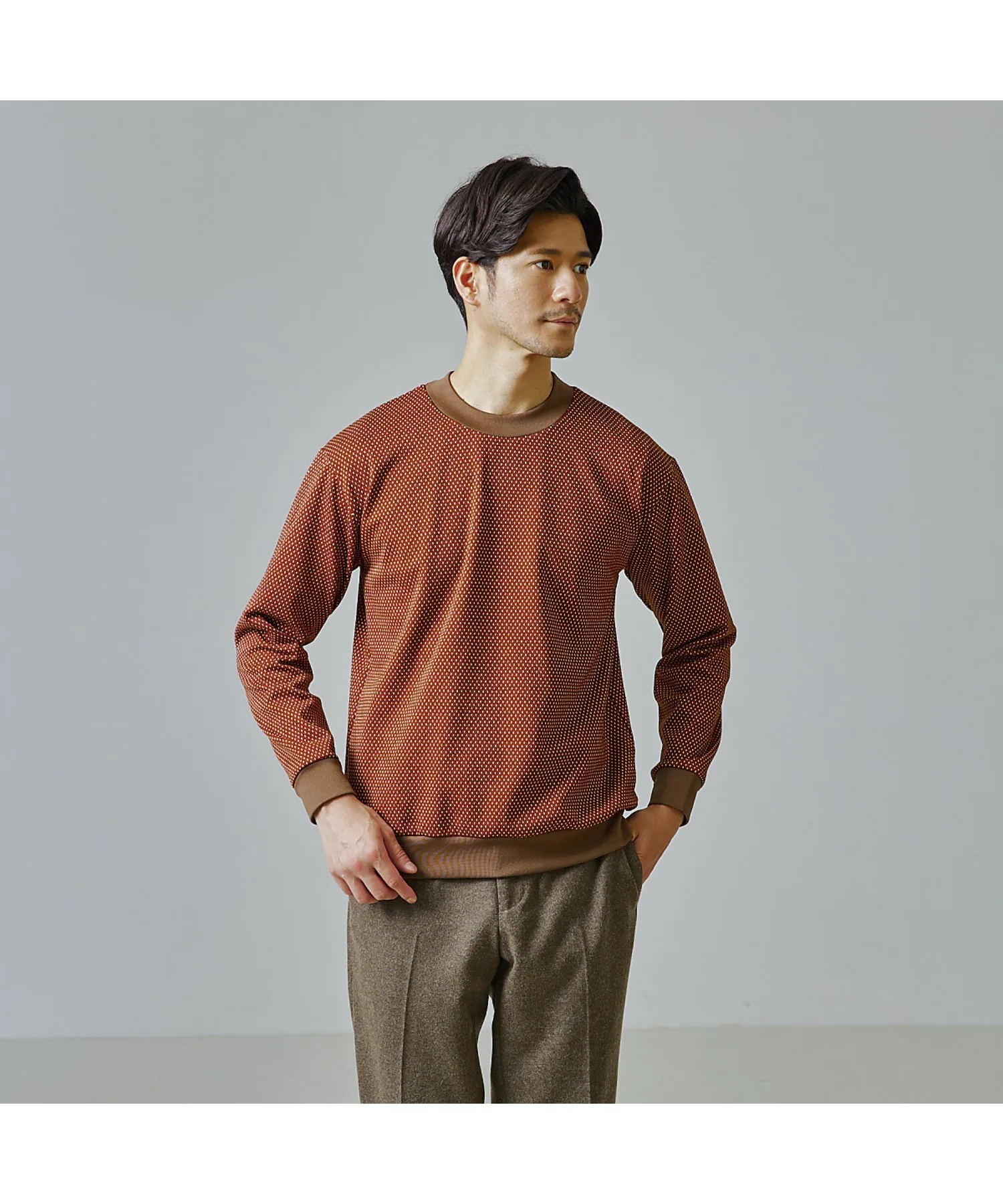 Тонкий узор придает ему смелый вид, поэтому его можно носить как самостоятельно, так и в качестве нижнего слоя. Можно носить с рубашкой под ним для элегантного образа или с жакетом похожего цвета для ретро-образа.