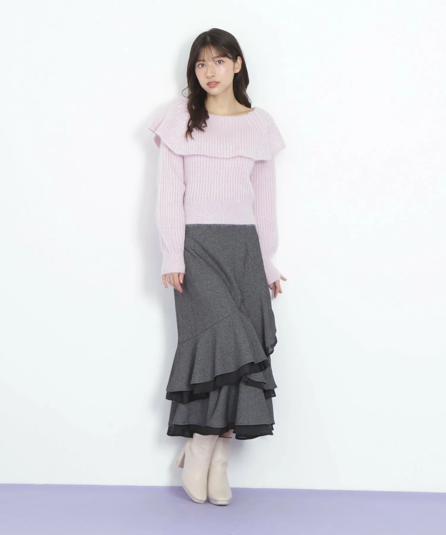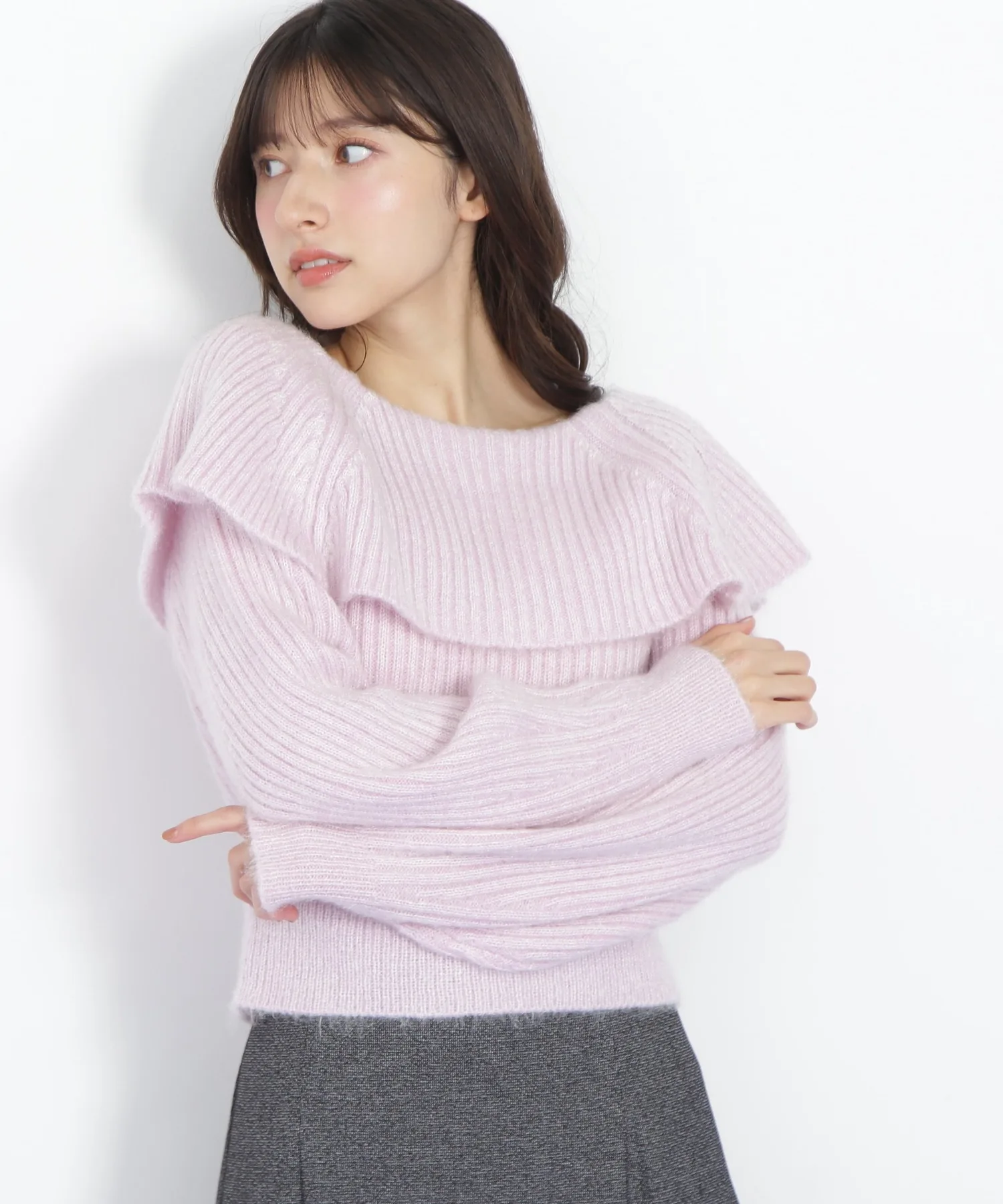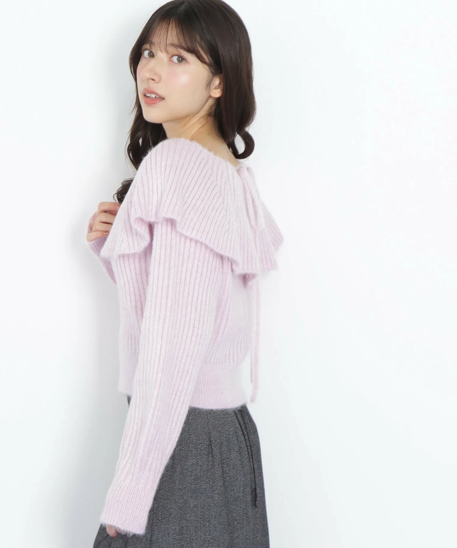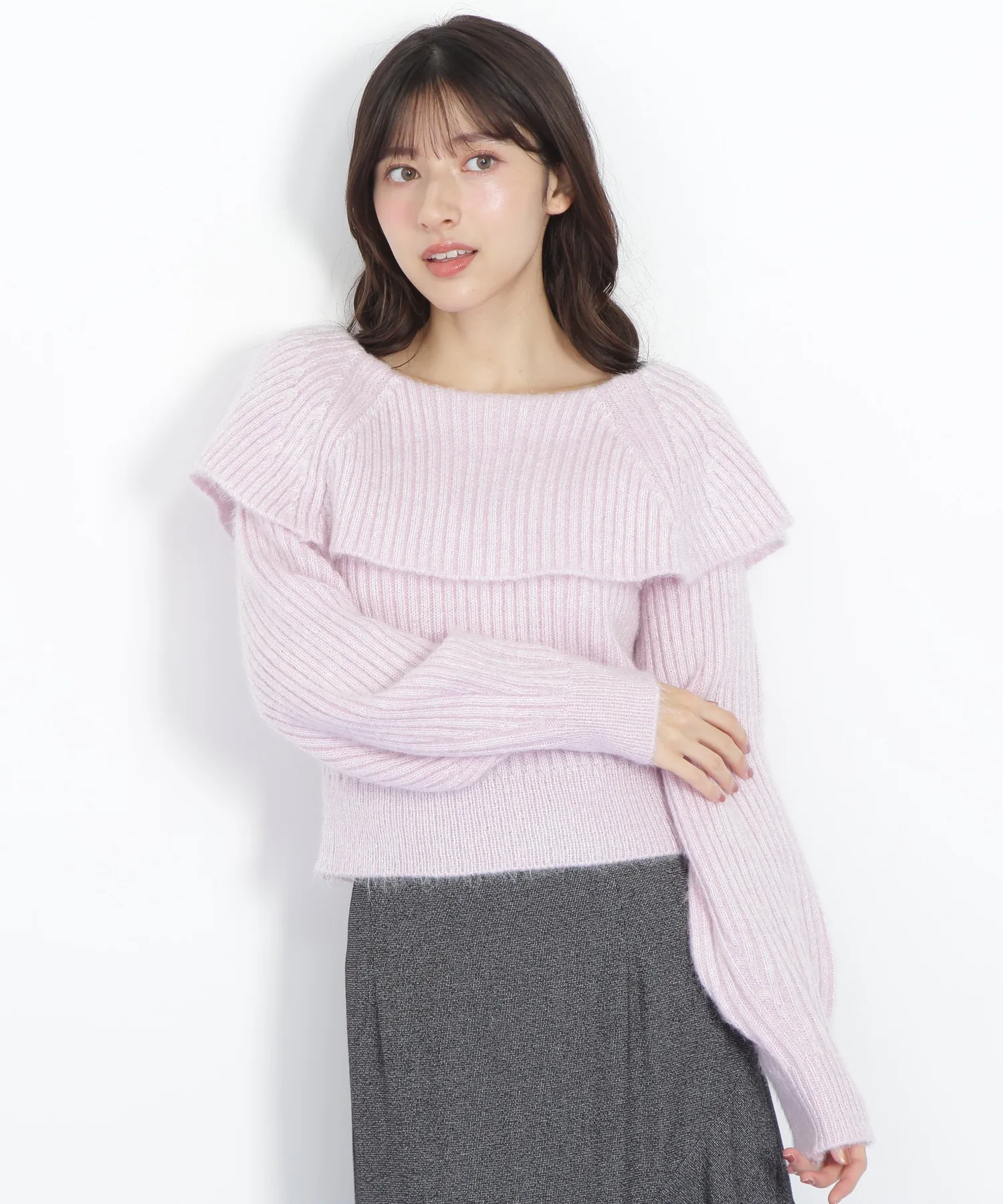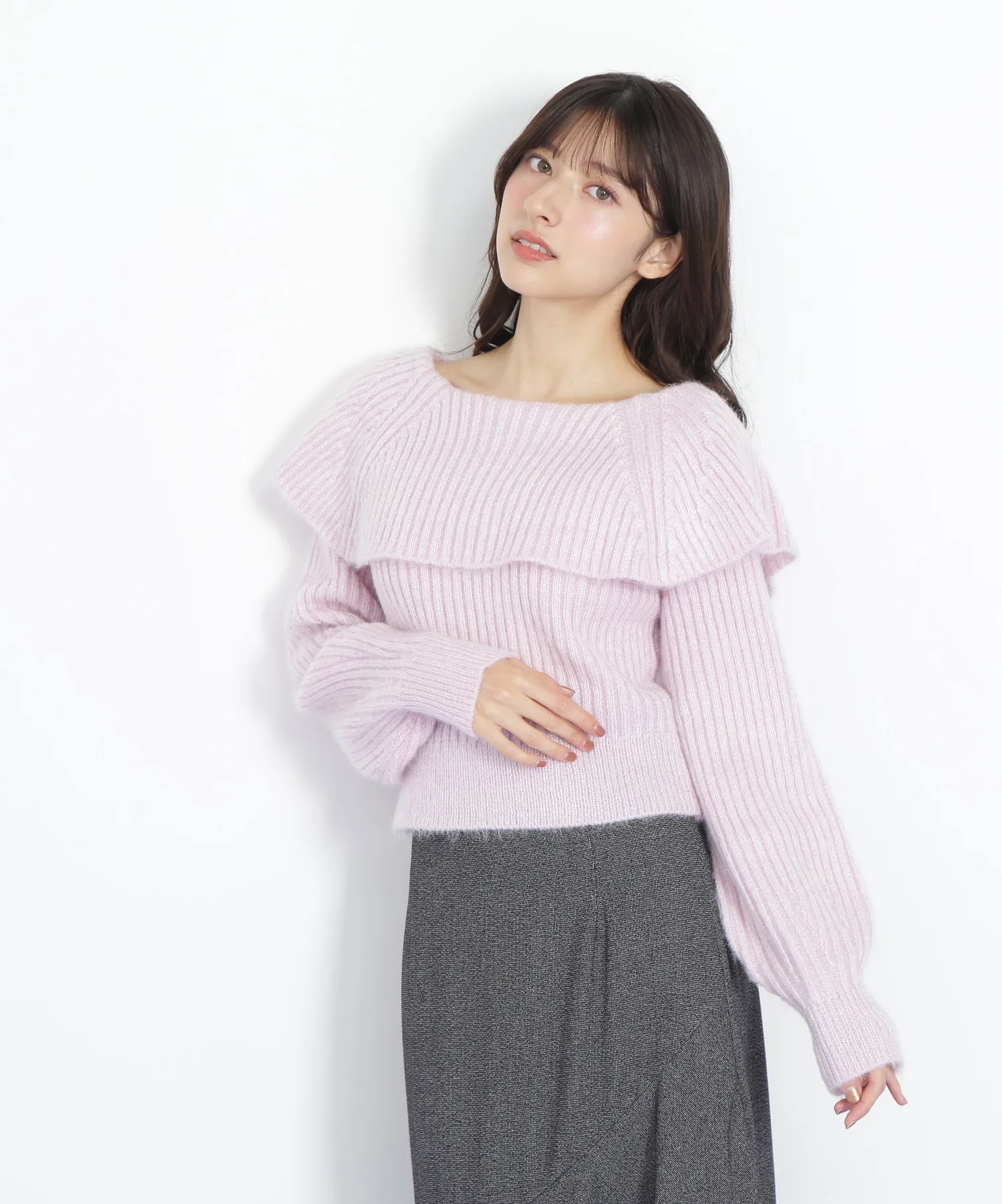 Главная деталь – большой вырез, напоминающий накидку. Слегка свободное, открытое декольте создает женственный образ.