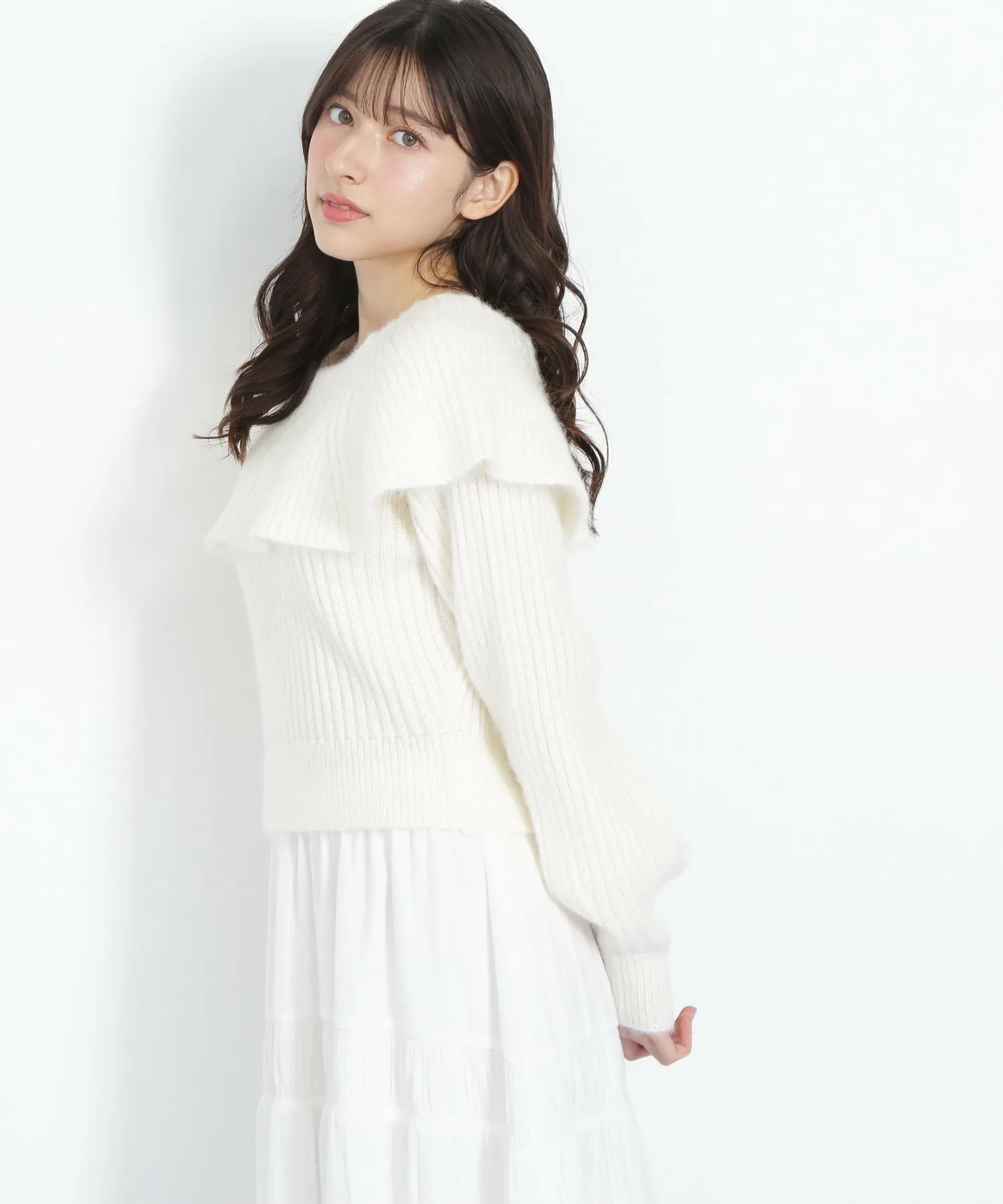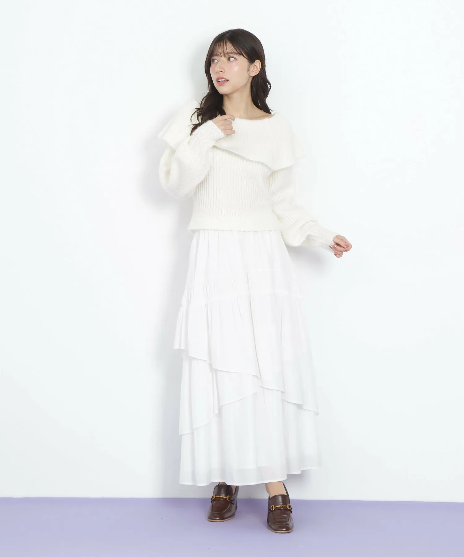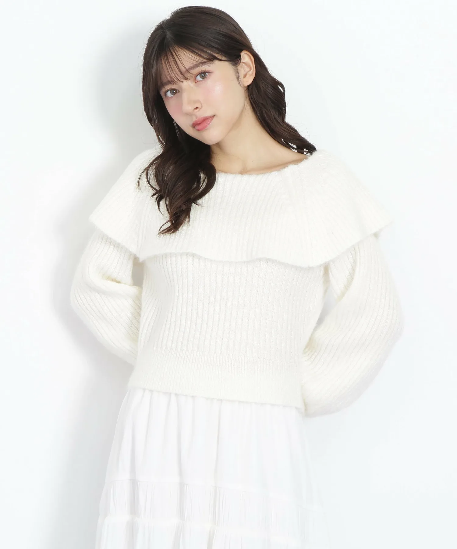 Главная деталь – большой вырез, напоминающий накидку. Слегка свободное, открытое декольте создает женственный образ.