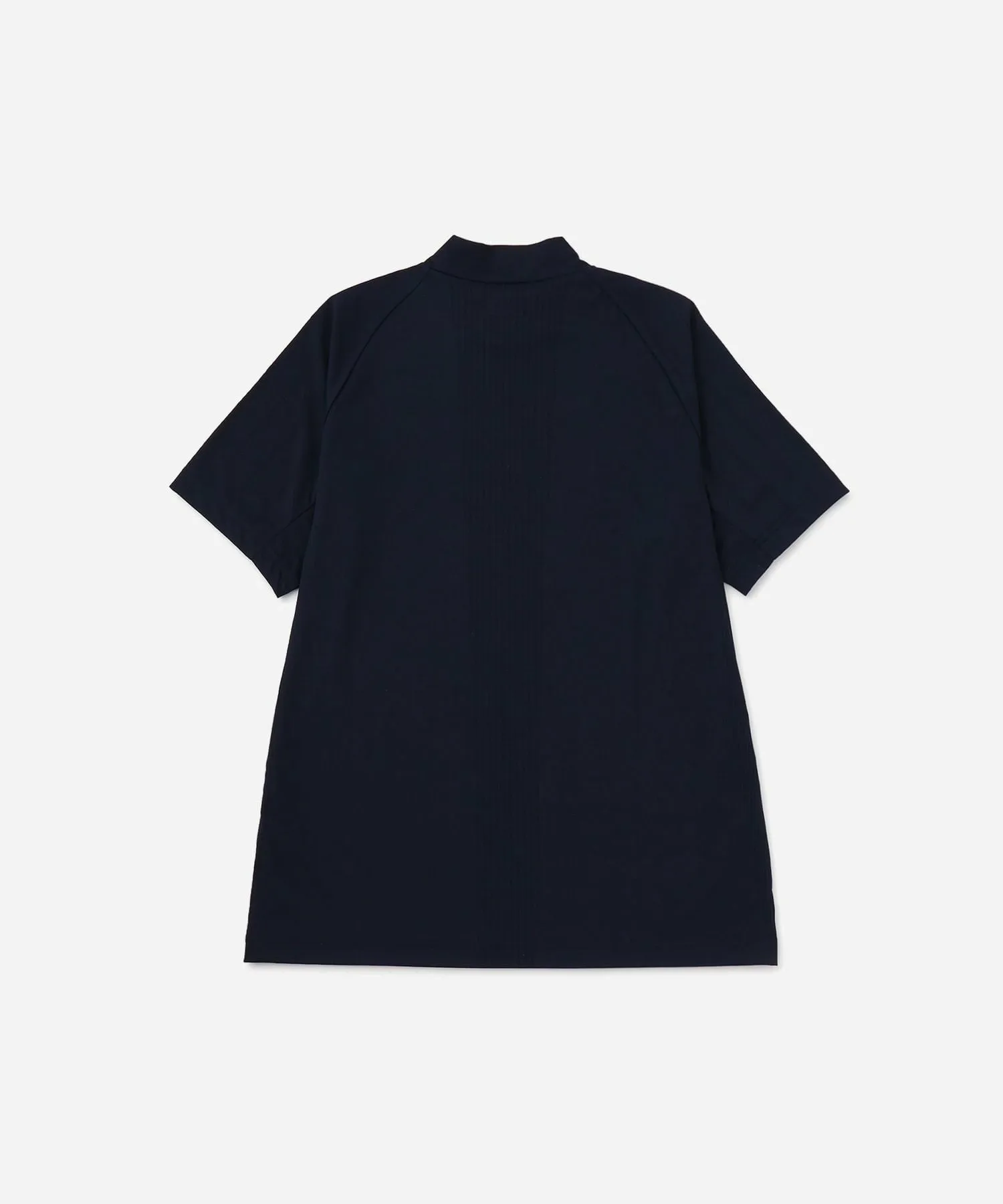 Рубашка с коротким рукавом и воротником-стойкой, узор которой вплетен в каждую панель с помощью специальной жаккардовой вязальной машины.
