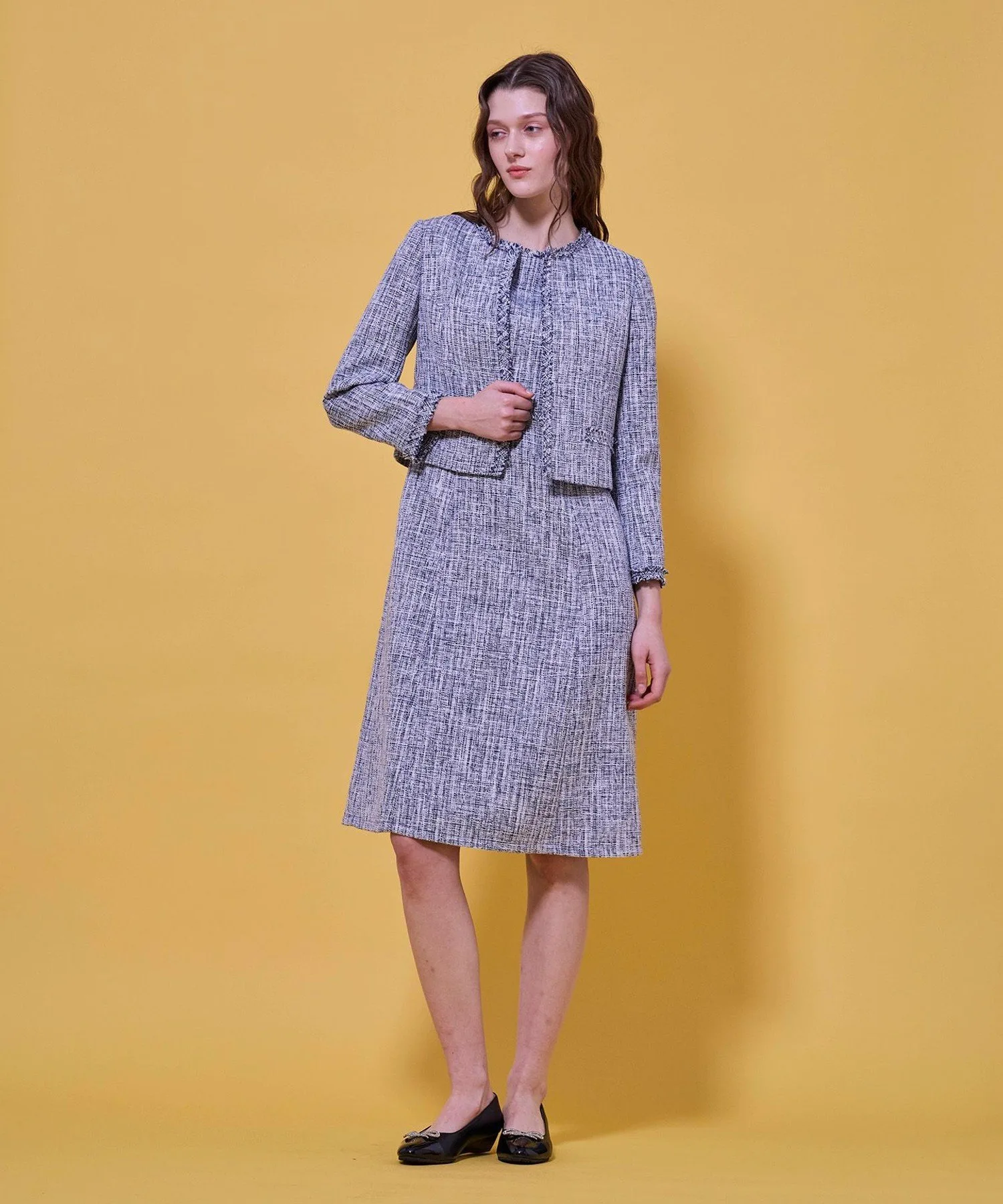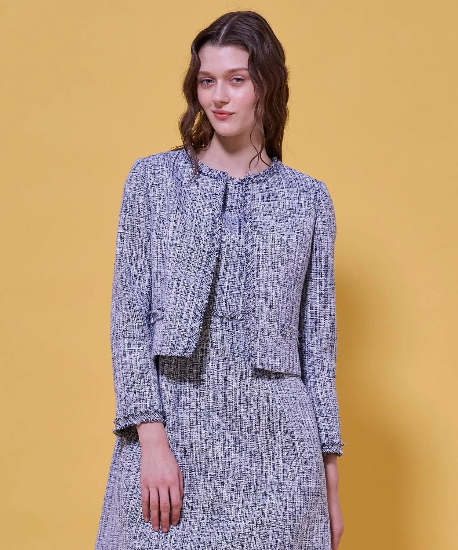 [Материал] Этот твидовый материал имеет оптимальную толщину и изысканную текстуру.