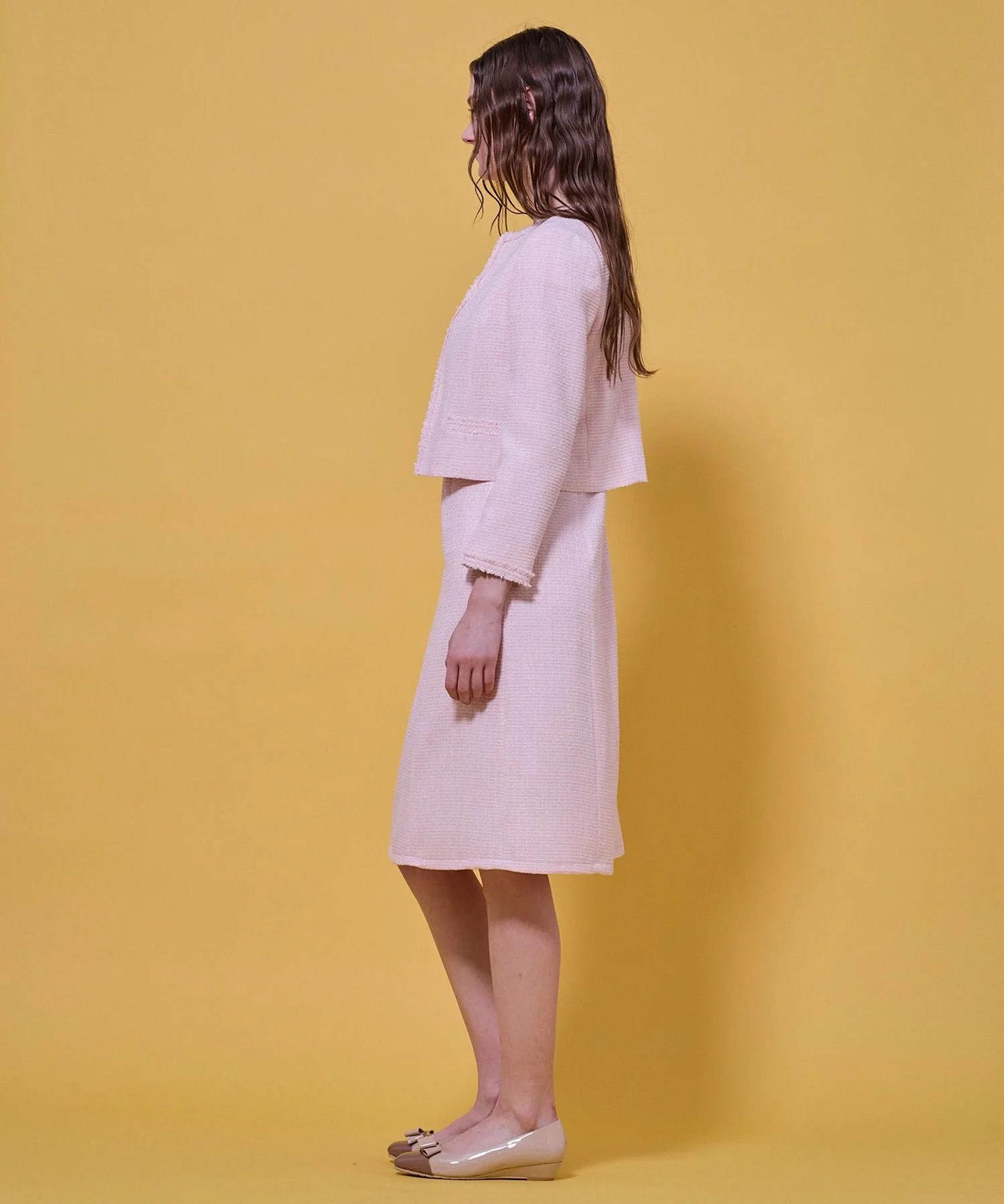 [Материал] Этот твидовый материал имеет оптимальную толщину и изысканную текстуру.