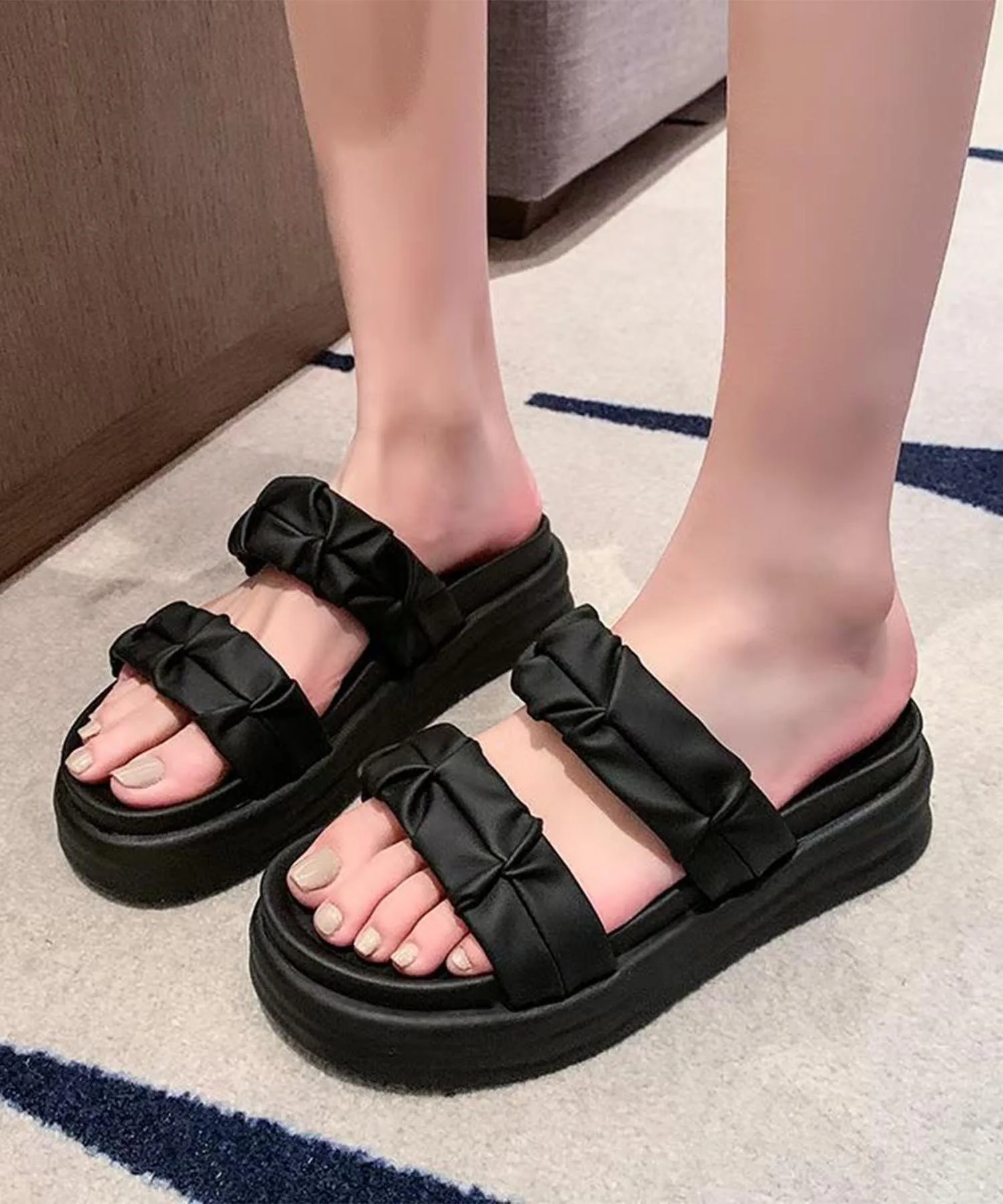 Эти сандалии на платформе украшены объемными складками. Благодаря оптимальному объему и очень прочной амортизирующей подошве, они удобны даже при длительной ходьбе.