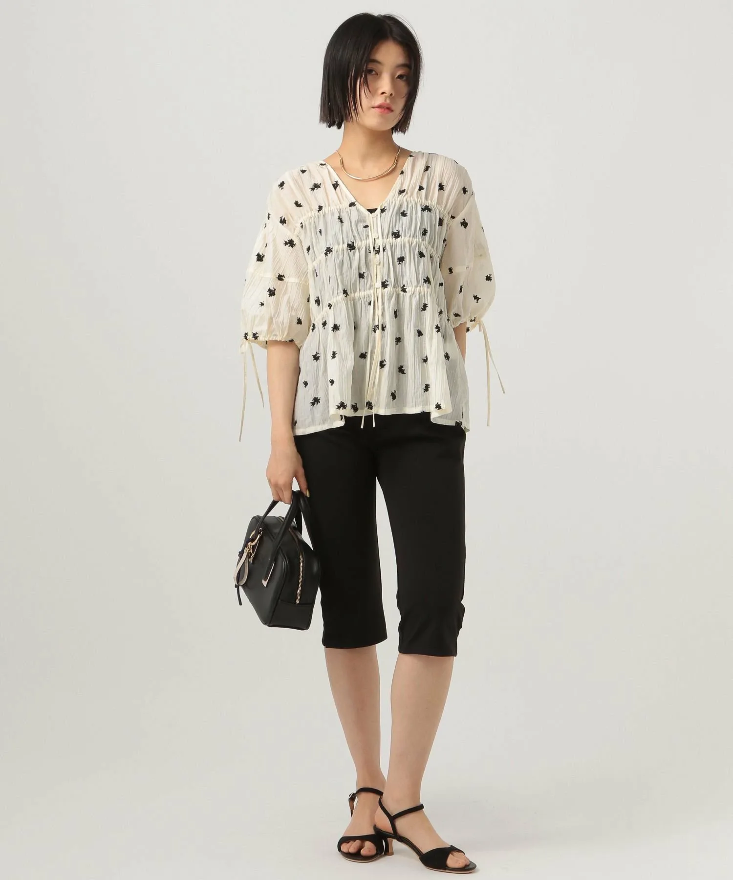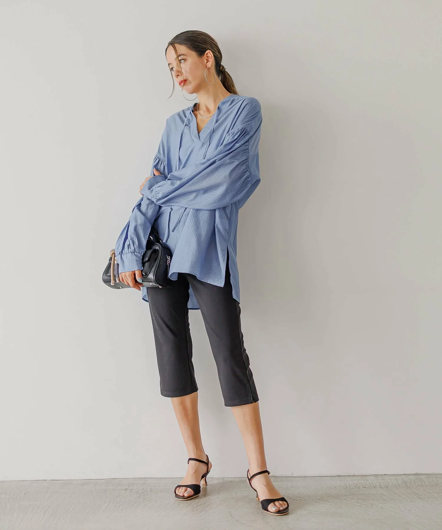 [Легкая и мягкая] Прозрачная туника с объемными рукавами 492359