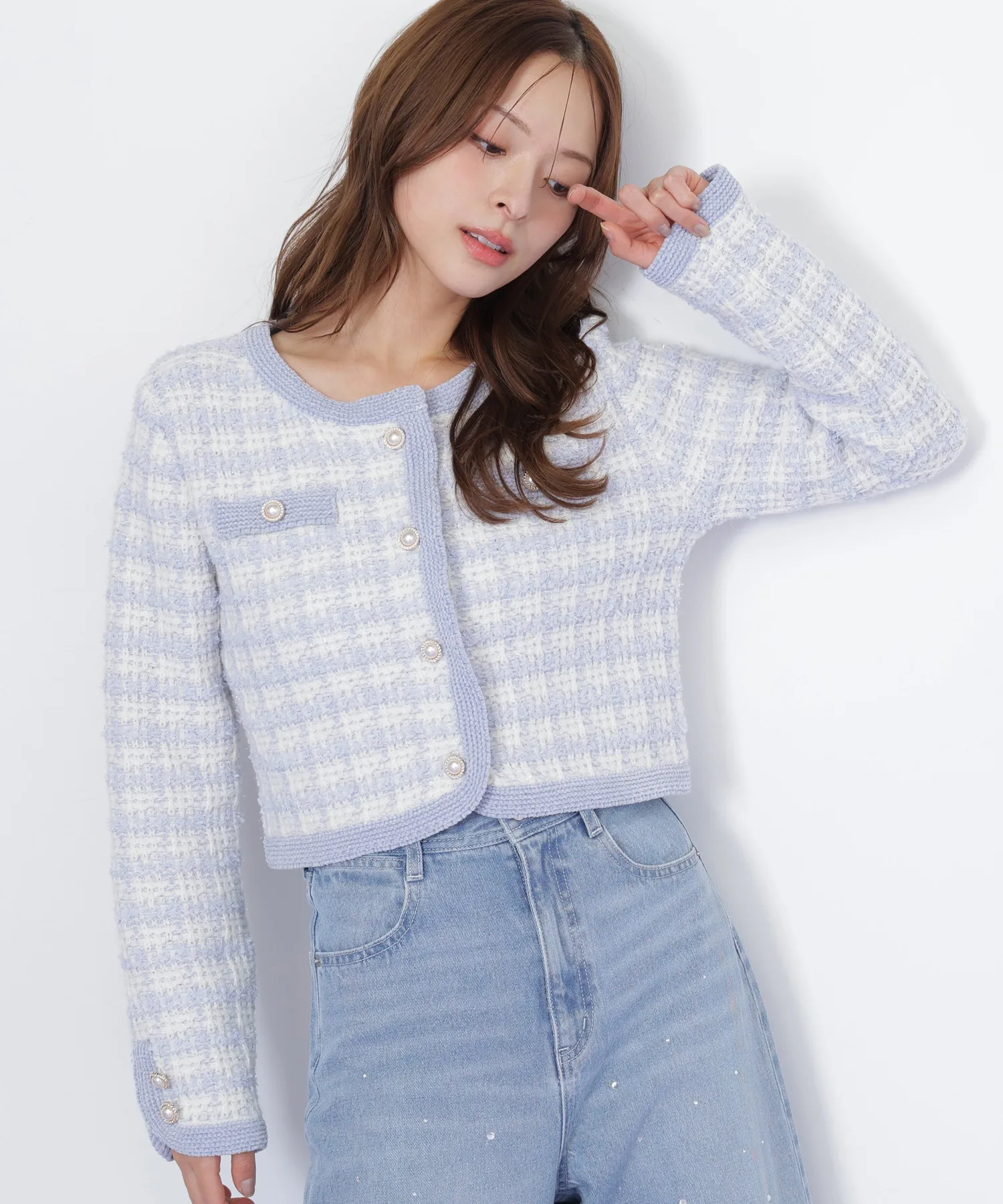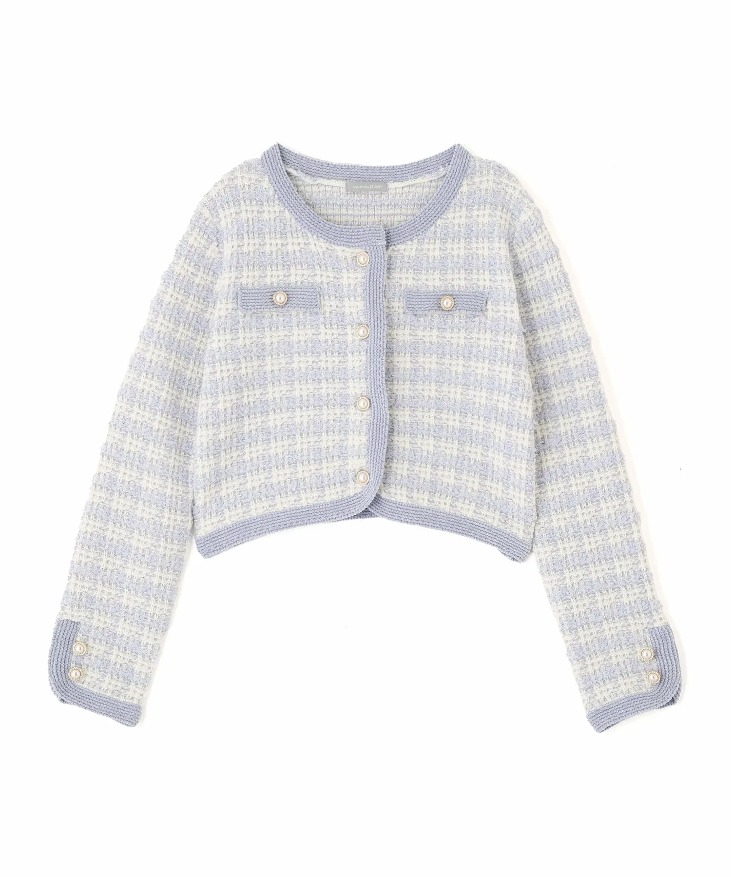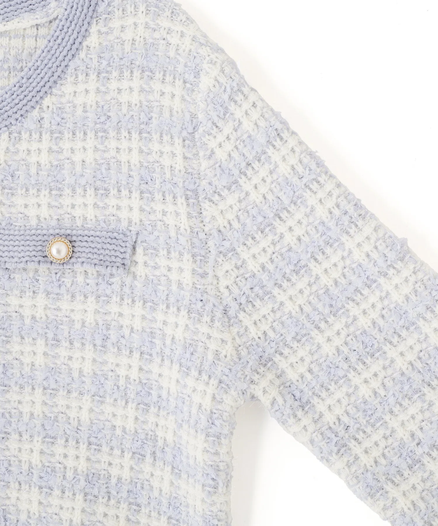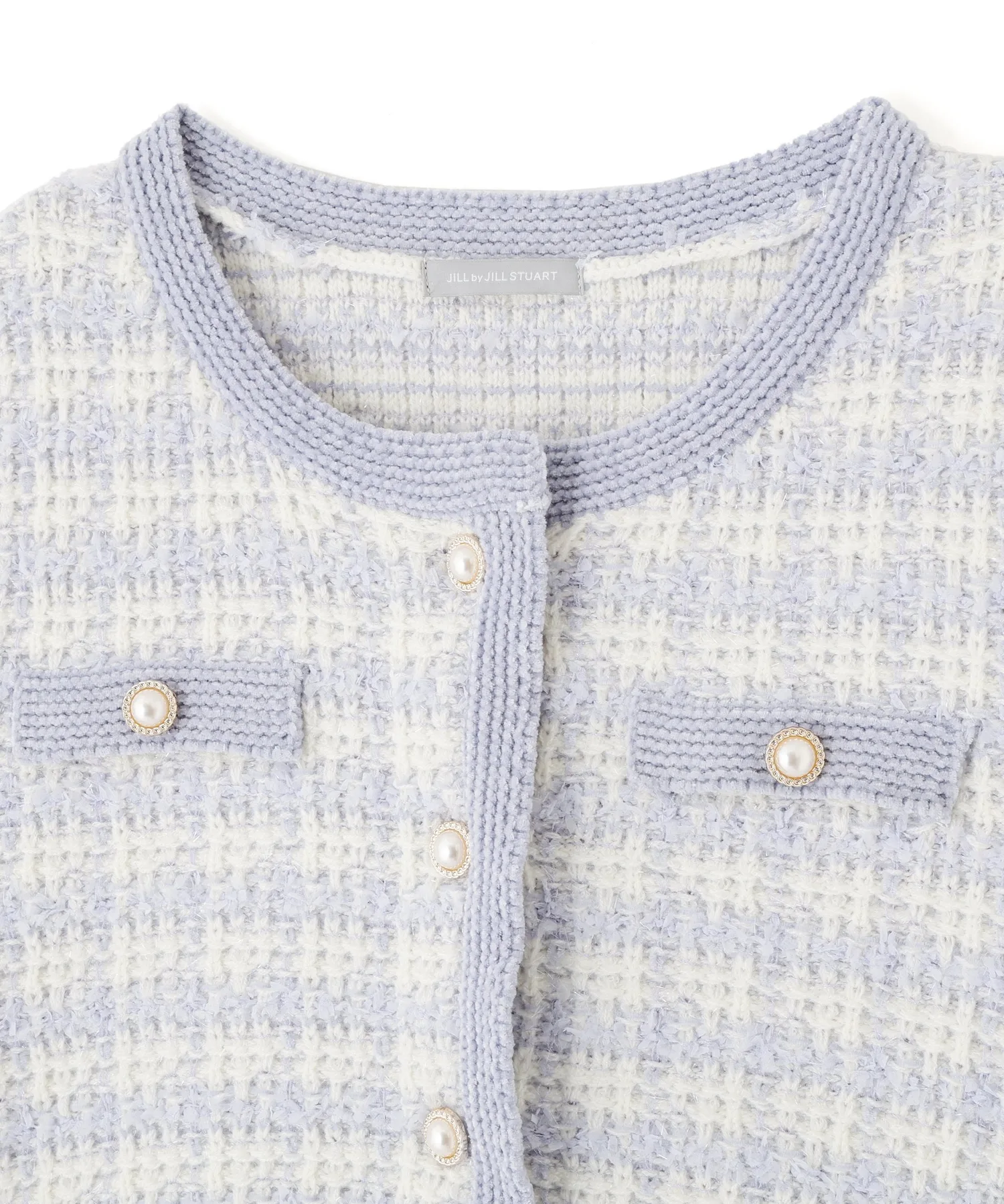 Вязаный жакет из твидового трикотажа, выполненного из мохера, блесток и ворсистой пряжи, отделанный мохеровой пряжей в виде косички.
