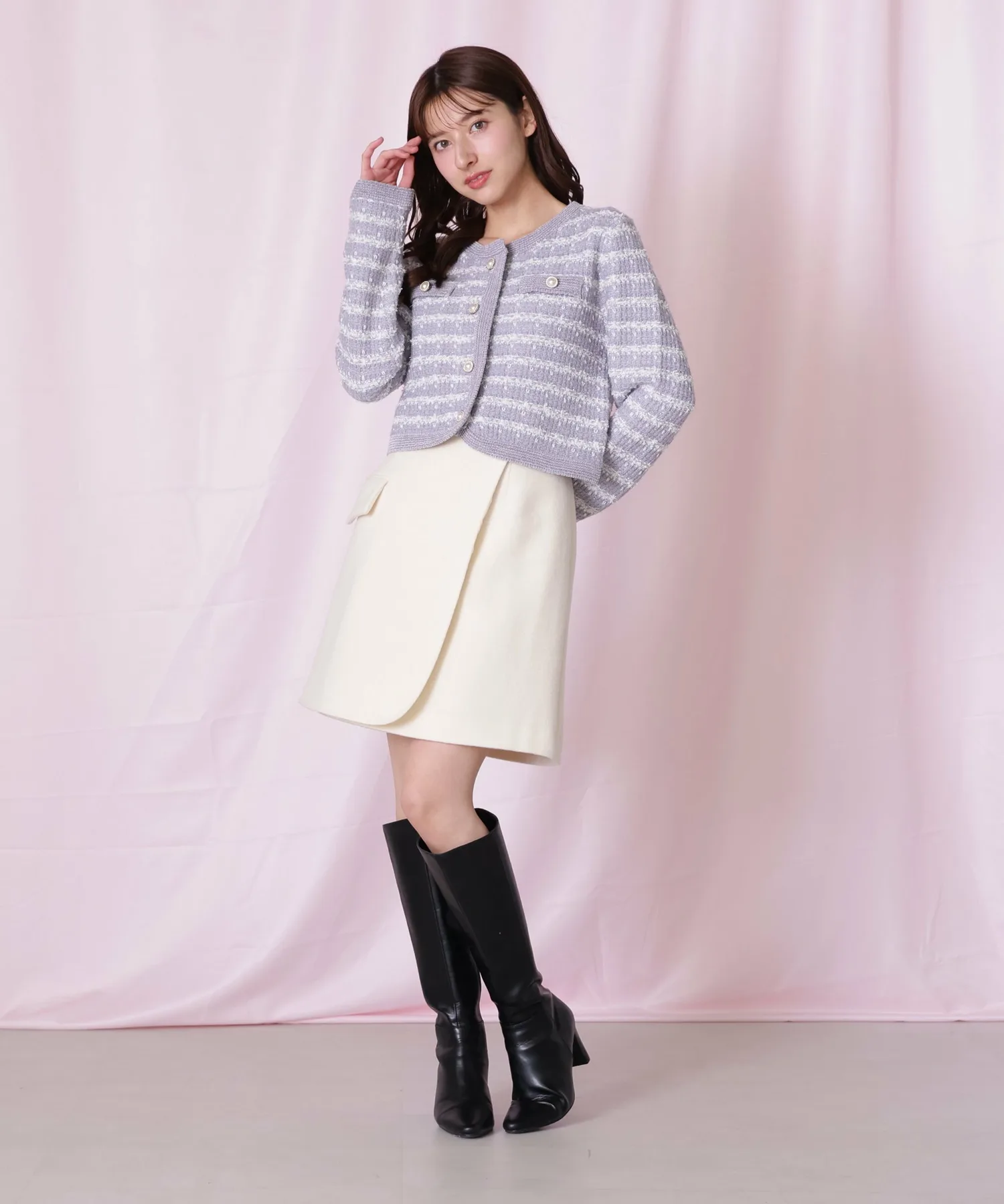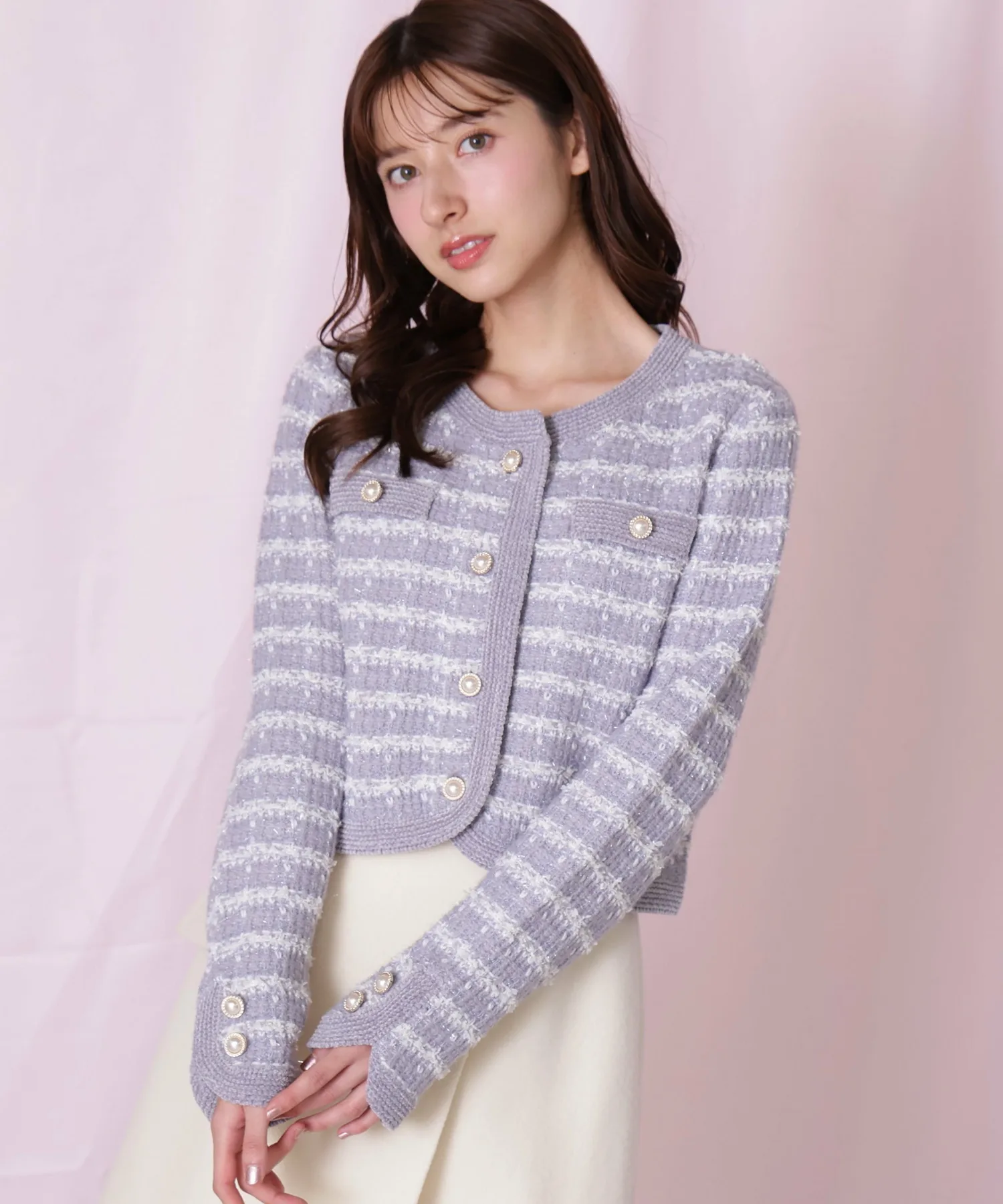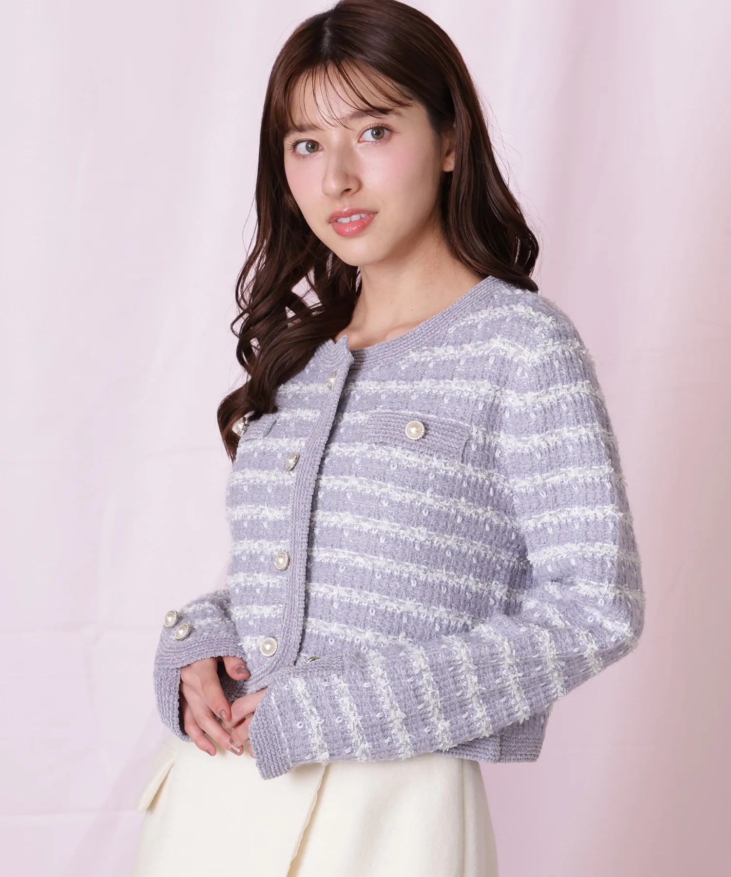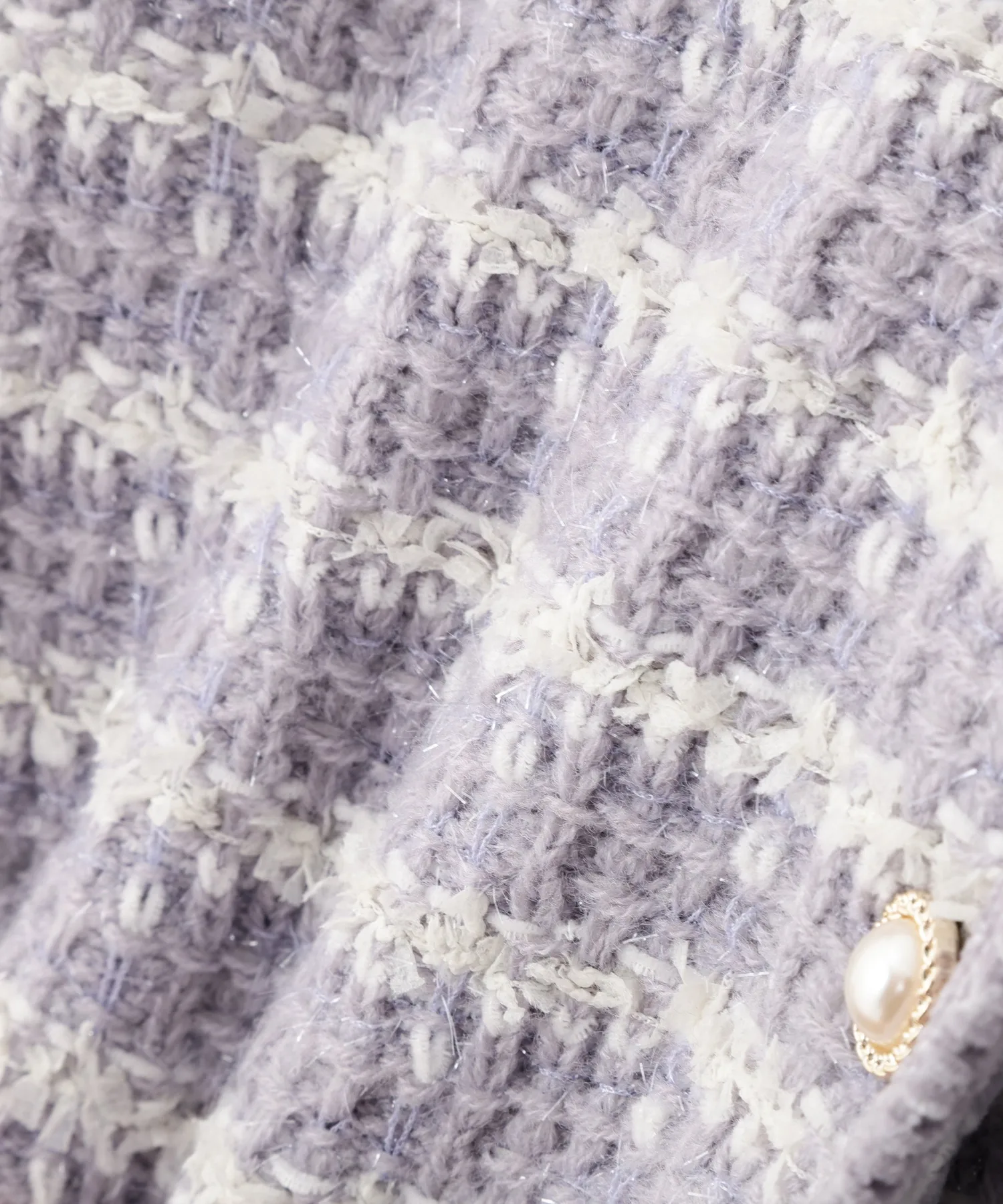 Вязаный жакет из твидового трикотажа, выполненного из мохера, блесток и ворсистой пряжи, отделанный мохеровой пряжей в виде косички.