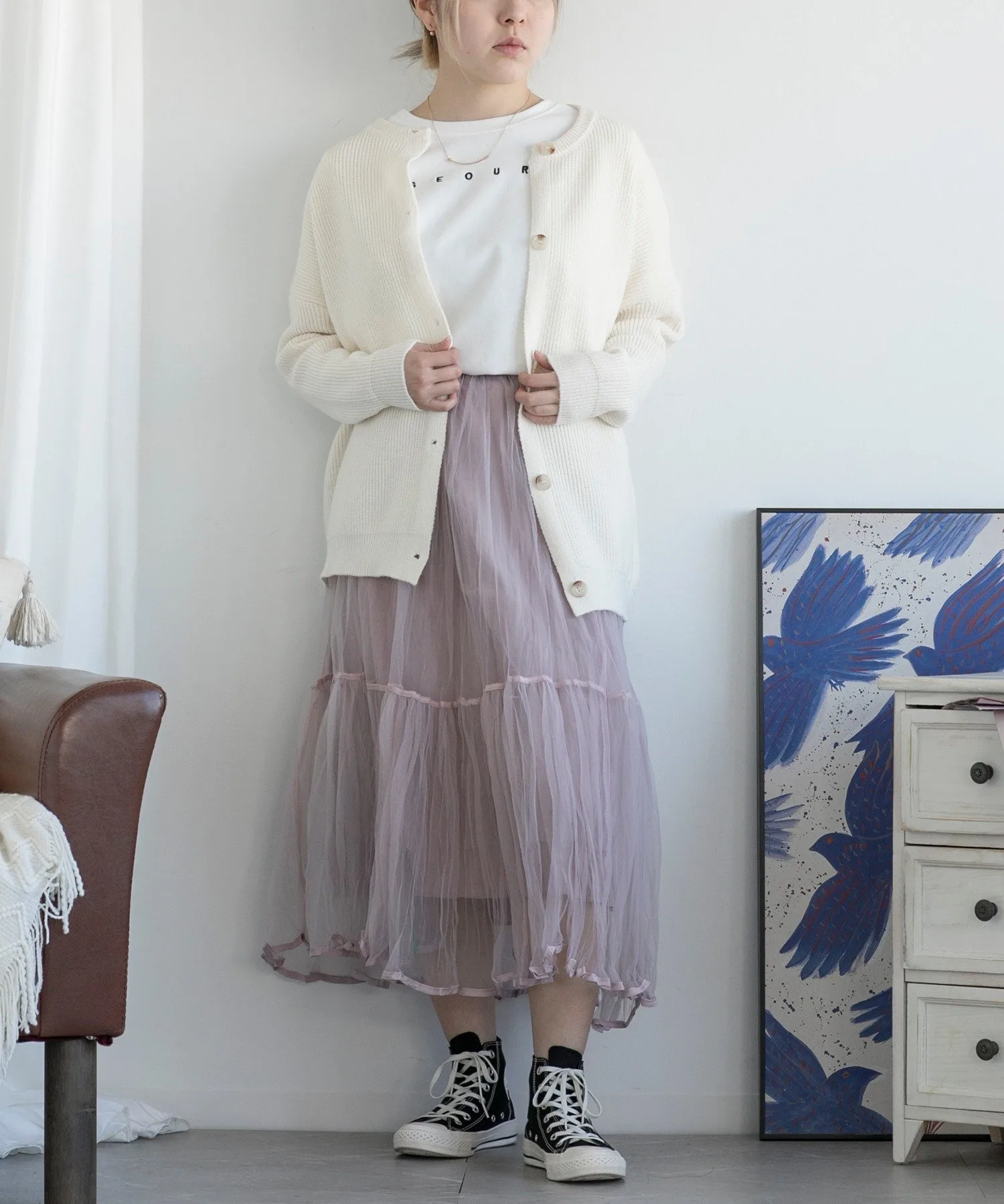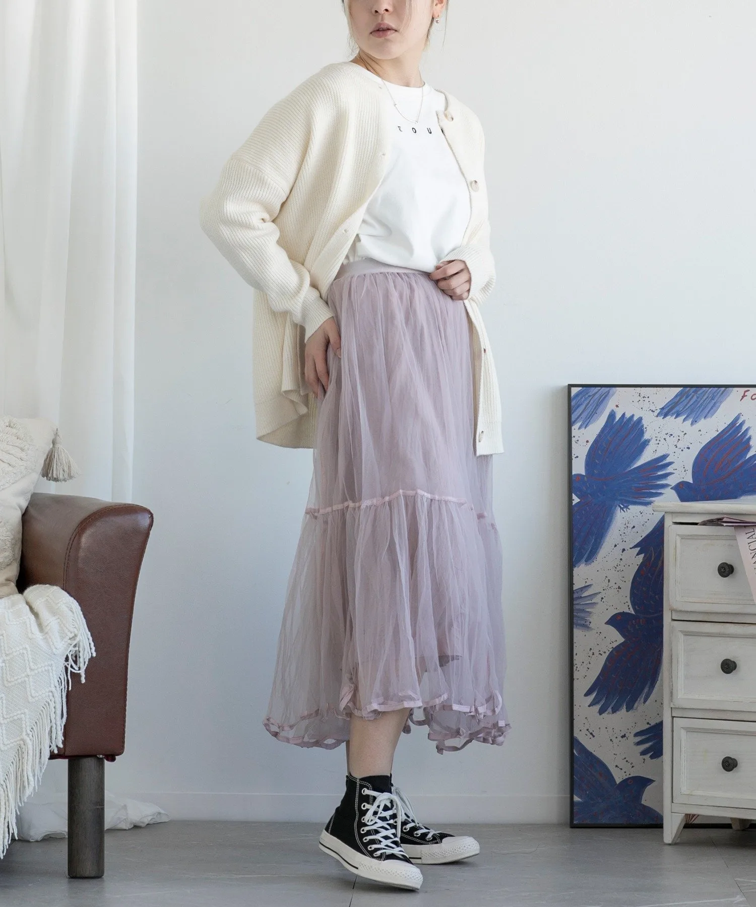 Благодаря тюлю она полупрозрачная и элегантная, идеально сочетается с блузками и сшитыми на заказ топами!