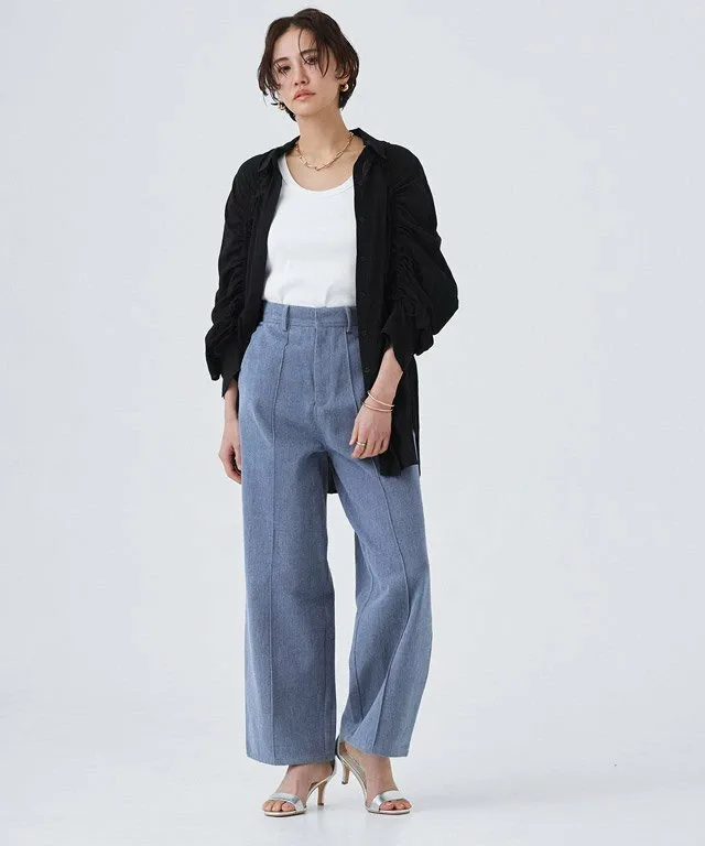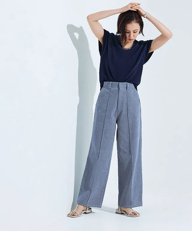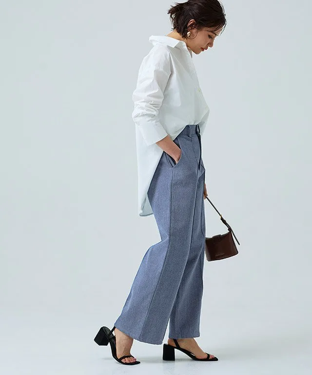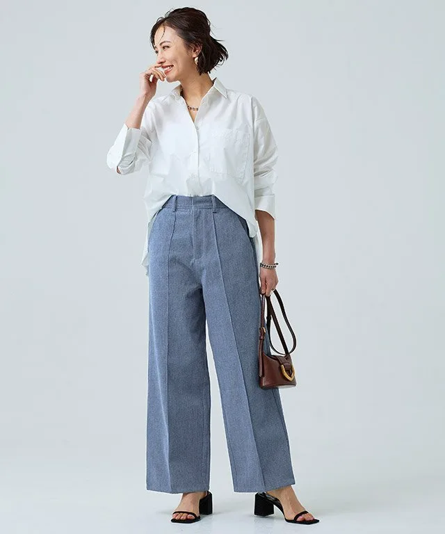 Джинсы с кроем «слэкс». Несмотря на повседневный материал, дизайн элегантный. Складки посередине выгодно подчеркивают линии ног, создавая аккуратный вид. Еще одна привлекательная особенность – рисунок не исчезает после стирки. Чистые, прямые линии создают спокойный, солидный образ.