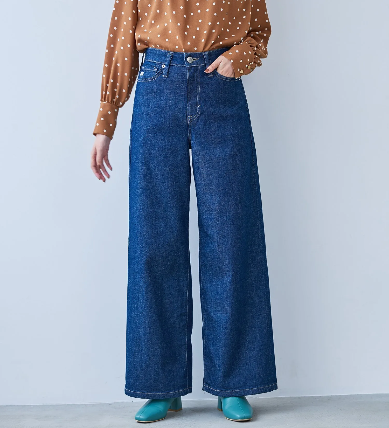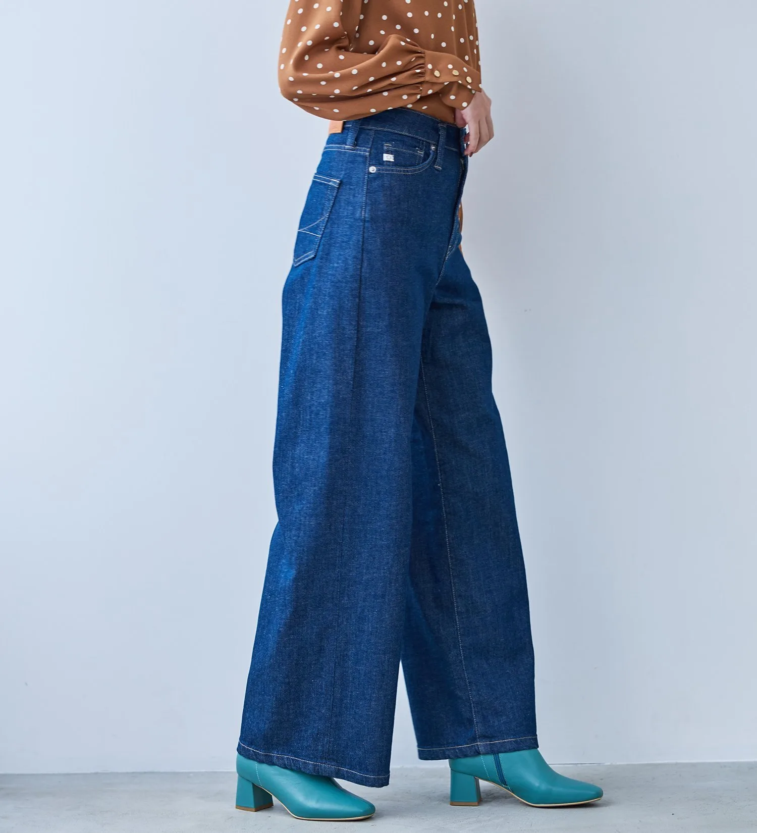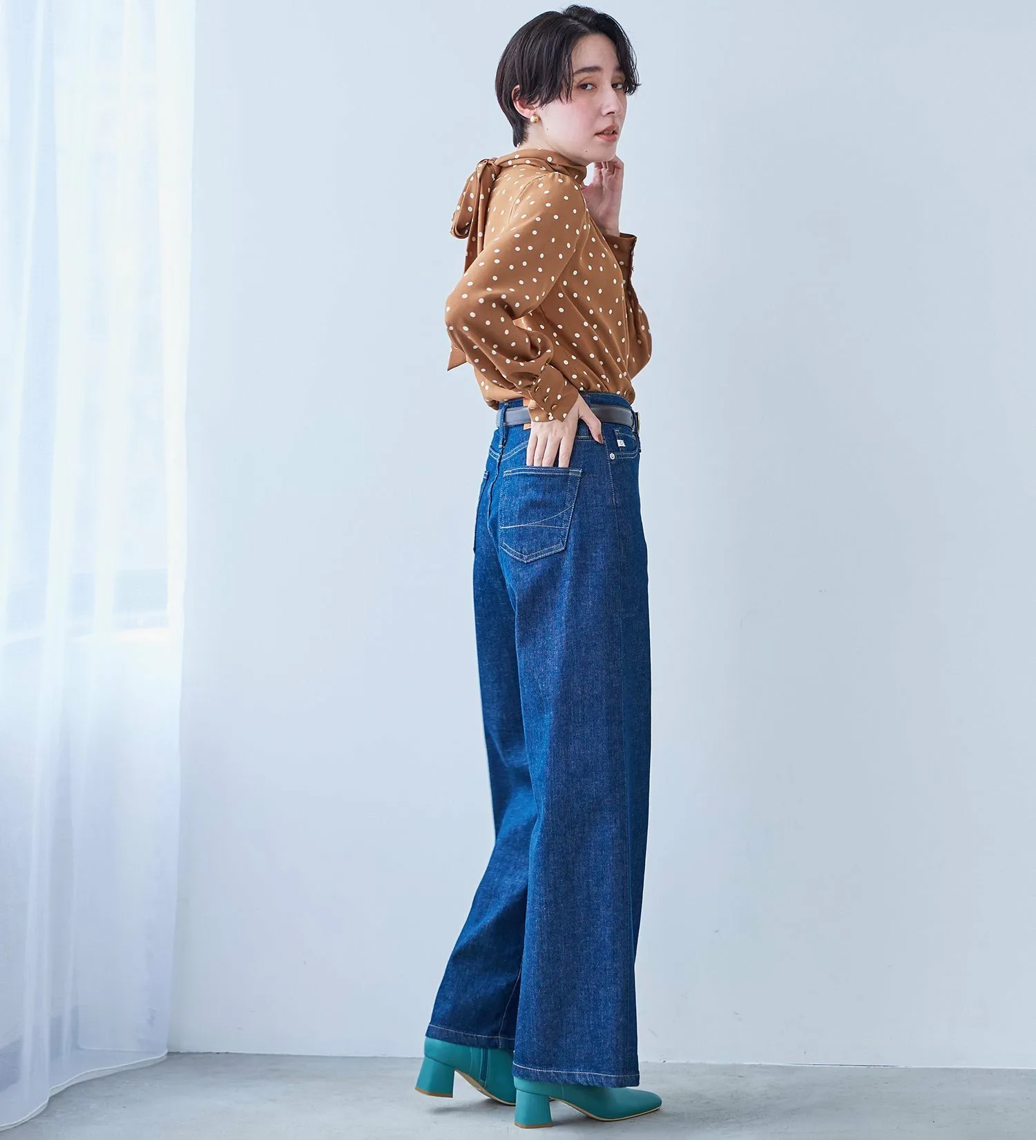 Высокая талия и облегающие бедра устраняют громоздкость, обычно присущую широким брюкам.