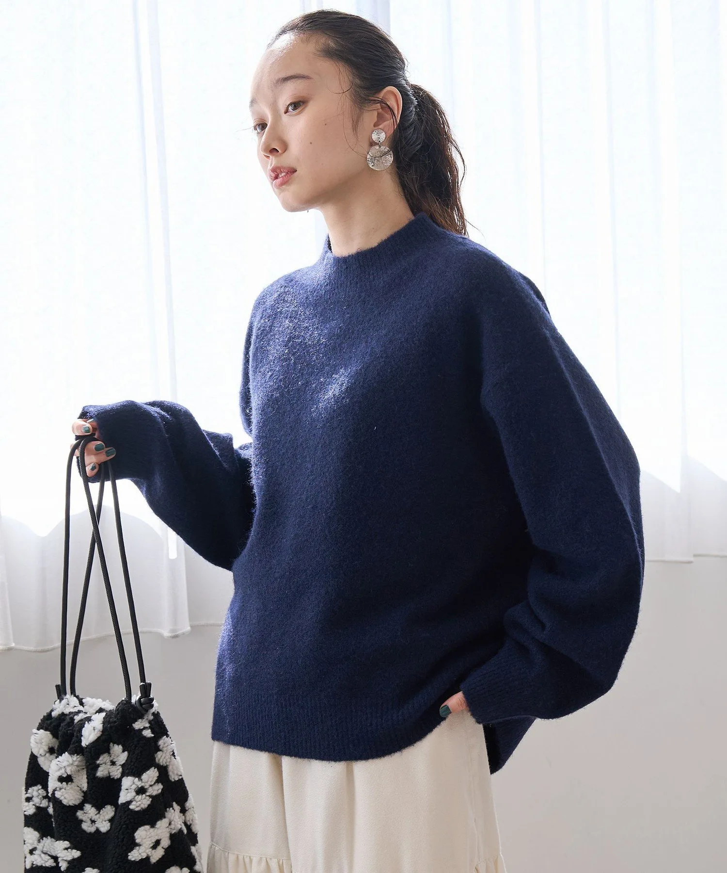 ※Темные цвета могут оставлять следы от трения. *Будьте осторожны, чтобы не зацепить изделие при ношении или стирке. *Материал склонен к образованию катышков. Избегайте постоянного ношения и дайте изделию отдохнуть перед использованием. *Не тяните за катышки; аккуратно удаляйте их с помощью инструмента. *Прямой солнечный свет или флуоресцентное освещение могут вызвать выцветание. *Поскольку изделие склонно растягиваться под собственным весом, мы рекомендуем придать ему форму и сушить в расправленном виде. *Избегайте развешивания на вешалке. *Обратите внимание, что материалы с грубой текстурой или торчащими нитками склонны к зацепкам. *Изображенный на фото товар является образцом и может отличаться от реального товара. *Цвет товара на изображении может отличаться от реального из-за освещения, ракурса и настроек вашего монитора. Фотографии из студии максимально приближены к реальному цвету товара. *Для товаров, заказанных по предварительному заказу, указанная дата доставки является лишь ориентировочной. *В связи с производственными обстоятельствами дата доставки может быть раньше или позже даты поступления товара в магазин. Благодарим за понимание.