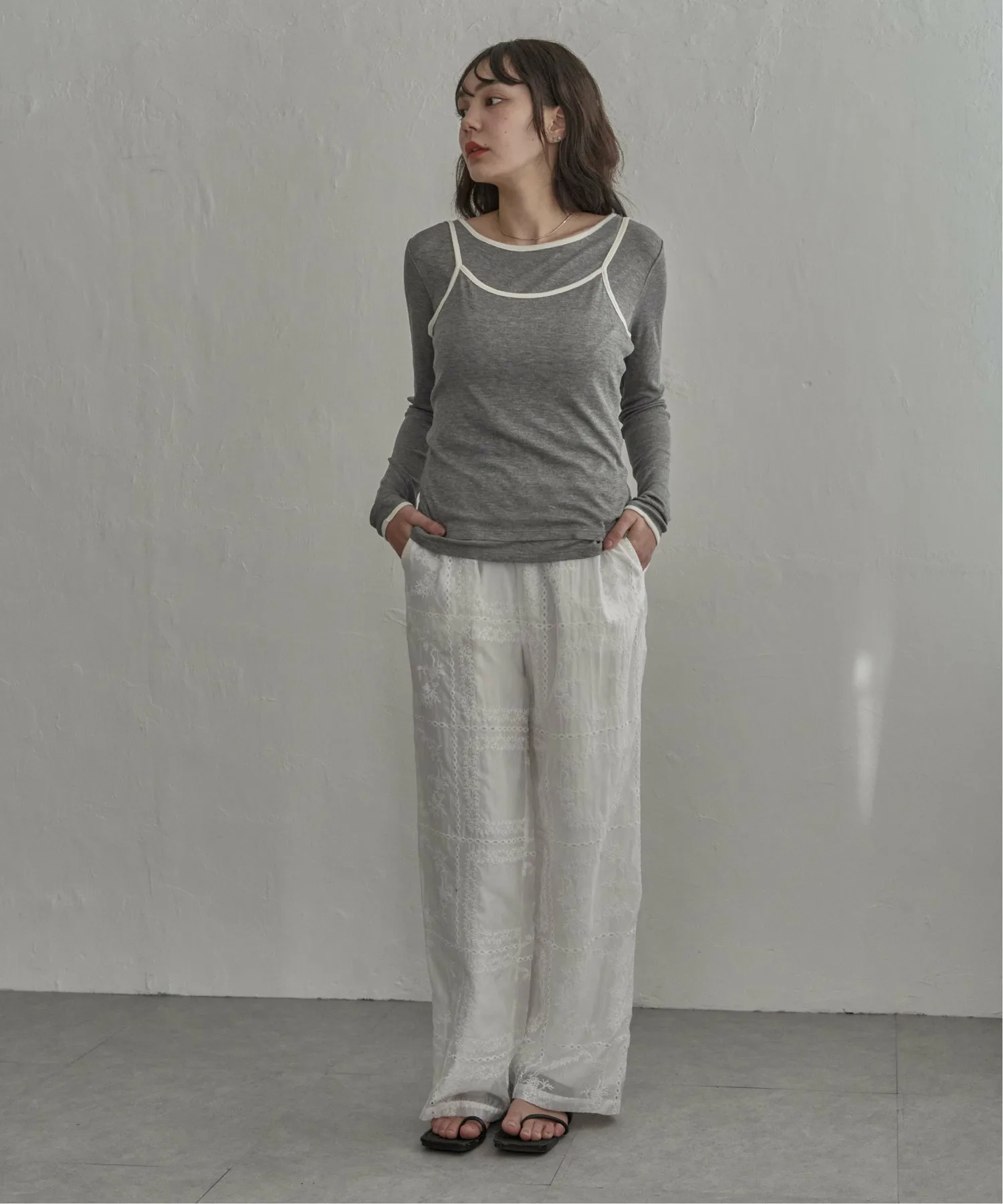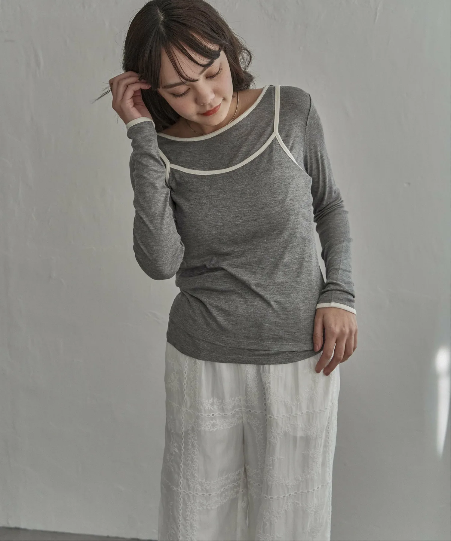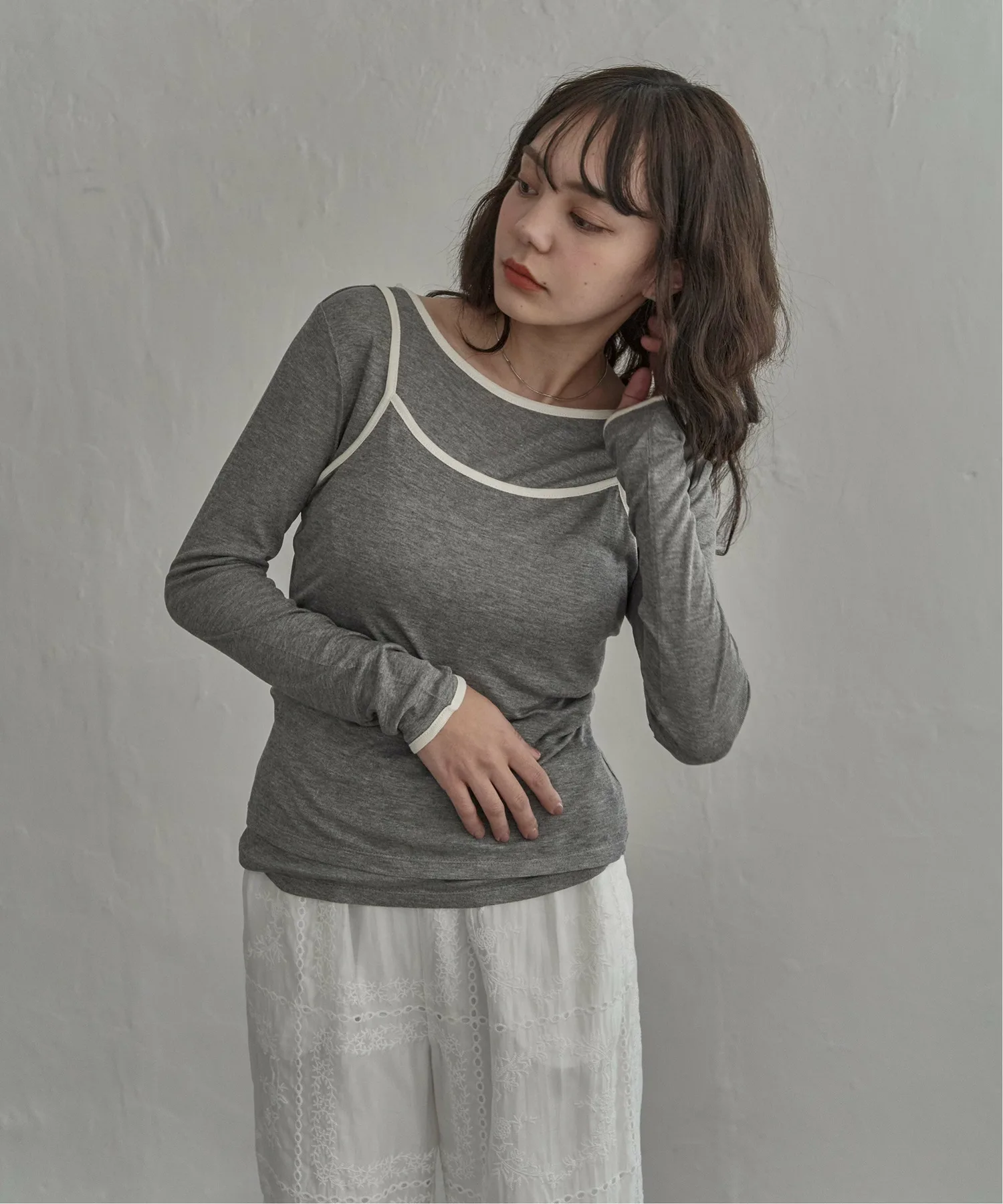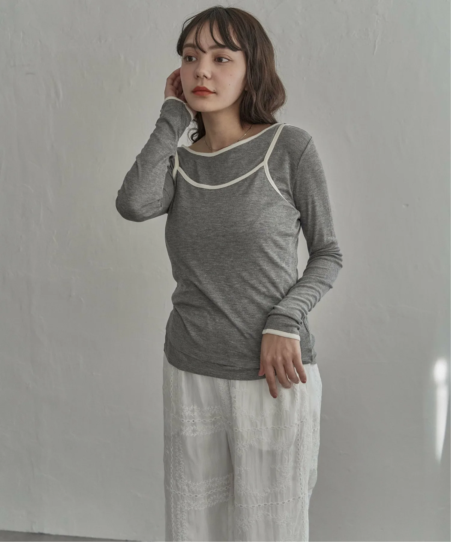 Майка надета поверх футболки с длинными рукавами, создавая естественный трехмерный эффект.