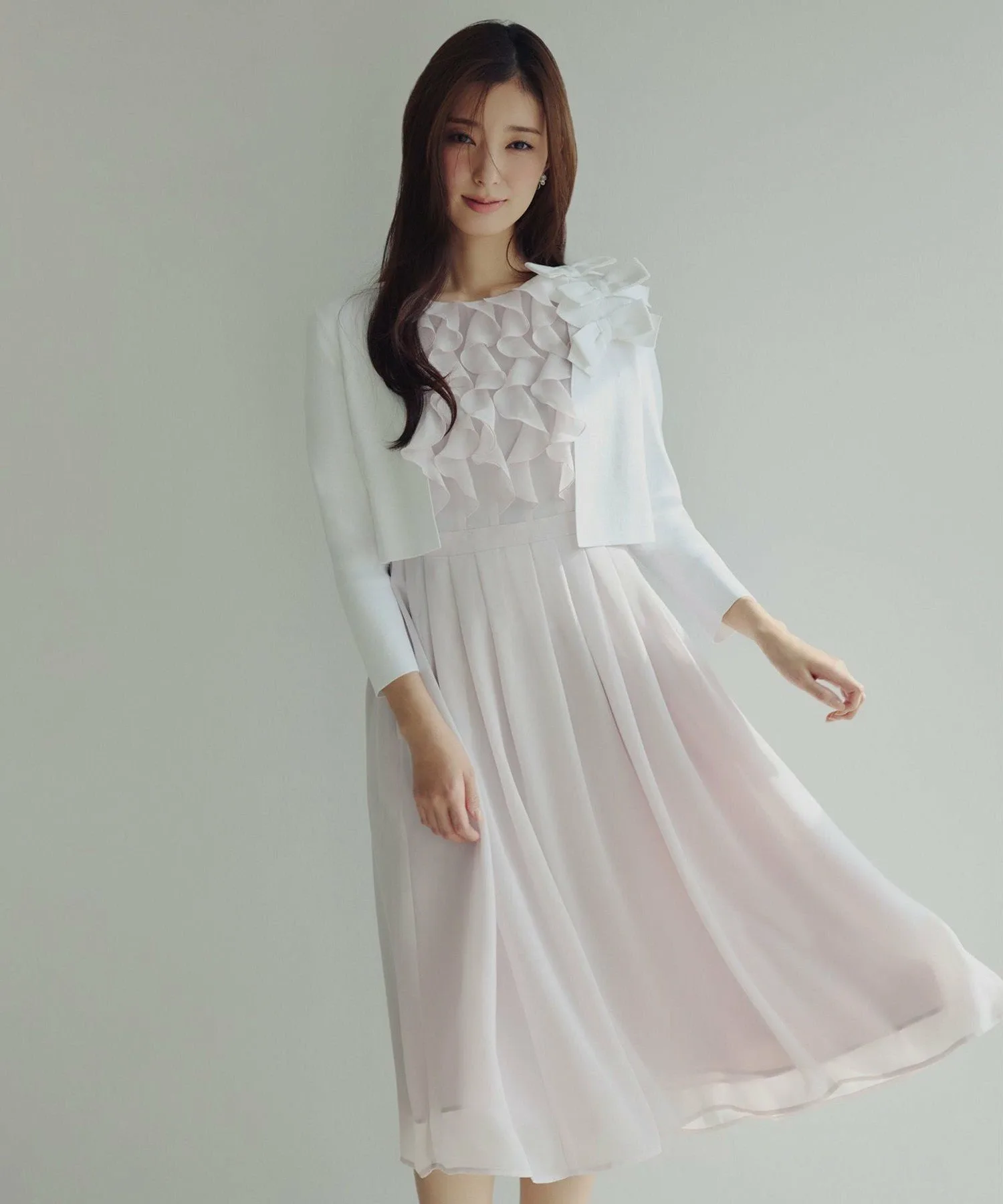 Благодаря легкой, гладкой текстуре и оптимальной степени прозрачности, оно создает элегантный силуэт, мягко колышущийся при каждом движении. Рукава с оборками, ниспадающие с плеч, деликатно прикрывают предплечья, создавая легкий и женственный образ.