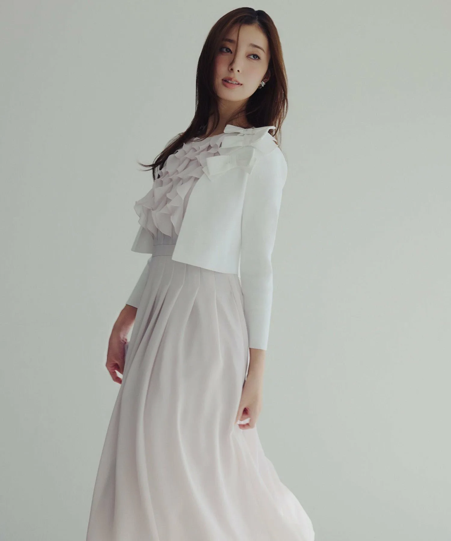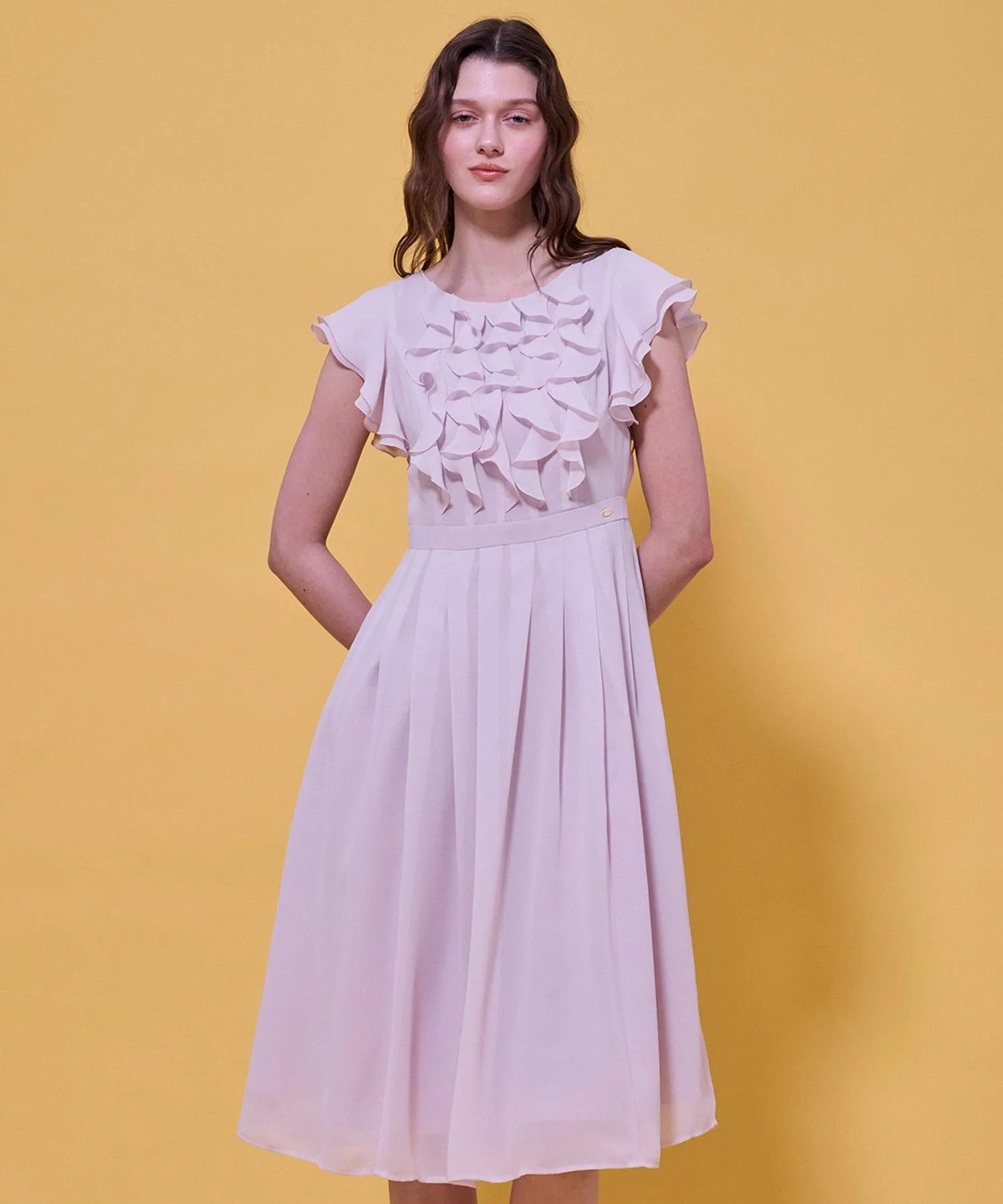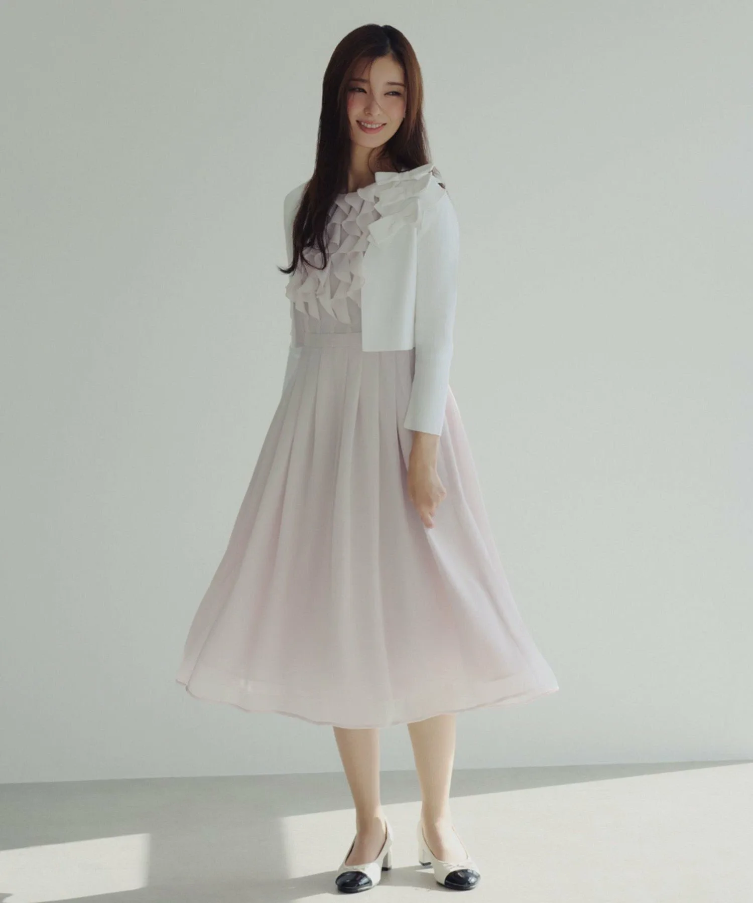 Четкая линия талии и свободные складки на юбке создают дизайн, обеспечивающий красивую драпировку и свободу движений.