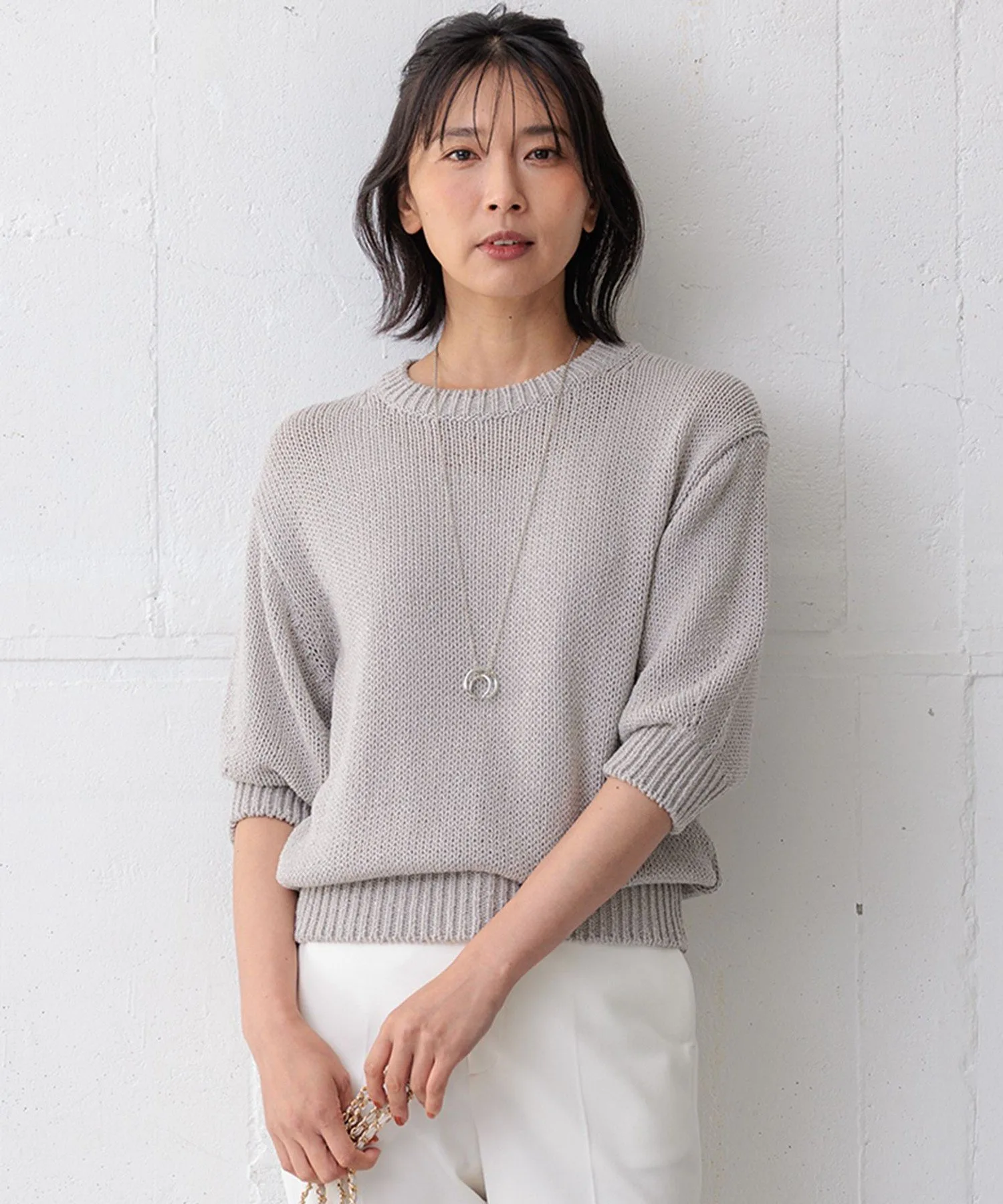 Этот привлекательный свитер с пятью рукавами украшен модными блестками. Изготовленный из трикотажа низкой плотности, он имеет сбалансированный дизайн с компактной длиной и не слишком приторными рукавами-фонариками. Сделано в Японии, это отличный выбор. Идеально подходит для самостоятельного ношения или в сочетании с рубашкой или водолазкой в прохладную погоду. Доступен в трех цветах: легко сочетающийся серый (#004), мягкий бежевый (#033) и темно-синий (#074) с эффектным блестящим эффектом.