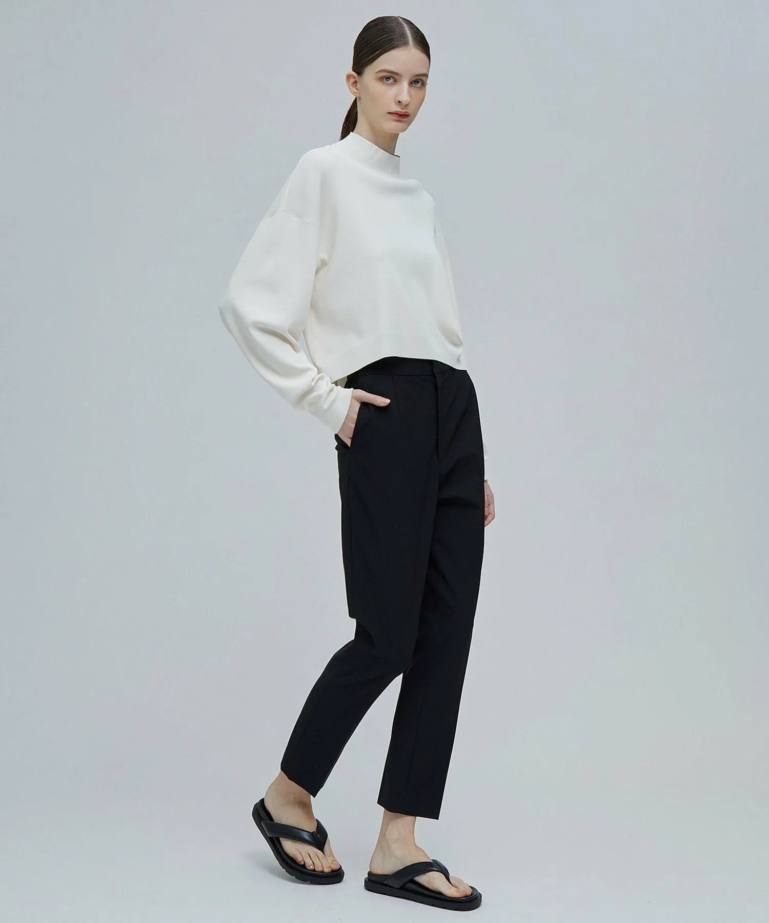 Эти укороченные брюки имеют красивый облегающий крой. Центральная складка создает аккуратный и стильный образ. Универсальный дизайн позволяет сочетать их с любым верхом, включая трикотаж и сшитые на заказ топы. Идеально подходят для торжественных случаев в офисе или на работе, эти брюки также достаточно универсальны, чтобы носить их как повседневные брюки.