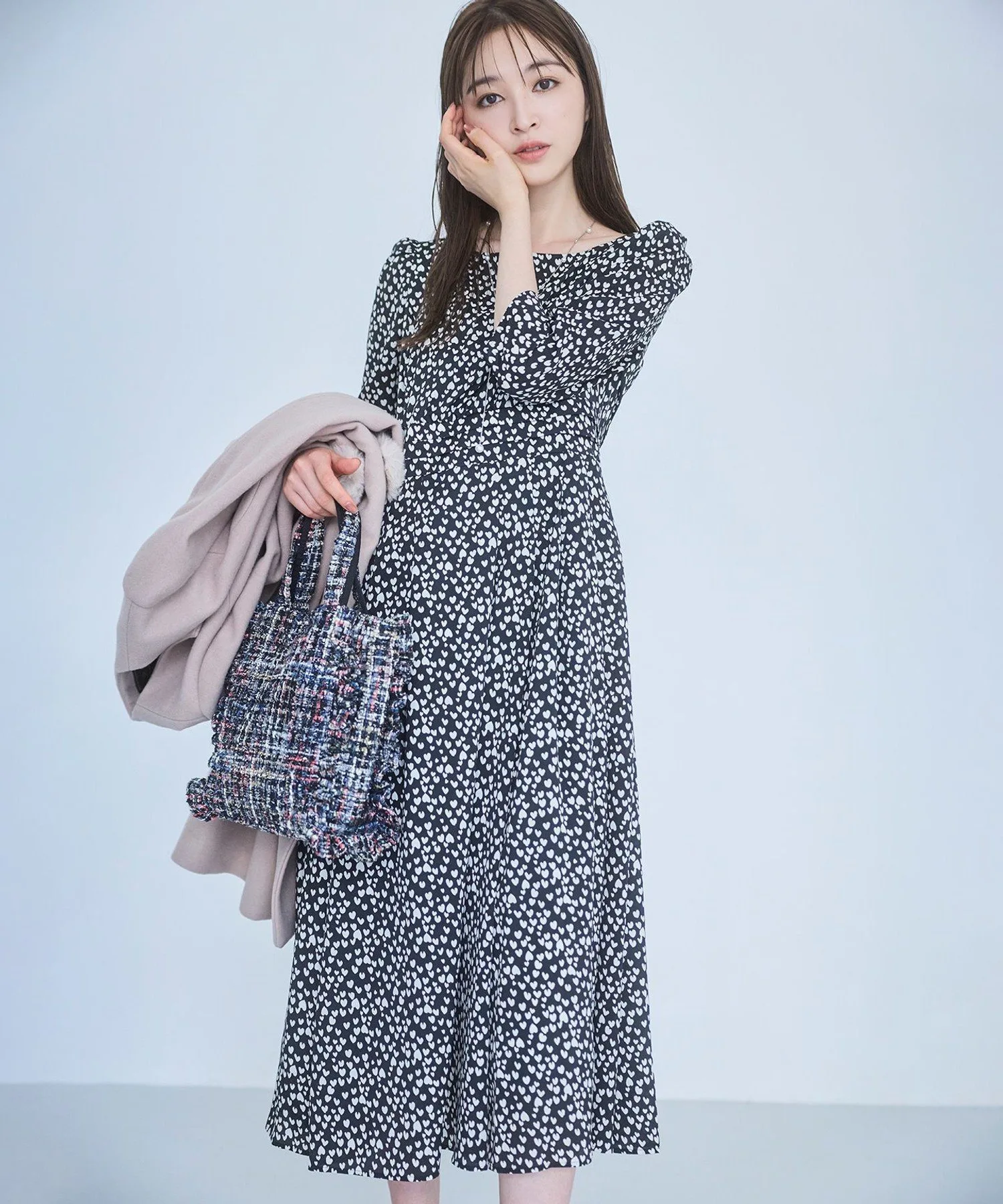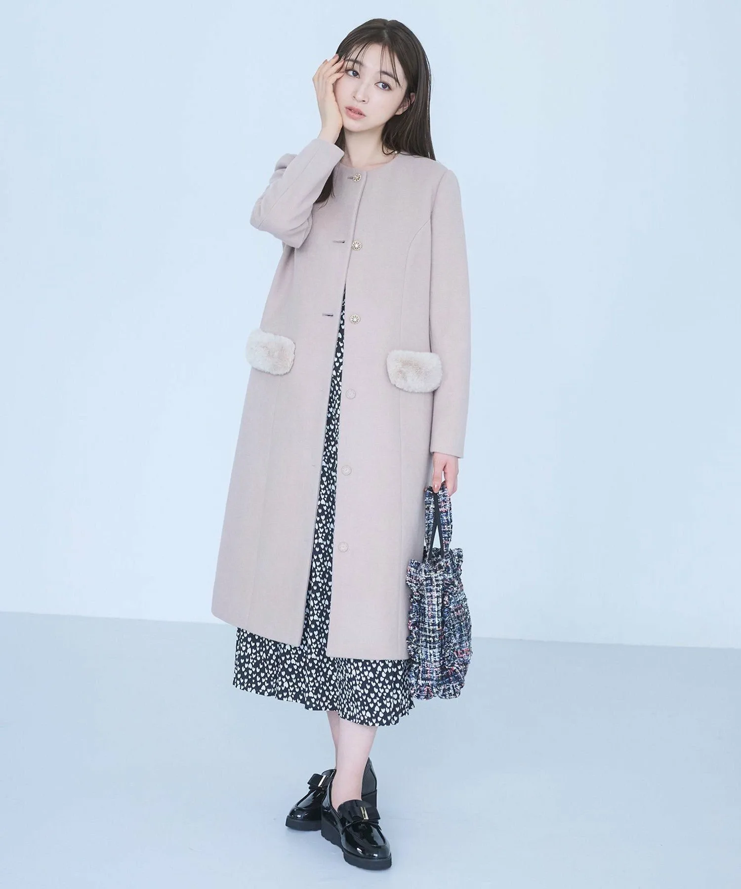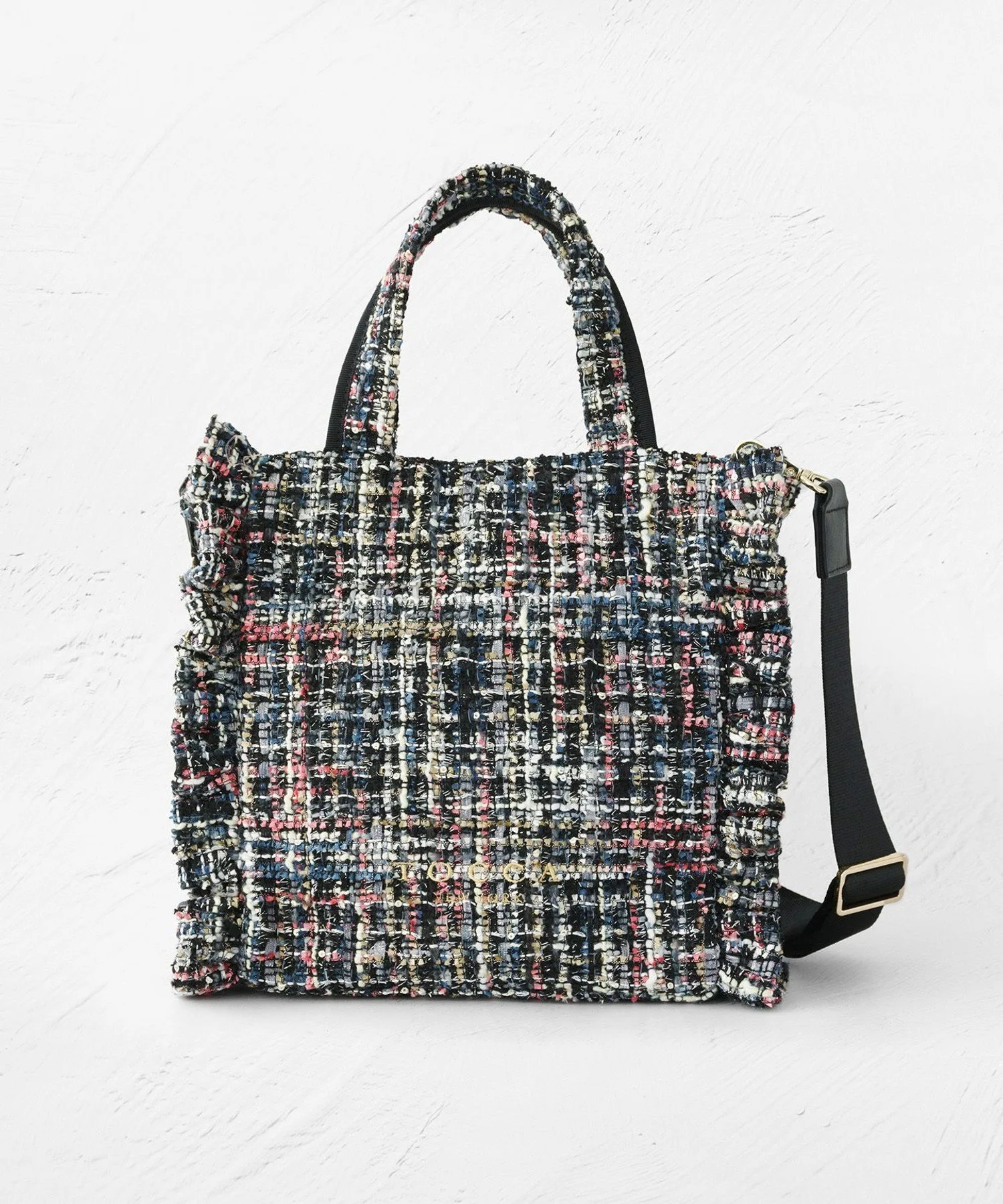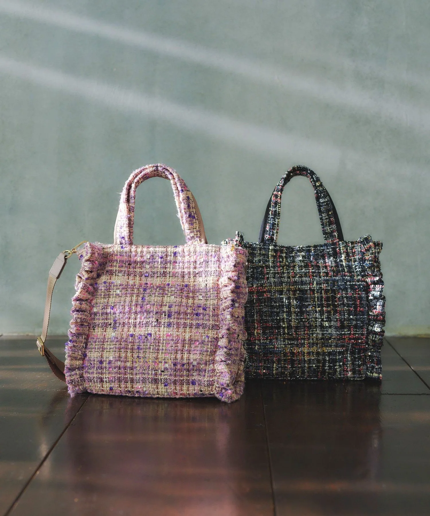 Сумка-тоут, украшенная оборками, для изысканного и милого образа. Стильная и удобная повседневная сумка, которую можно носить непринужденно и комфортно, имеет не слишком жесткую текстуру. Ее элегантный внешний вид позволяет вместить достаточно места для таких вещей, как длинный кошелек или бутылка воды, а съемный плечевой ремень обеспечивает доступ без помощи рук. Корпус доступен в шикарном черном нейлоне, а также в модном твиде. Дизайн твида, сотканный из тонких нитей различных цветов и толщин, меняет свой вид в зависимости от выбранного цвета.