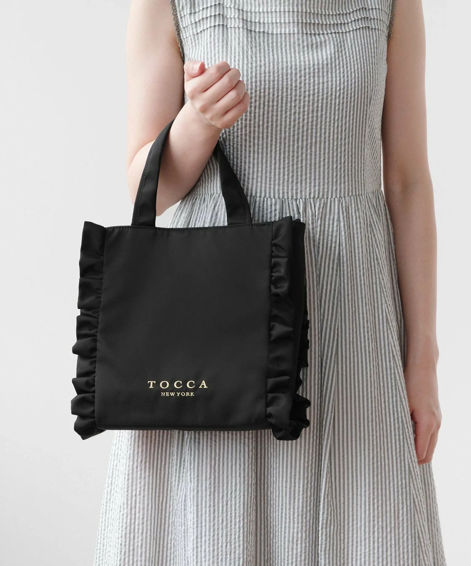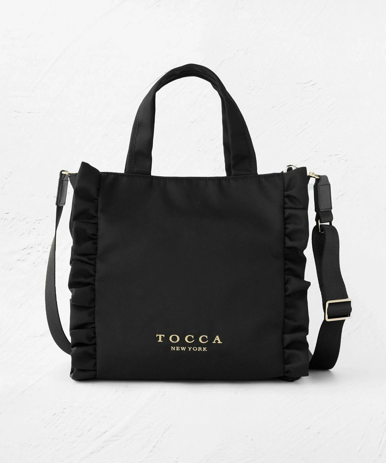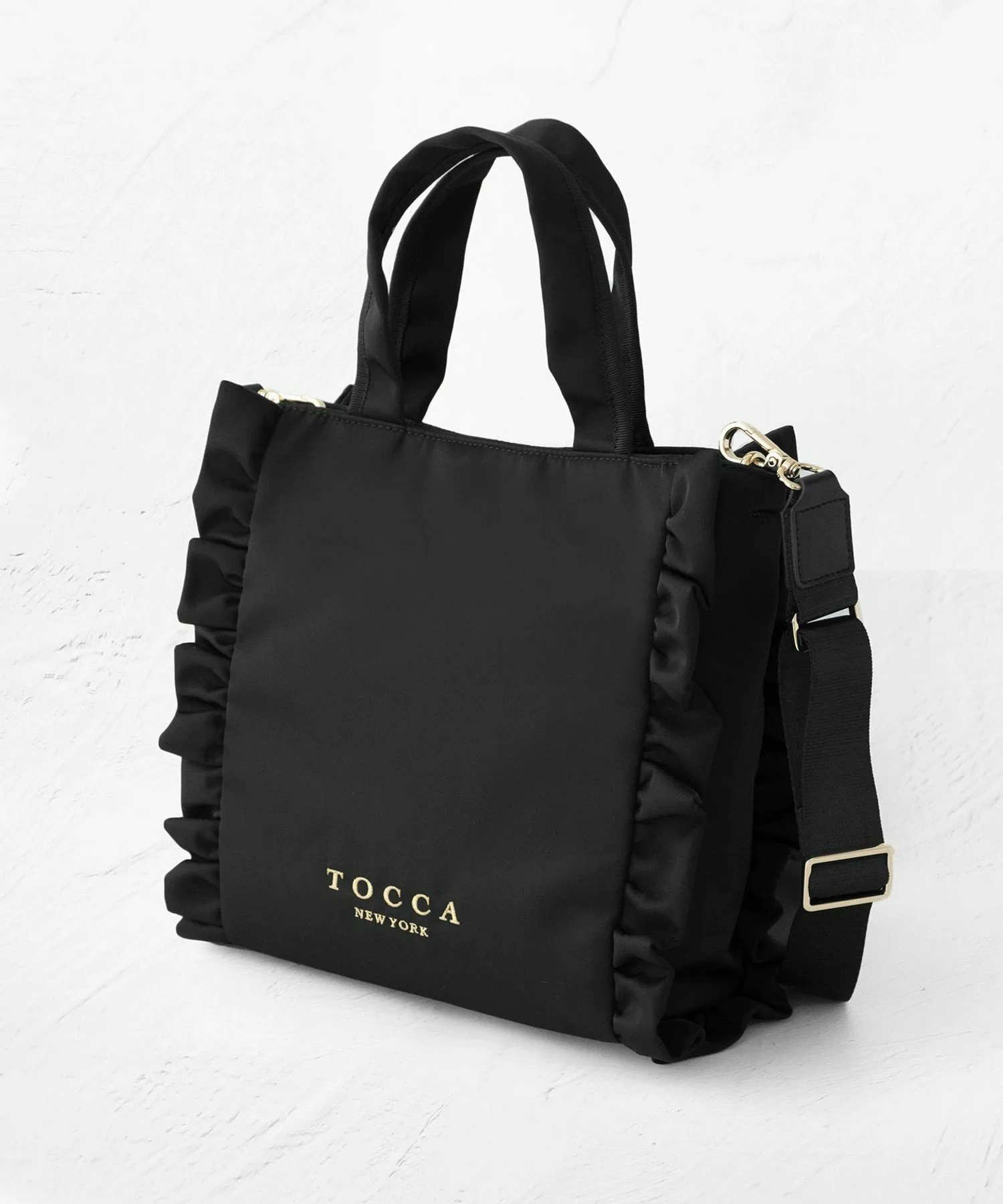 Сумка-тоут, украшенная оборками, для изысканного и милого образа. Стильная и удобная повседневная сумка, которую можно носить непринужденно и комфортно, имеет не слишком жесткую текстуру. Ее элегантный внешний вид позволяет вместить достаточно места для таких вещей, как длинный кошелек или бутылка воды, а съемный плечевой ремень обеспечивает доступ без помощи рук. Корпус доступен в шикарном черном нейлоне, а также в модном твиде. Дизайн твида, сотканный из тонких нитей различных цветов и толщин, меняет свой вид в зависимости от выбранного цвета.