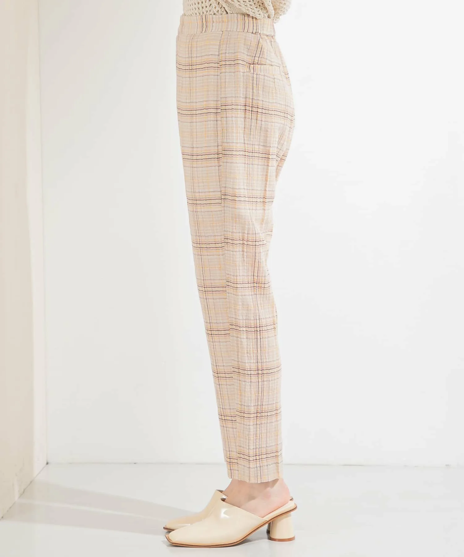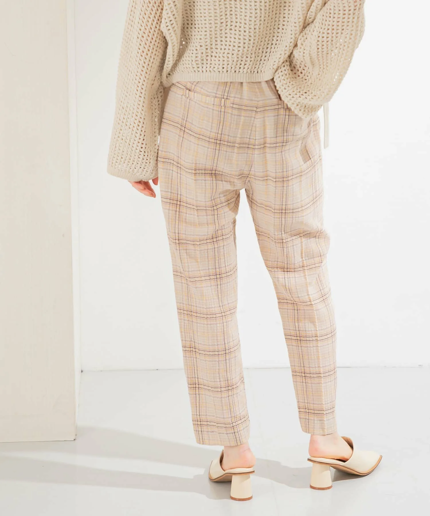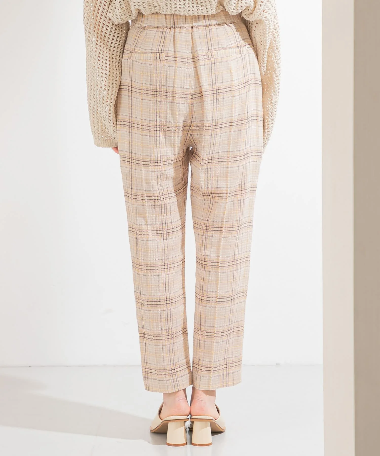 Эти клетчатые брюки имеют полупрозрачную текстуру, создающую ощущение легкости. Они отличаются лаконичным силуэтом и стандартной укороченной длиной. Просто включив их в свой образ, вы почувствуете сезонное настроение благодаря их дизайну. Брюки имеют эластичную вставку сзади, но слегка заужены, поэтому доступны в двух размерах.