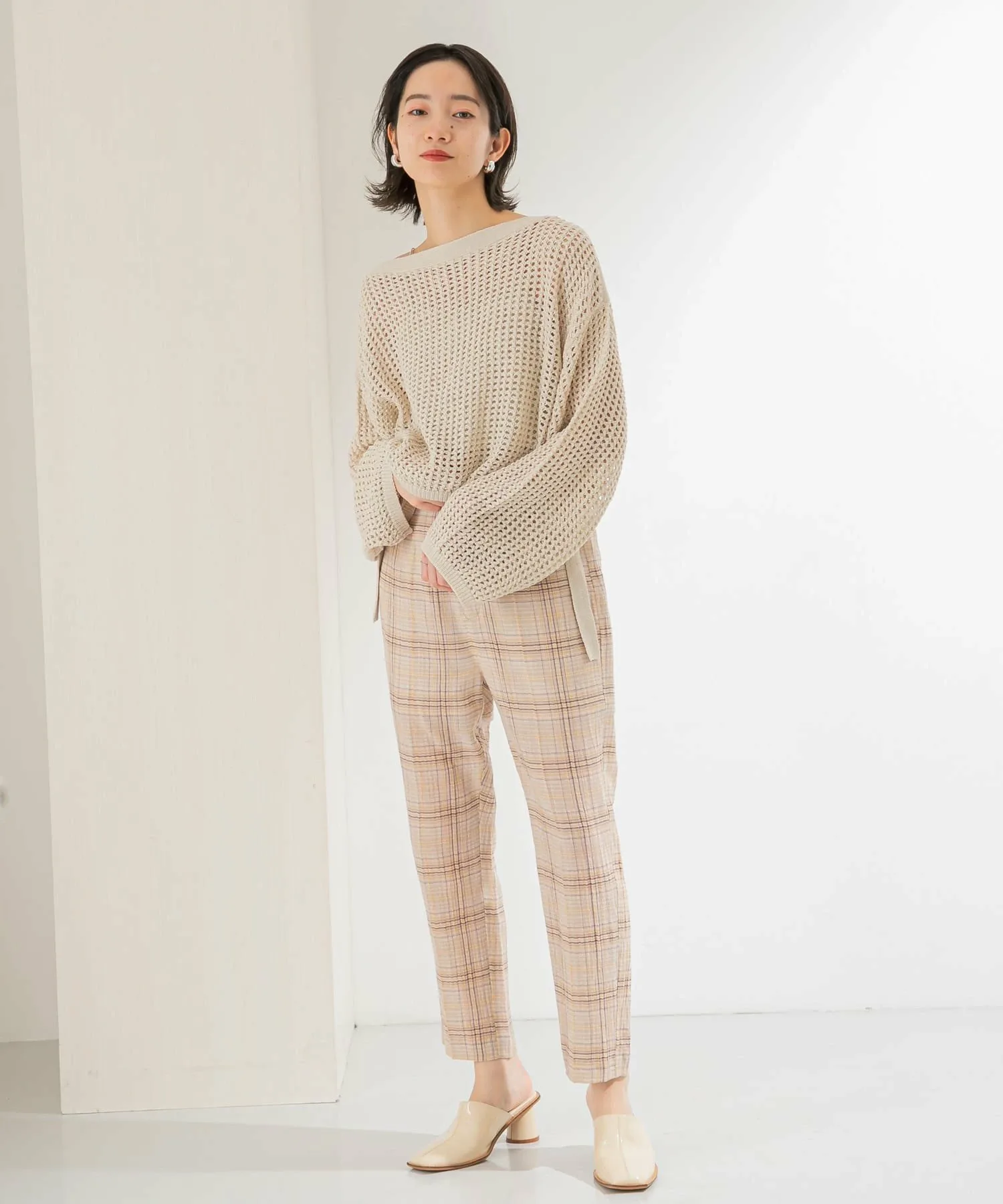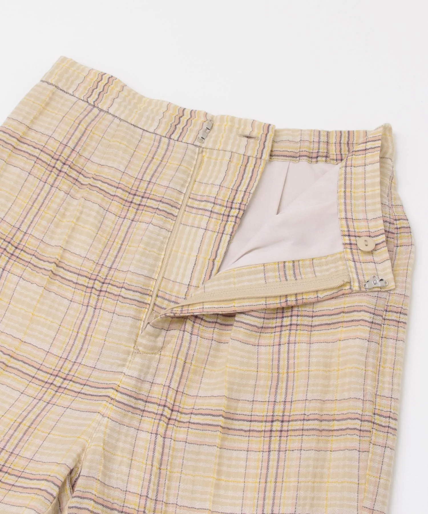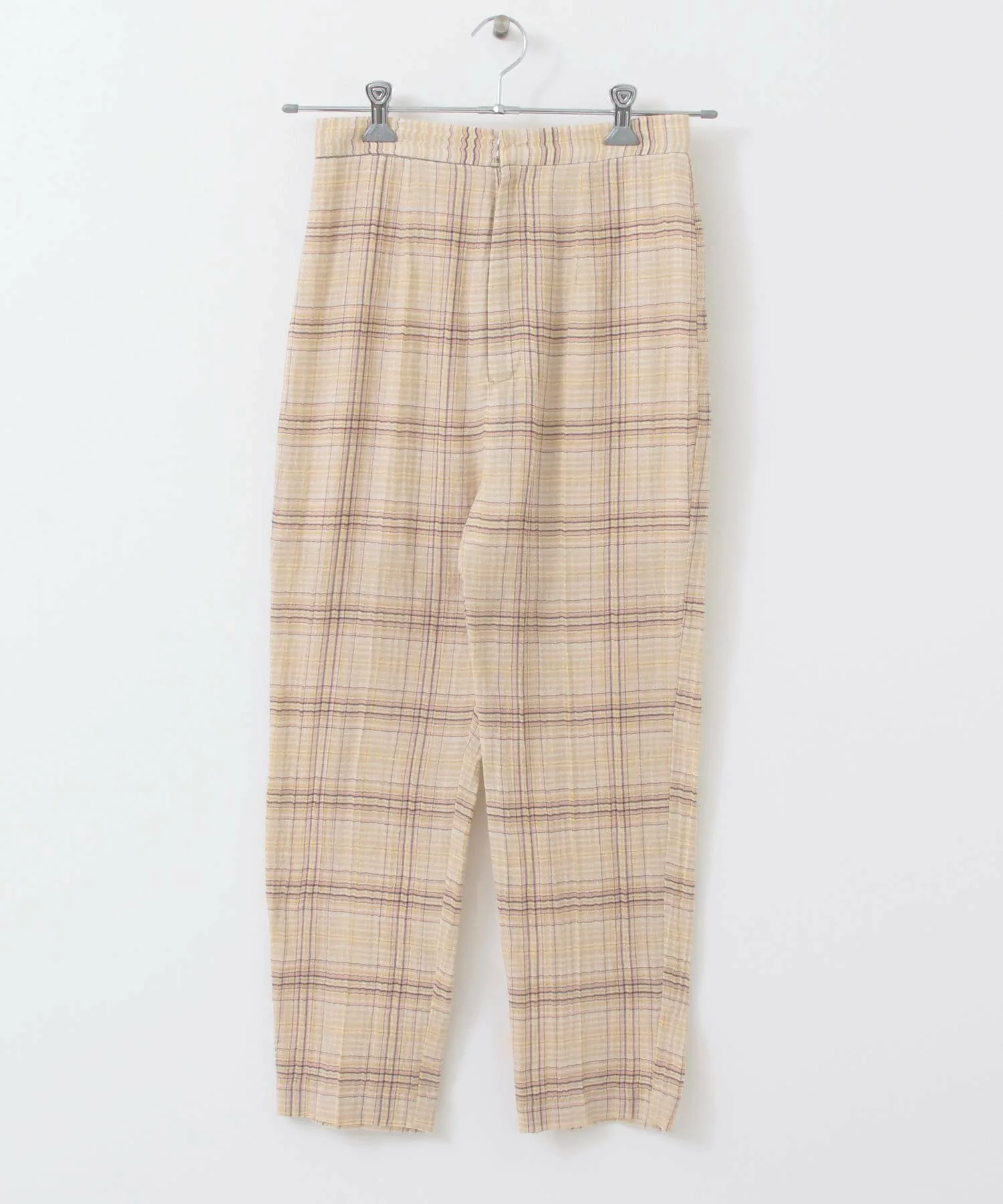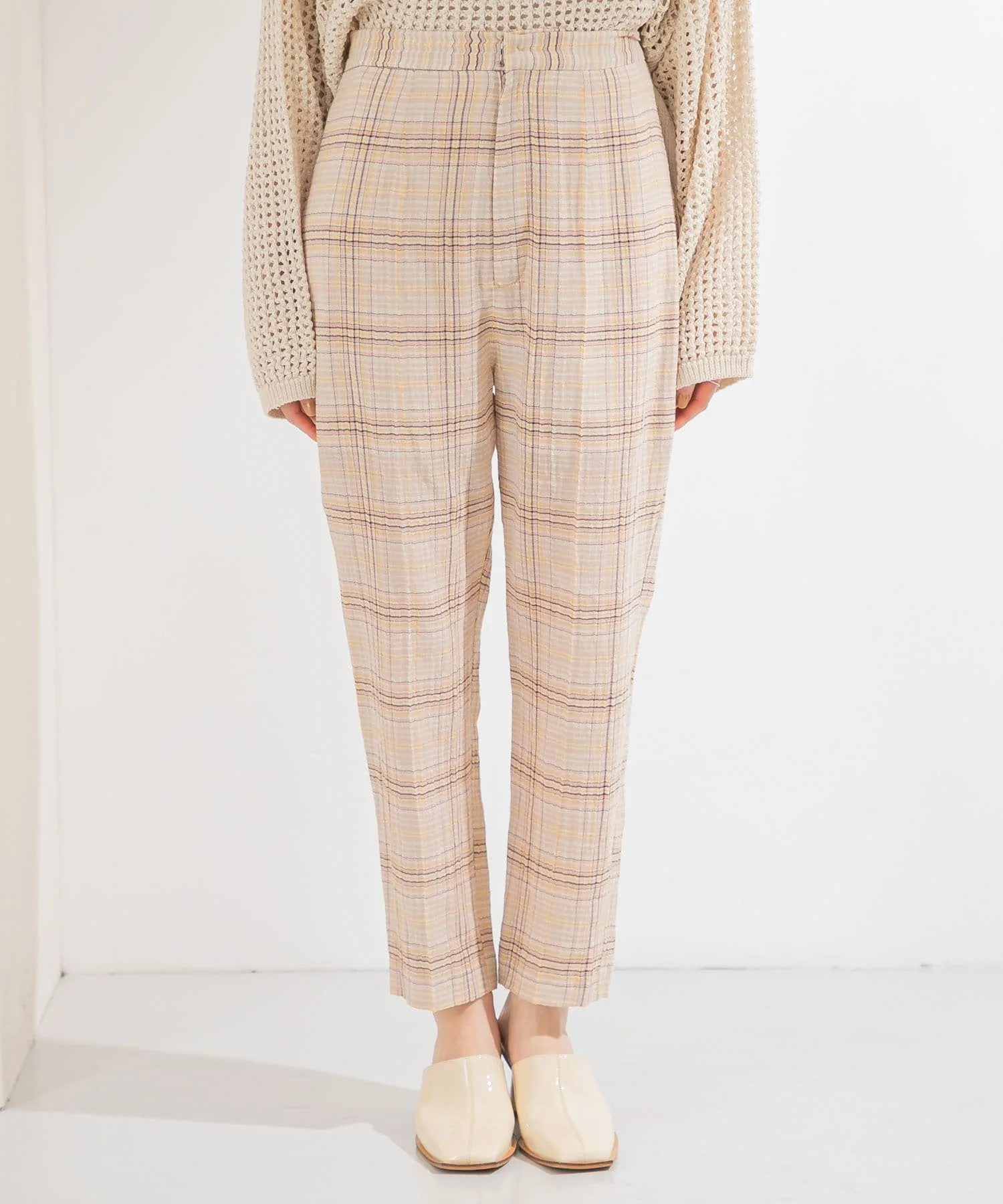 Эти клетчатые брюки имеют полупрозрачную текстуру, создающую ощущение легкости. Они отличаются лаконичным силуэтом и стандартной укороченной длиной. Просто включив их в свой образ, вы почувствуете сезонное настроение благодаря их дизайну. Брюки имеют эластичную вставку сзади, но слегка заужены, поэтому доступны в двух размерах.