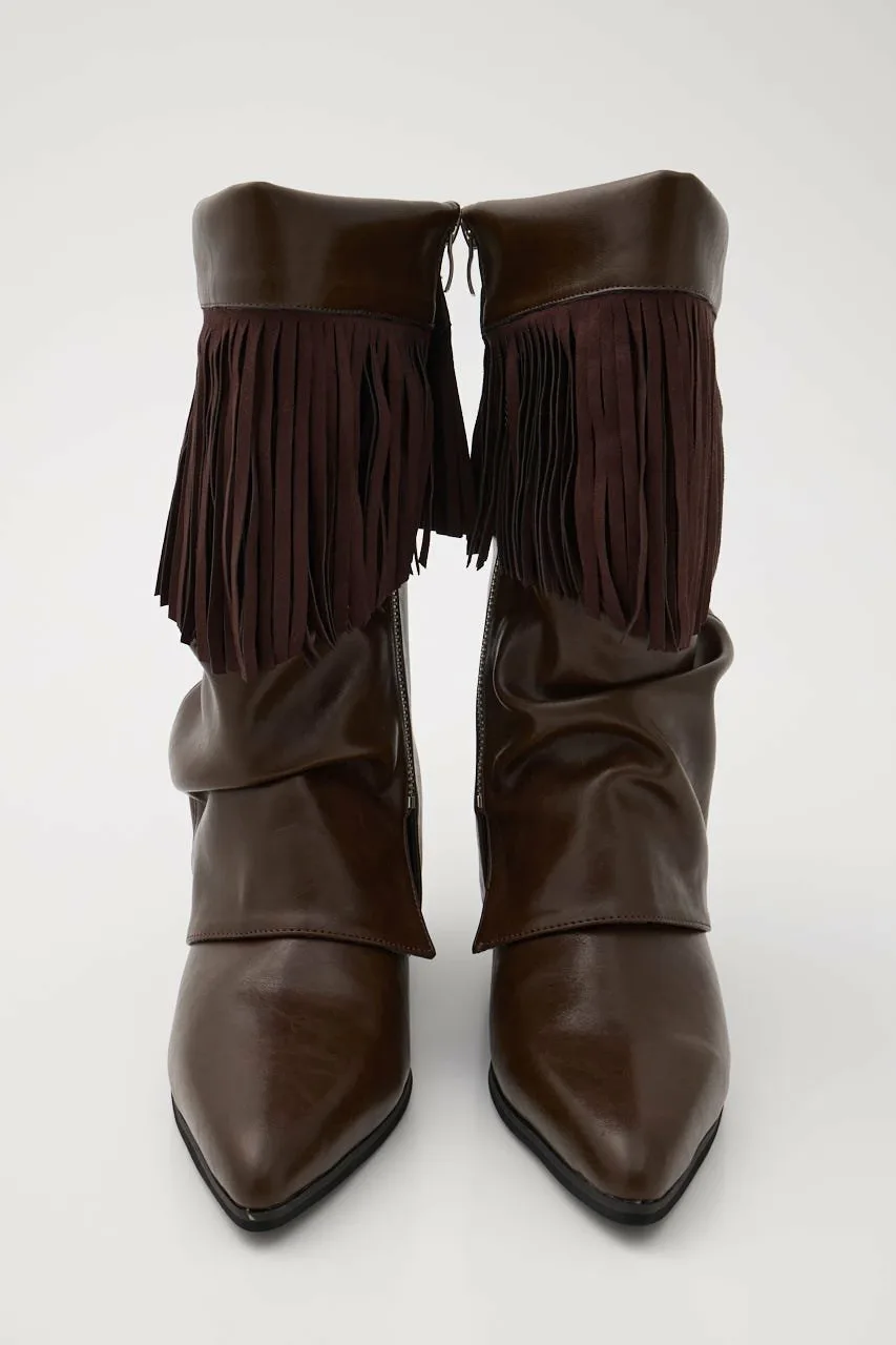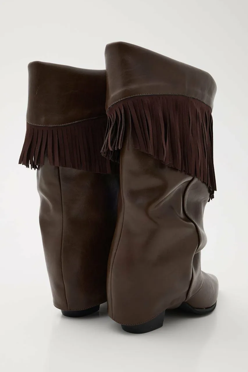 Эти сапоги с бахромой имеют неровную искусственную кожу, что придает им винтажный вид.