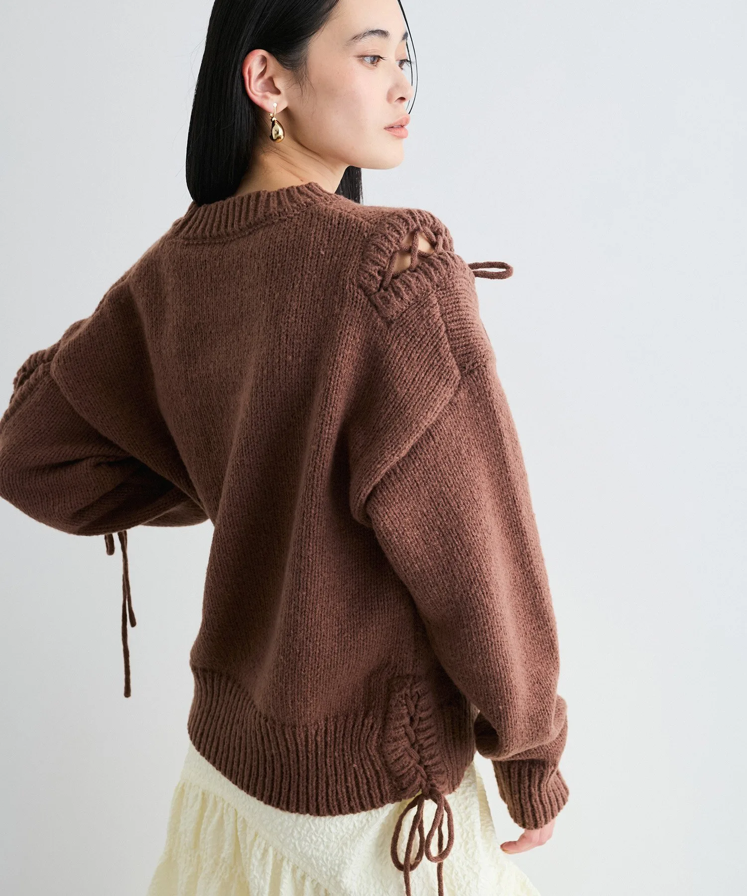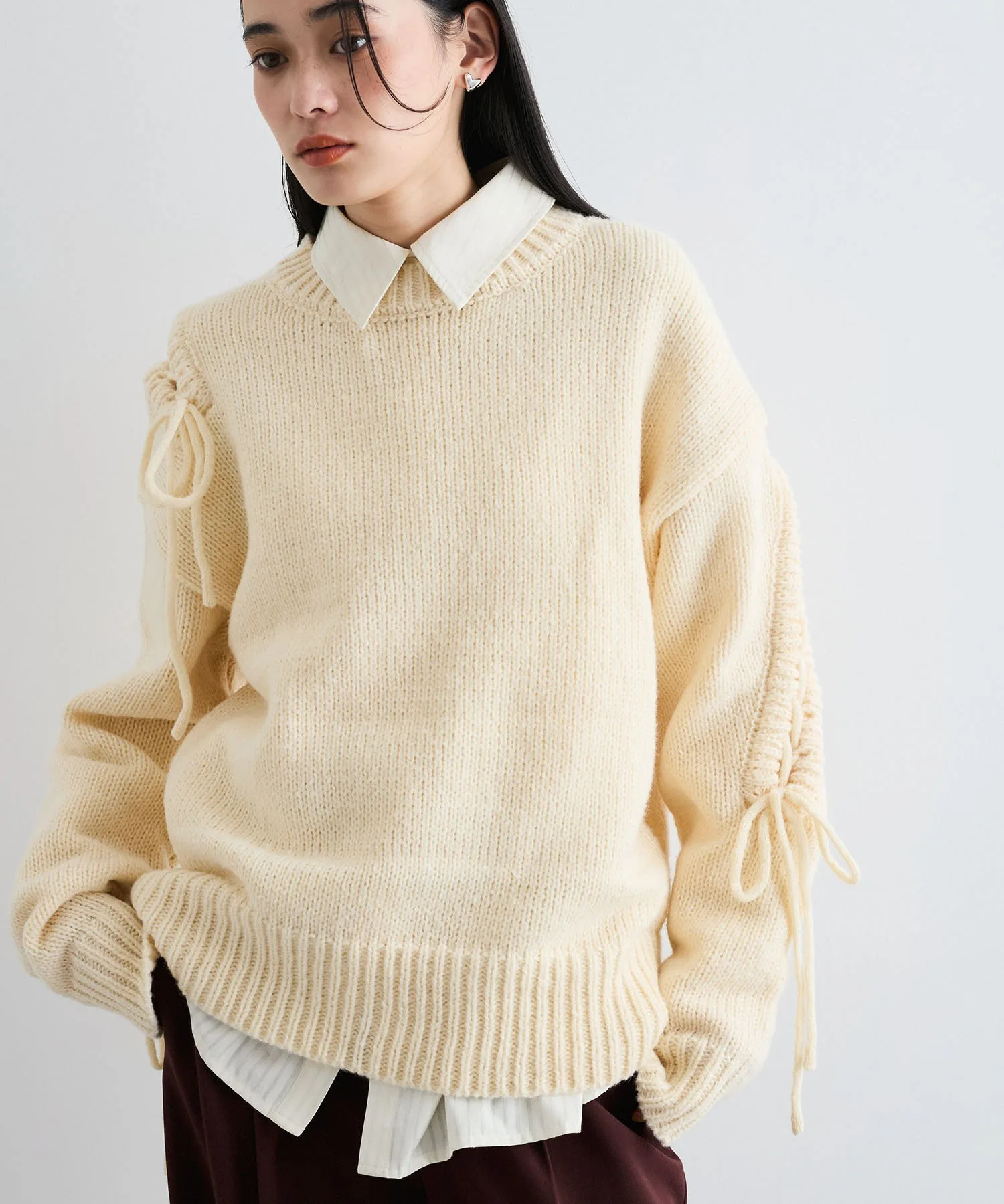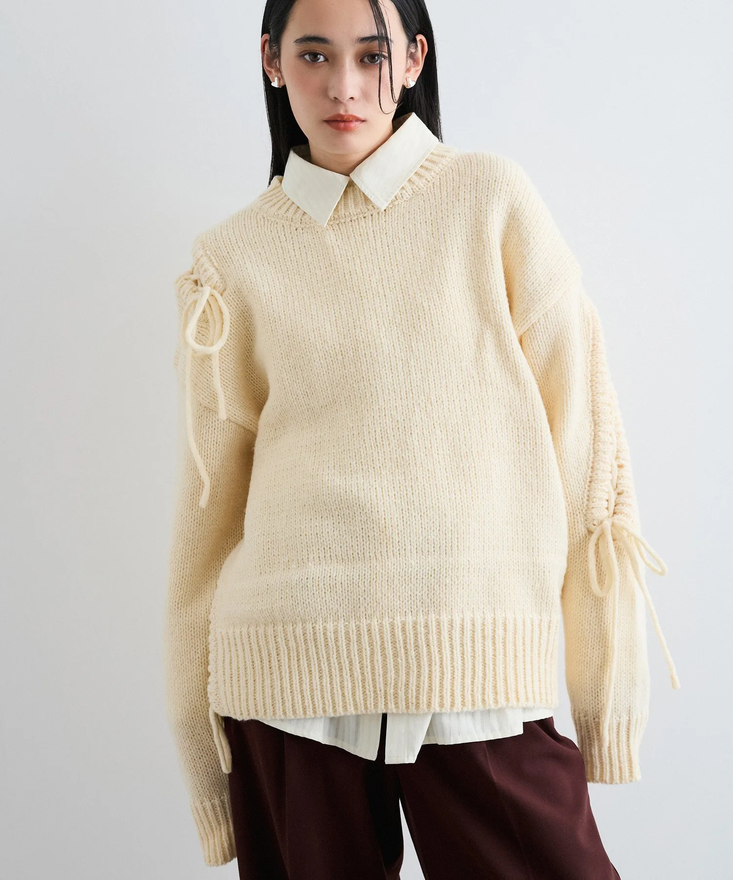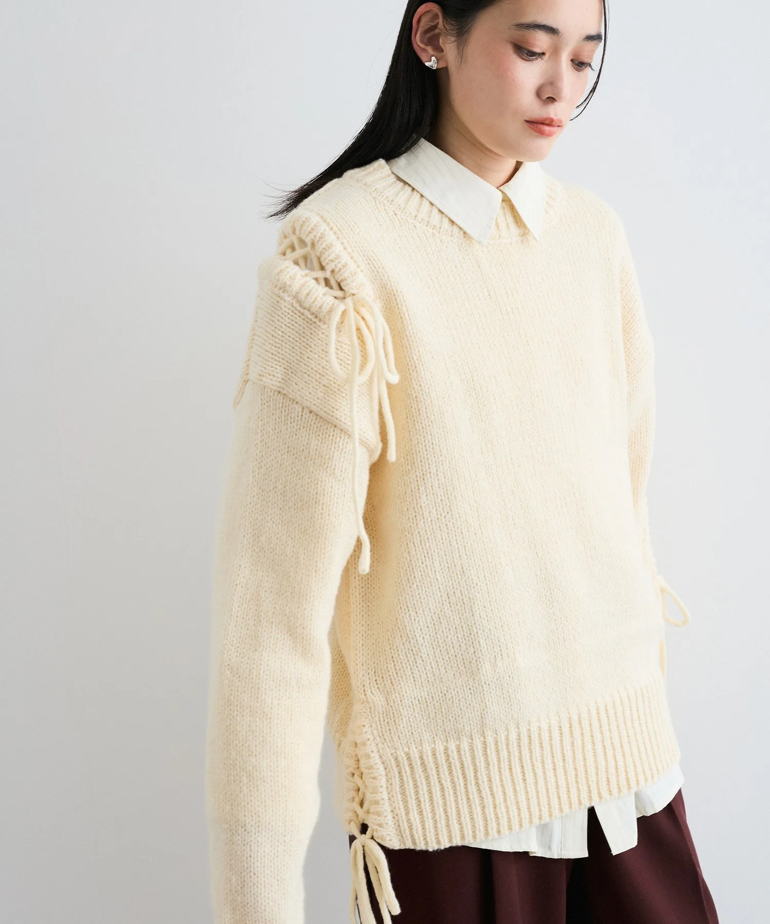 Этот трикотаж украшен шнуровкой и длинной струящейся лентой, что делает его модным трендом этого года! [Дизайн и силуэт]