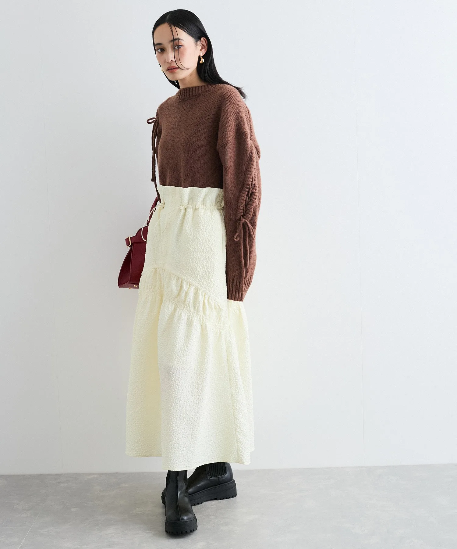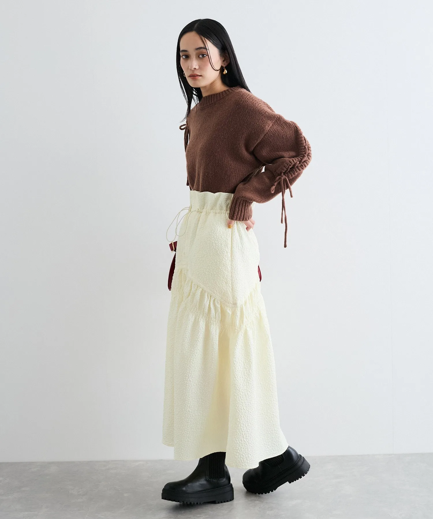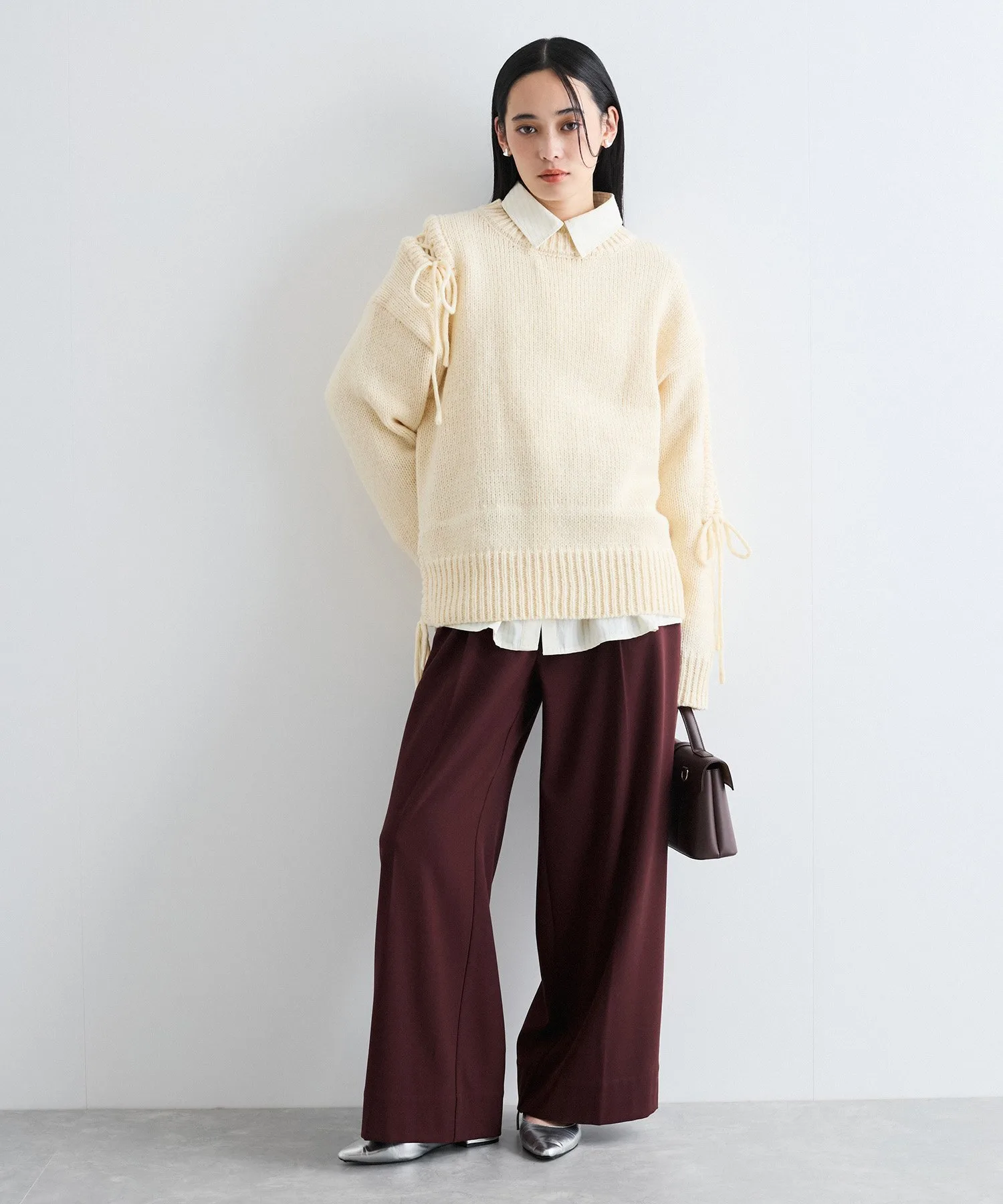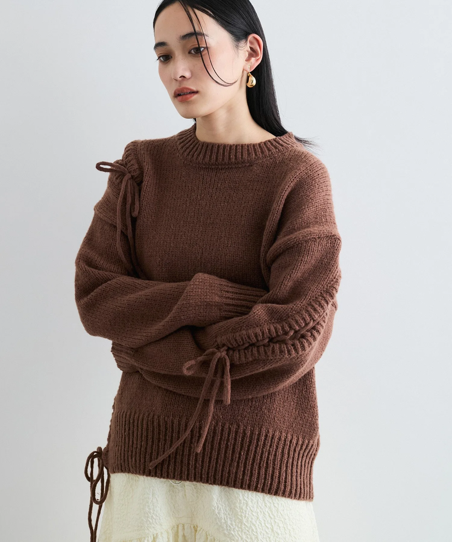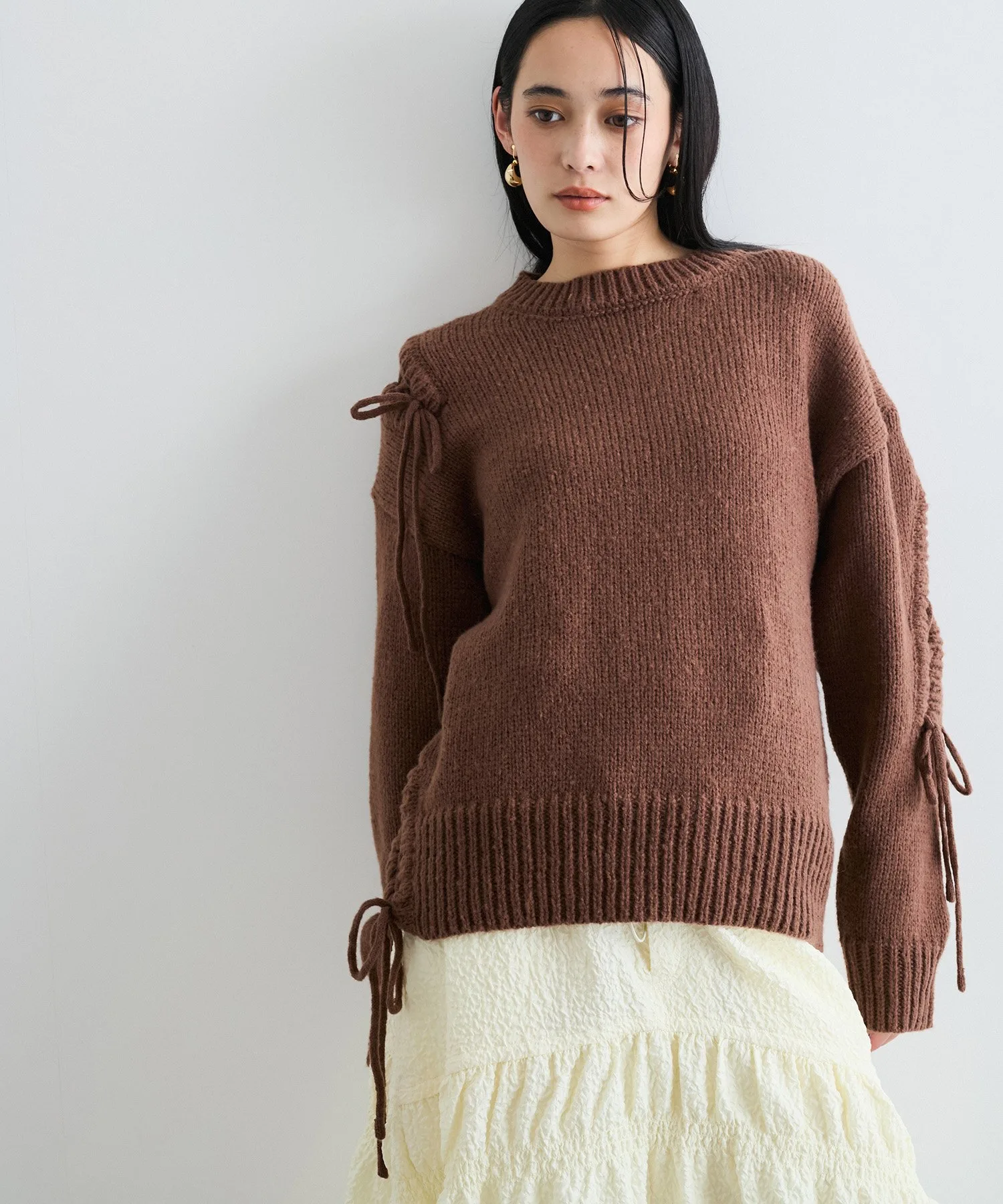 Этот трикотаж украшен шнуровкой и длинной струящейся лентой, что делает его модным трендом этого года! [Дизайн и силуэт]