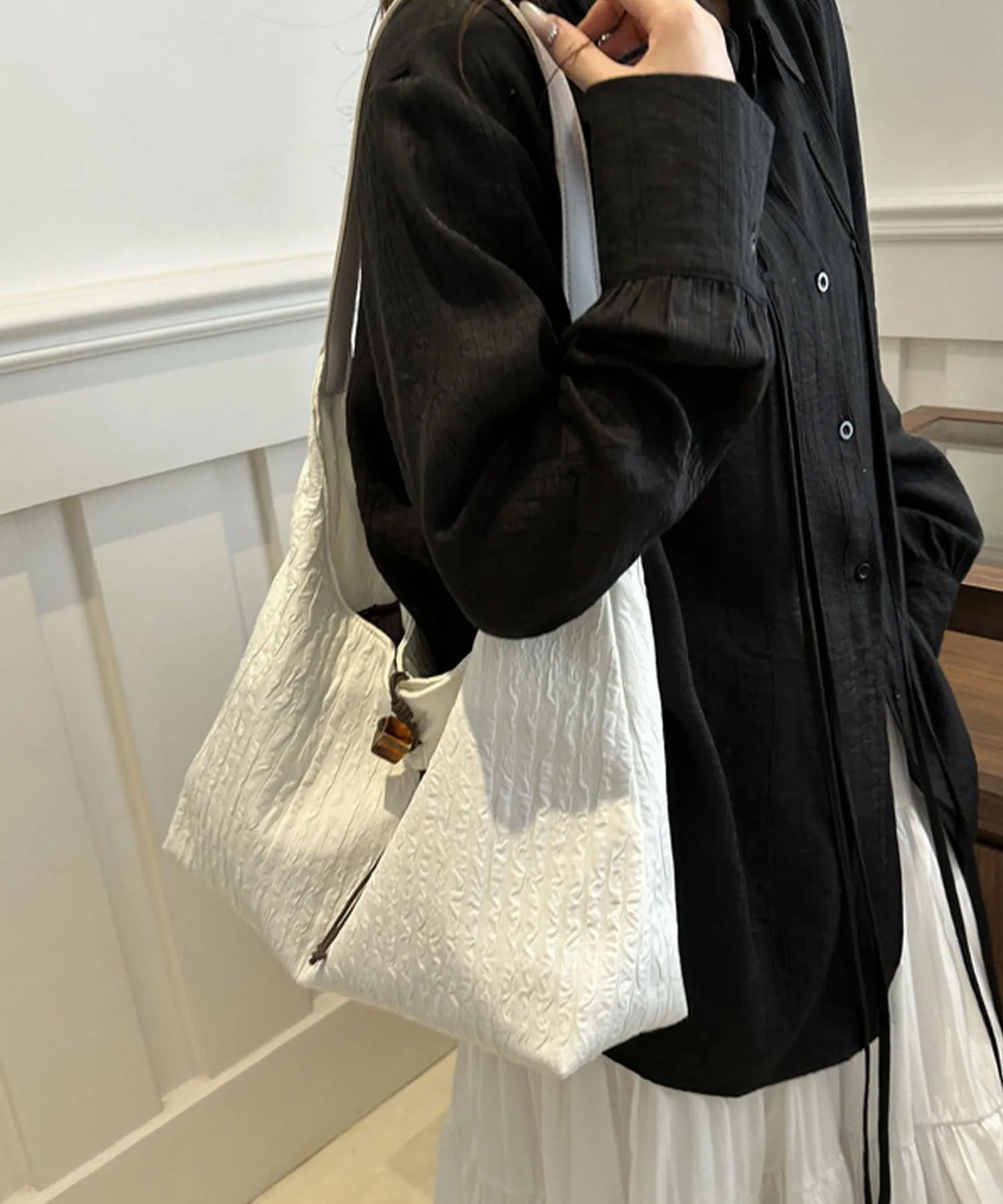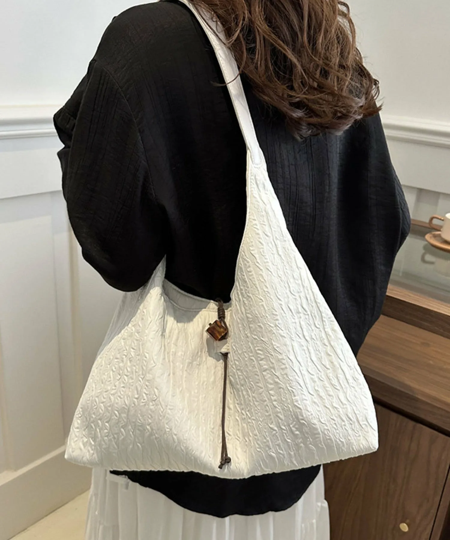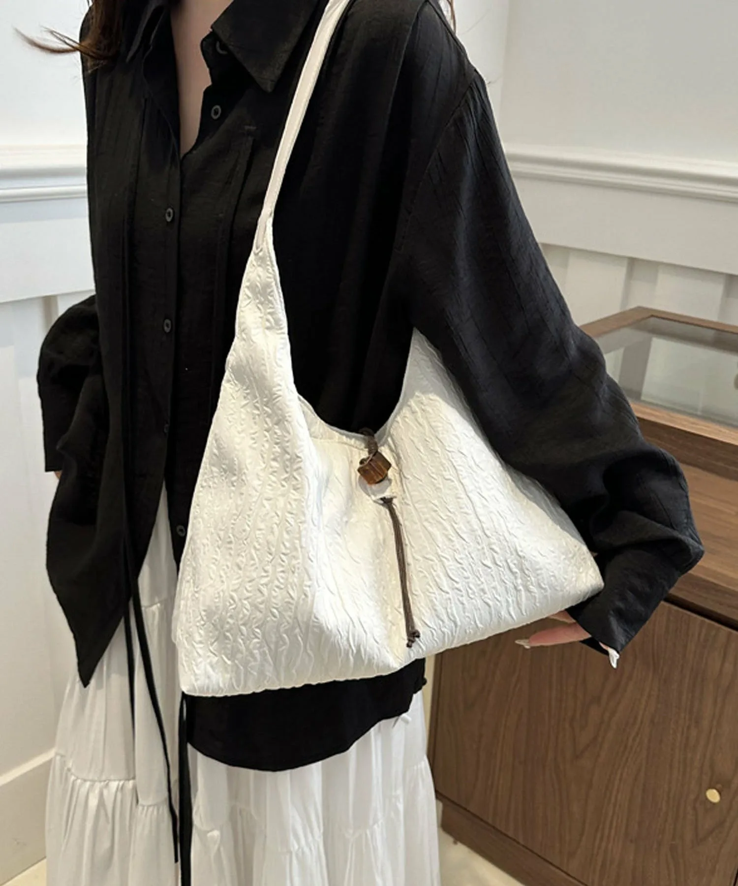 Сумка на одно плечо, отличающаяся мягкой текстурой и округлой формой. Деталь в виде петли, имитирующей дерево, на передней части добавляет естественный акцент в винтажном стиле.
