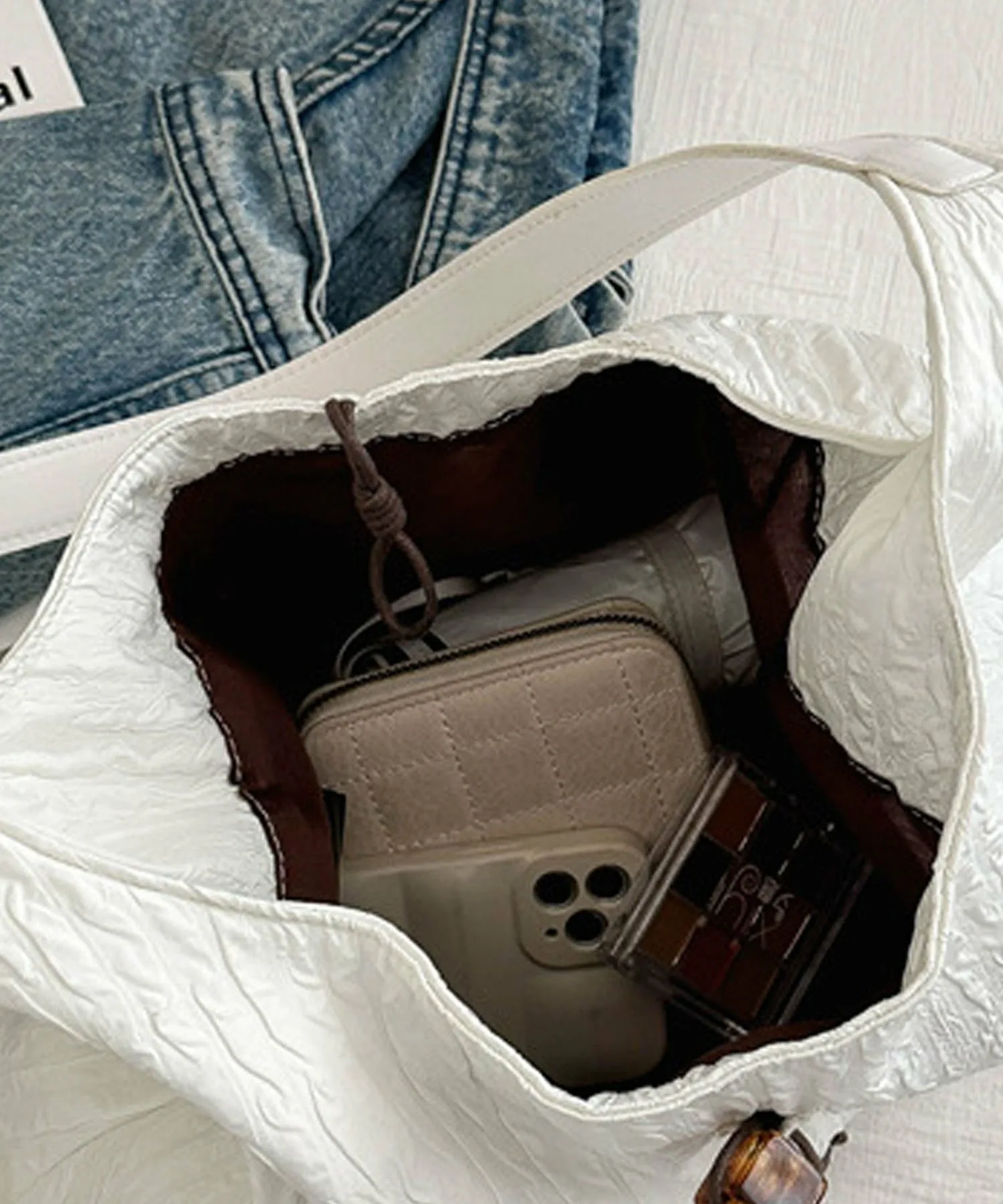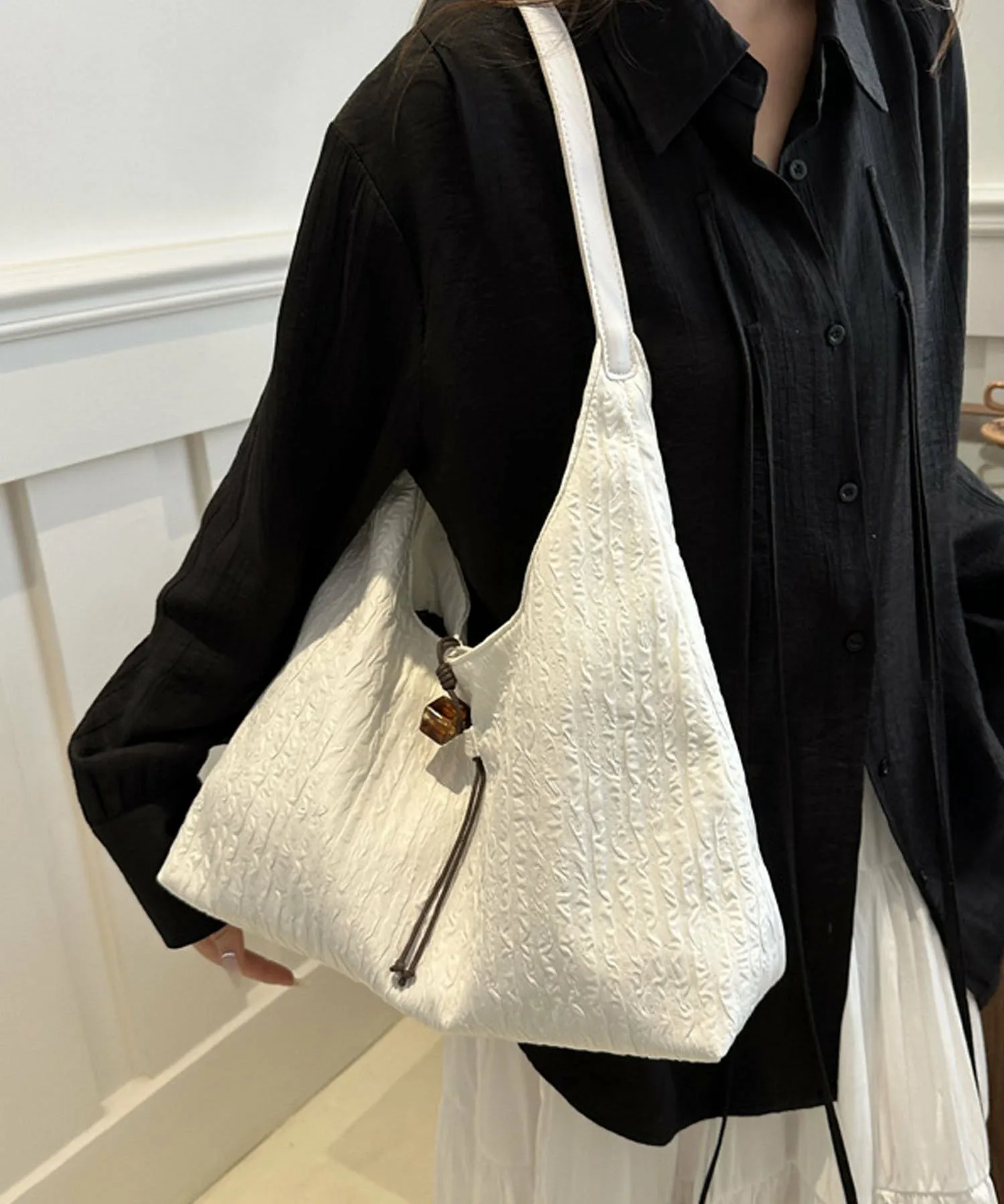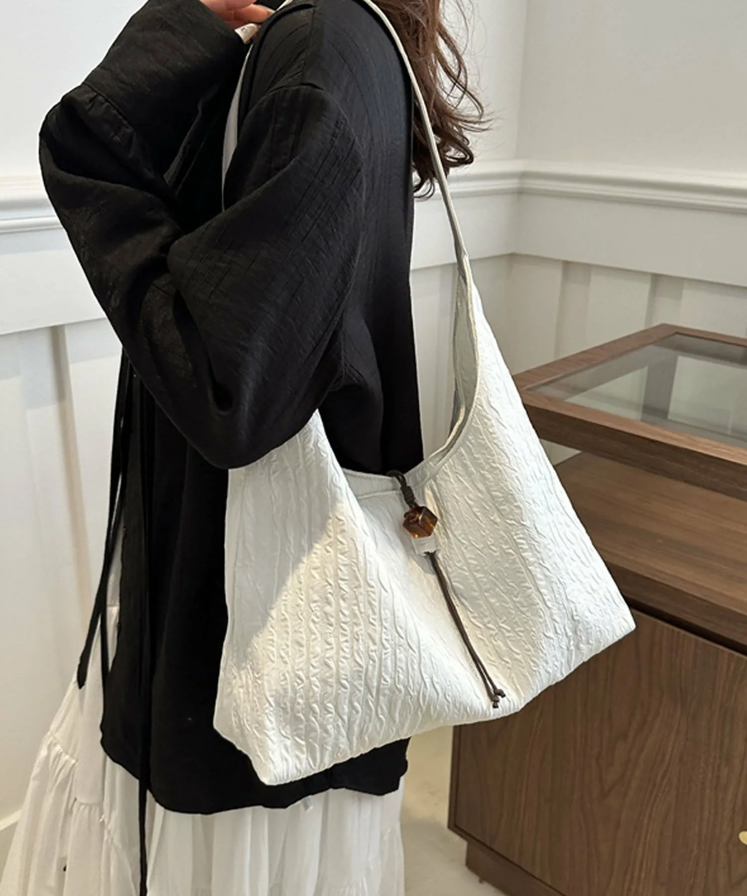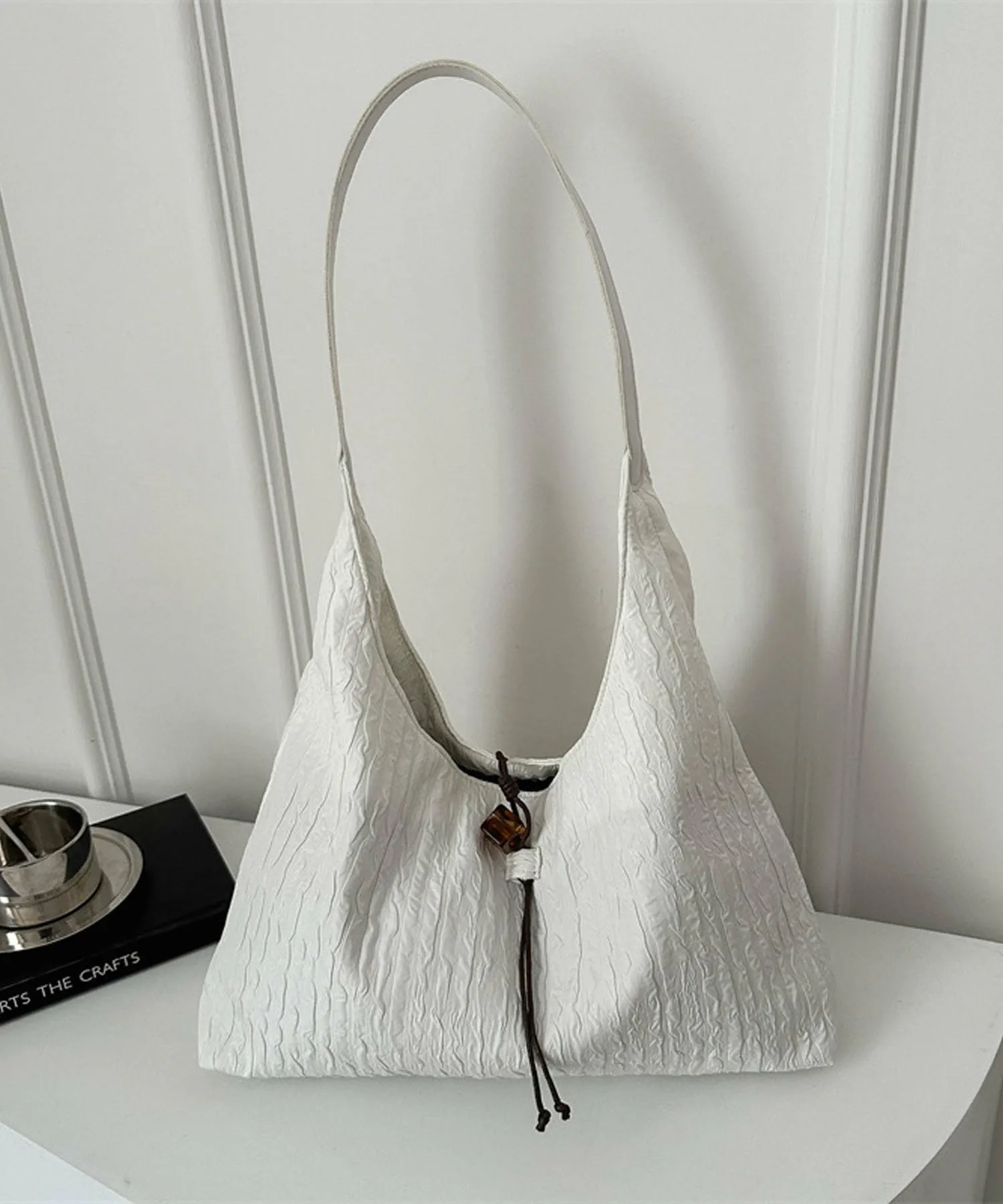 Сумка на одно плечо, отличающаяся мягкой текстурой и округлой формой. Деталь в виде петли, имитирующей дерево, на передней части добавляет естественный акцент в винтажном стиле.
