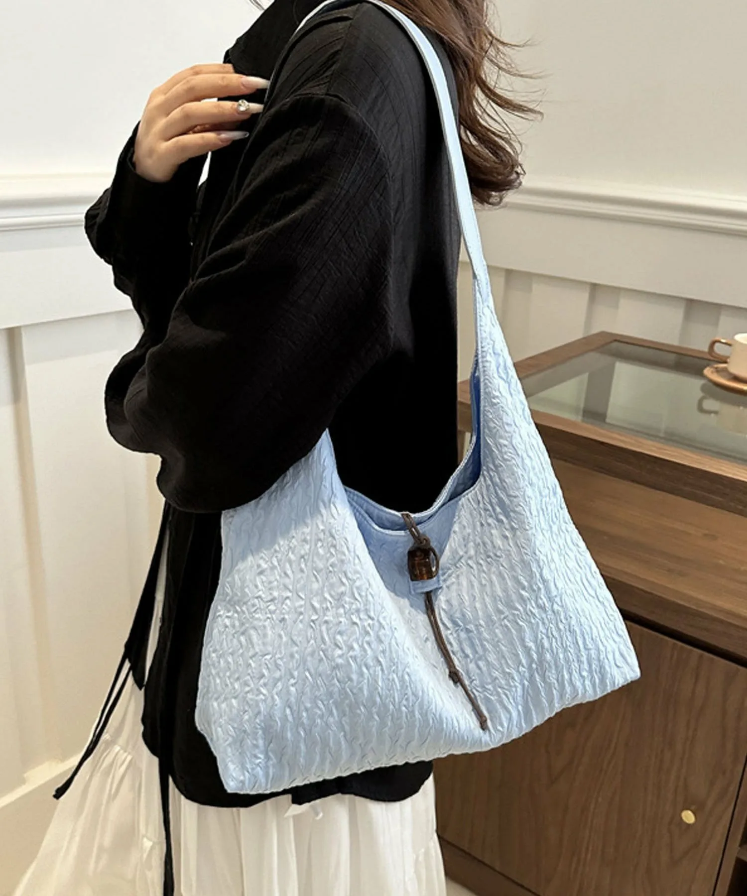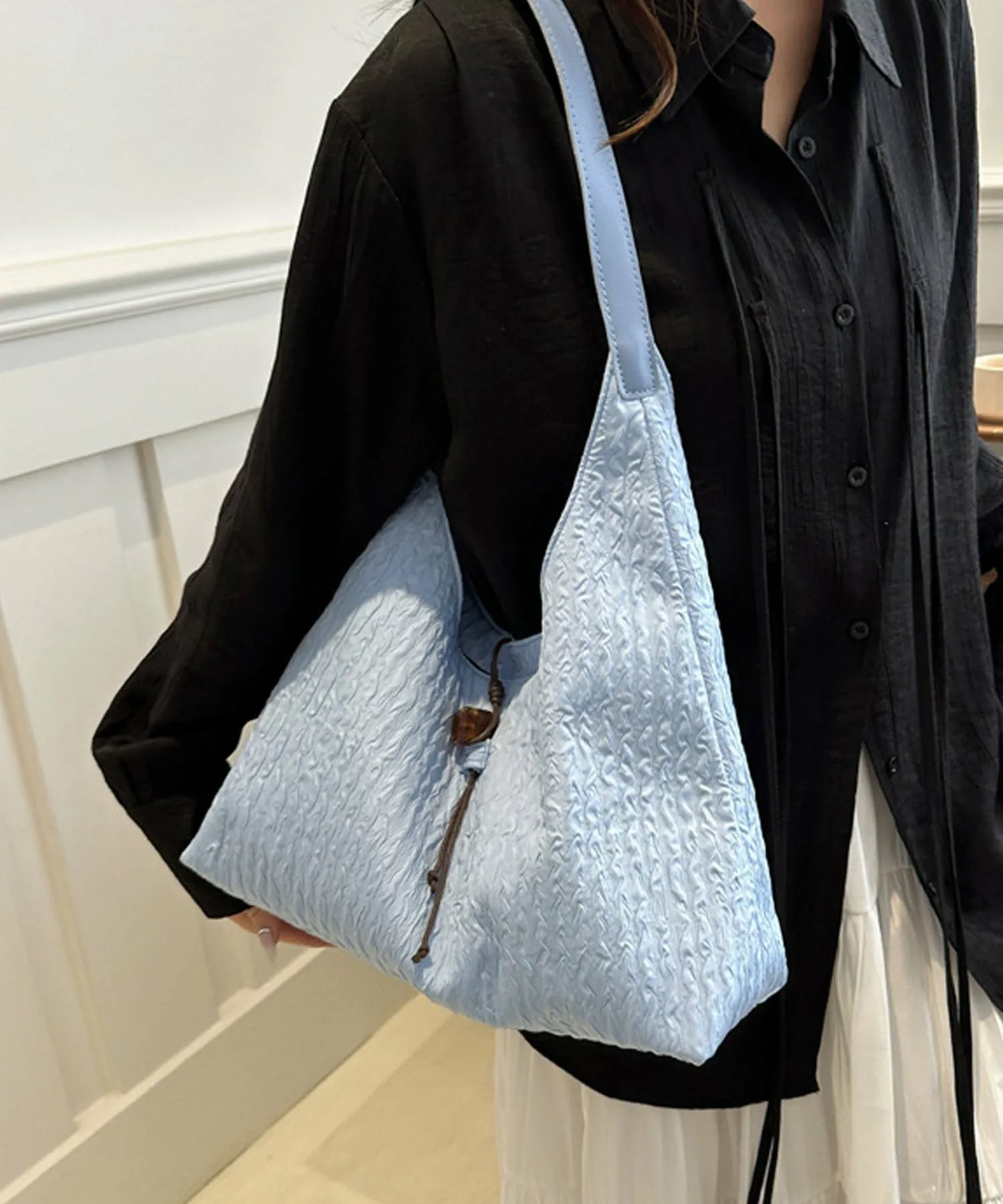 Сумка на одно плечо, отличающаяся мягкой текстурой и округлой формой. Деталь в виде петли, имитирующей дерево, на передней части добавляет естественный акцент в винтажном стиле.