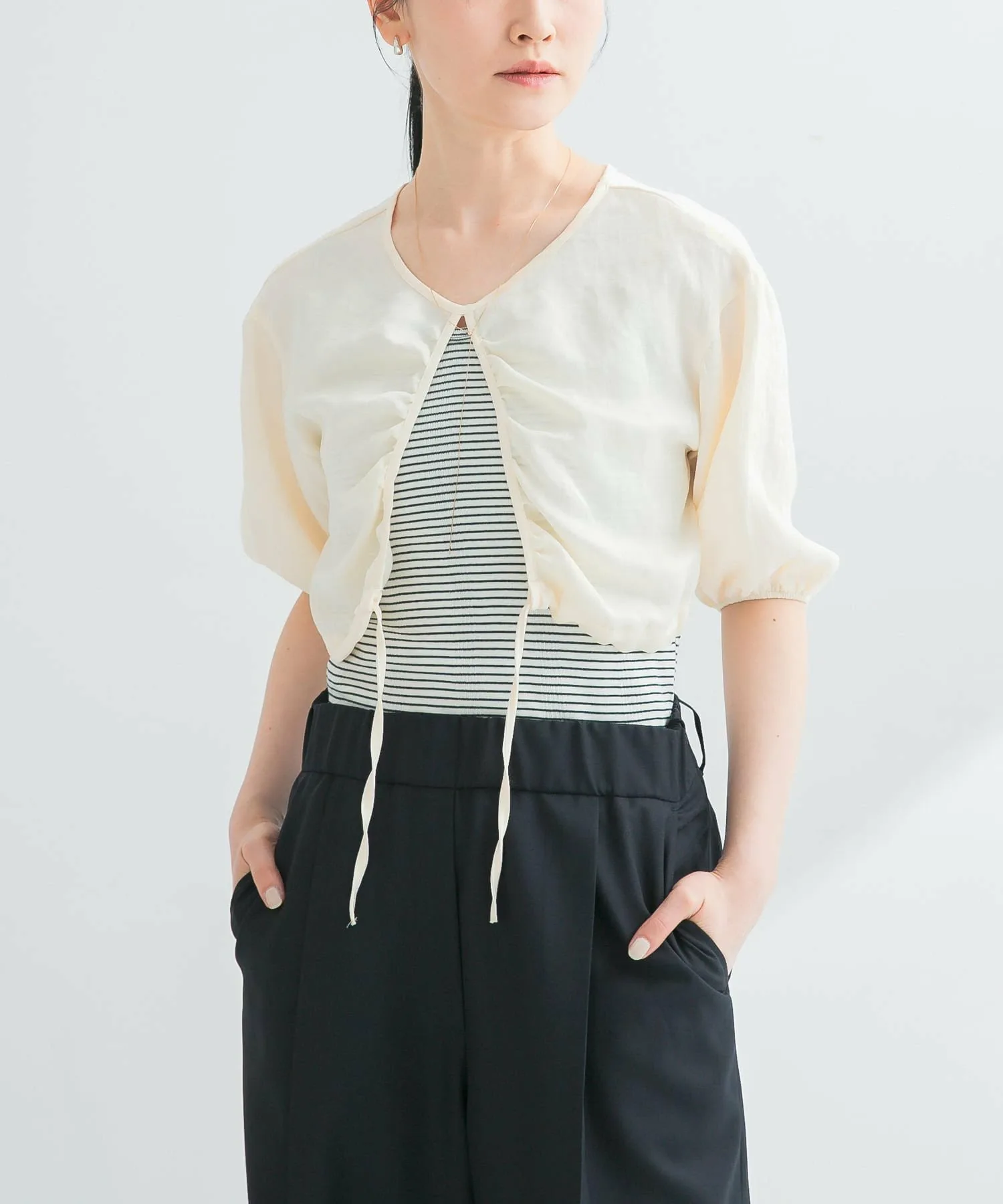 Короткие бретели придают ей иной вид по сравнению с обычными майками.