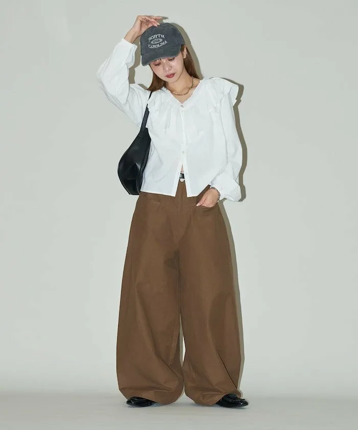Трехмерный силуэт в моде! Брюки силуэта «бочка», которые сделают ваши ноги красивыми и модными●Трехмерный силуэт, слегка закругленный в области икр●Они не подчеркивают линии ног, скрывая проблемные зоны и создавая эффект стройности◎●Широкие брюки с модным, объемным силуэтом●Прорезные карманы с обеих сторон расположены высоко, создавая иллюзию более длинных ног●Эти модные брюки невероятно универсальны и придадут вам стильный вид просто благодаря их ношению Рекомендуемое сочетаниеПросто сочетайте их с компактным топом для сбалансированного, модного образа. Ее можно носить в повседневном стиле со свитшотом или футболкой с длинными рукавами, или же сочетать с рубашкой для более нарядного образа.Наша главная рекомендация — сочетание с милым предметом одежды, например, блузкой.Она достаточно универсальна, чтобы сочетаться с широким спектром обуви, от кроссовок и ботинок до туфель на каблуках,и является обязательным элементом гардероба в этом сезоне, который придаст вам модный вид, просто сочетая ее с вашей обычной блузкой.---Пожалуйста, обратитесь к изображению с подробным описанием товара, чтобы узнать фактический цвет изделия.Обратите внимание, что цвет изделия на изображении может отличаться от фактического цвета из-за условий освещения и углов обзора, как в помещении, так и на улице. Также обратите внимание, что отображаемый размер может немного отличаться от фактического размера изделия. Пожалуйста, обязательно проверяйте этикетку качества и бирку с информацией, прикрепленные к изделию, перед тем как надевать или брать его в руки.Доставка товаров осуществляется курьером или на пункт выдачи заказов.