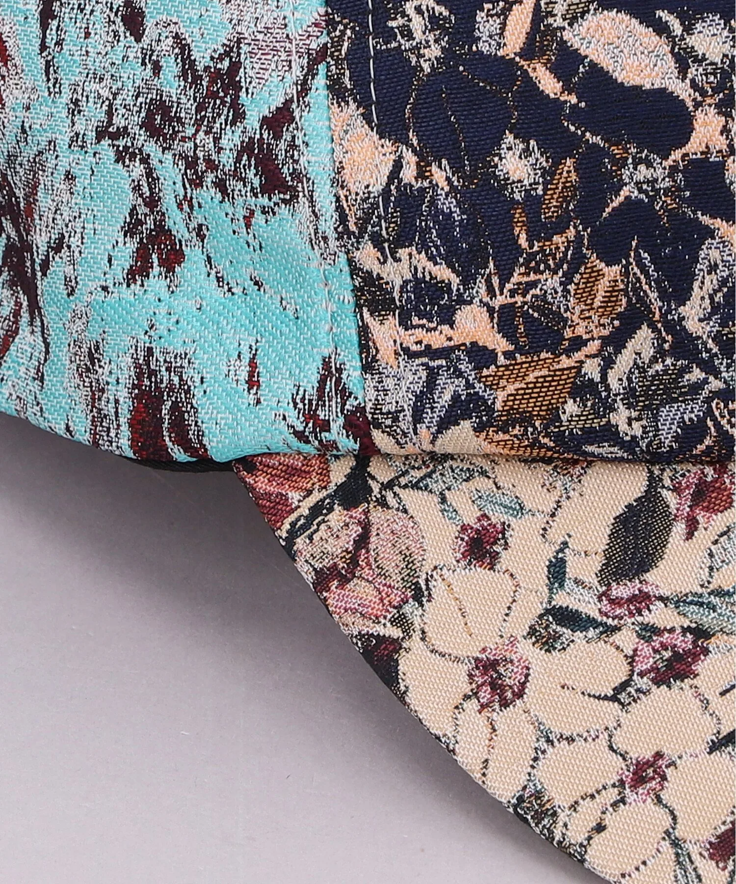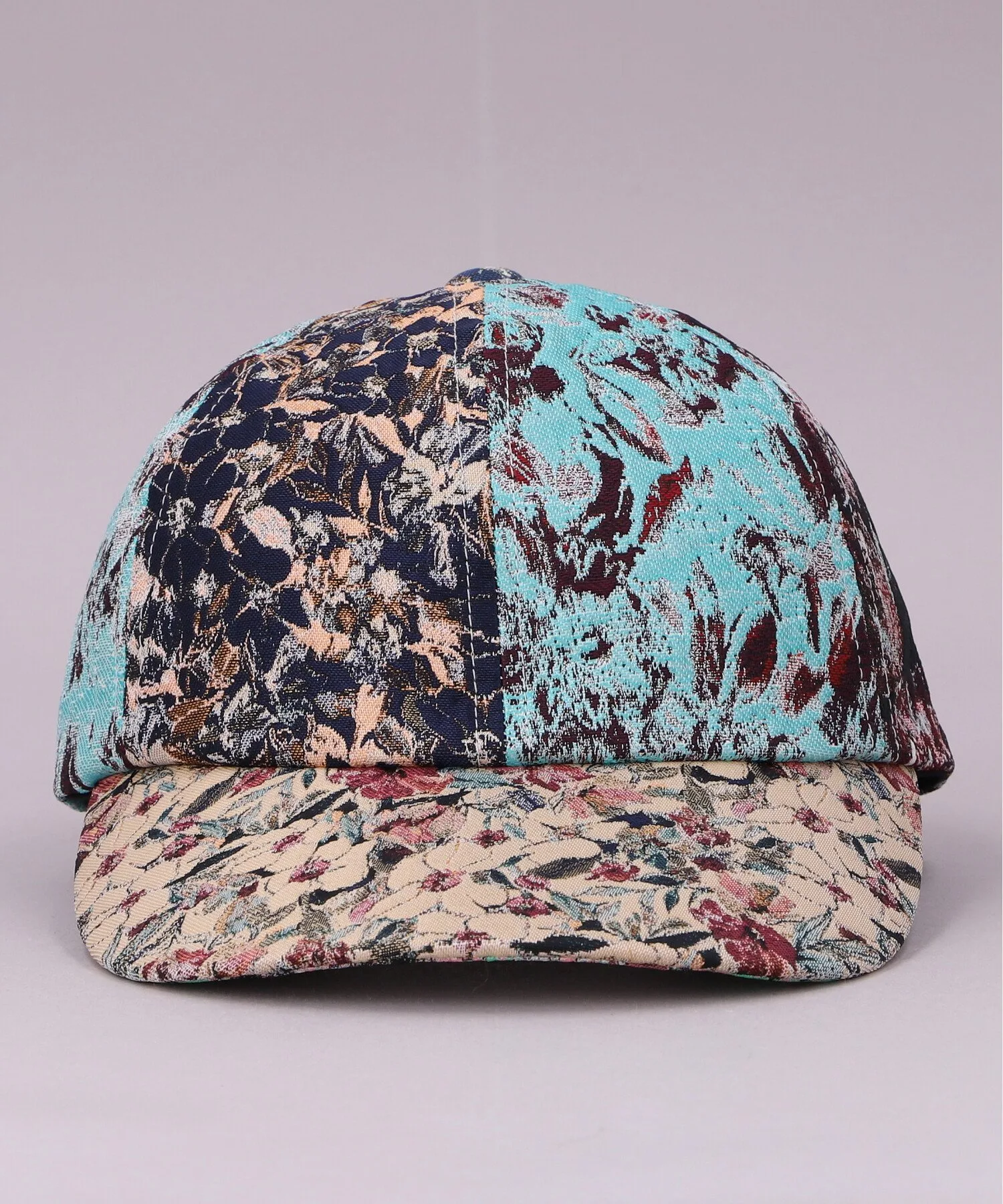 Дизайн сочетает переднюю и заднюю части жаккардовой ткани в стиле пэчворк. Баланс цвета и узора различен для каждой кепки, создавая эффектный внешний вид.