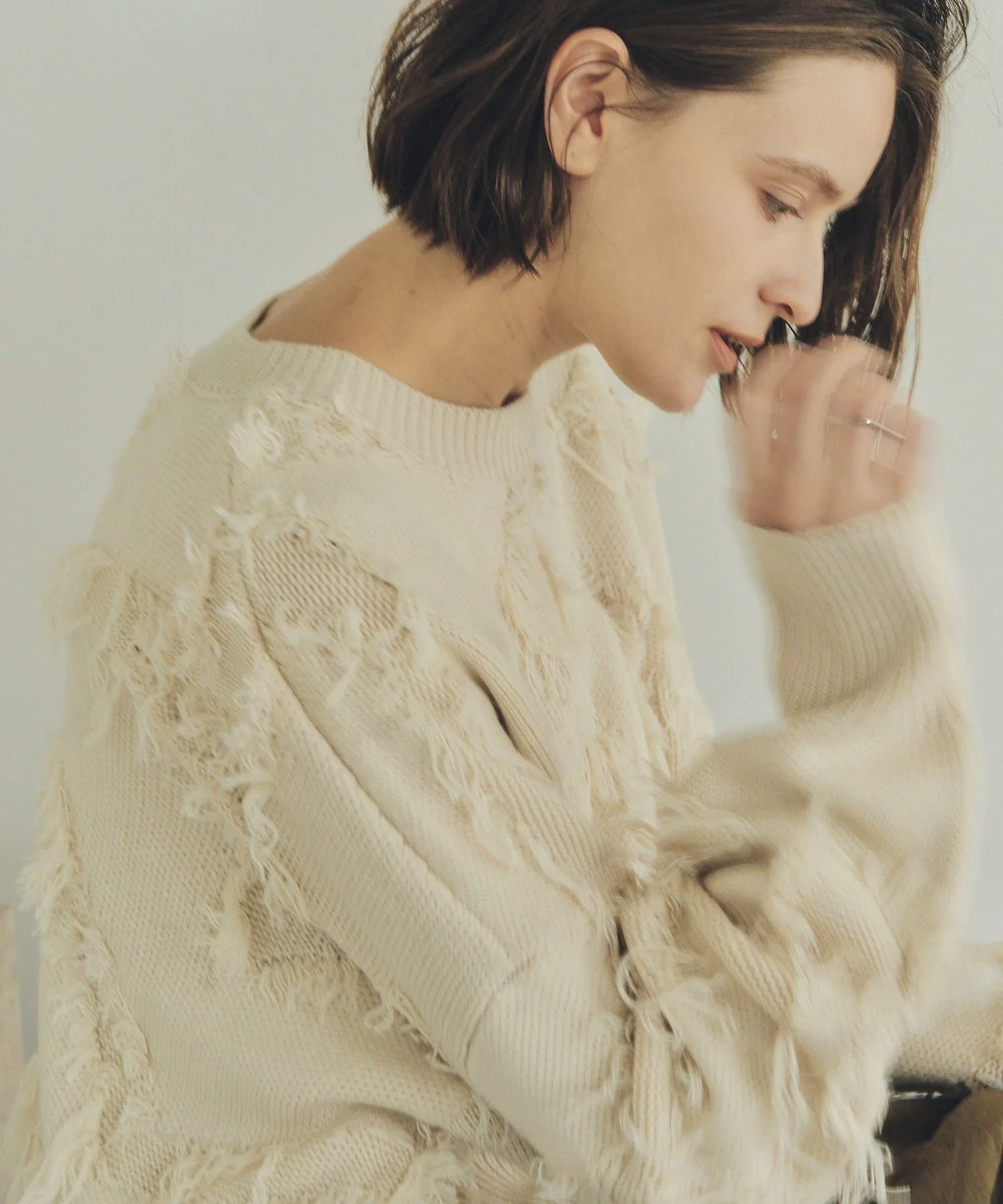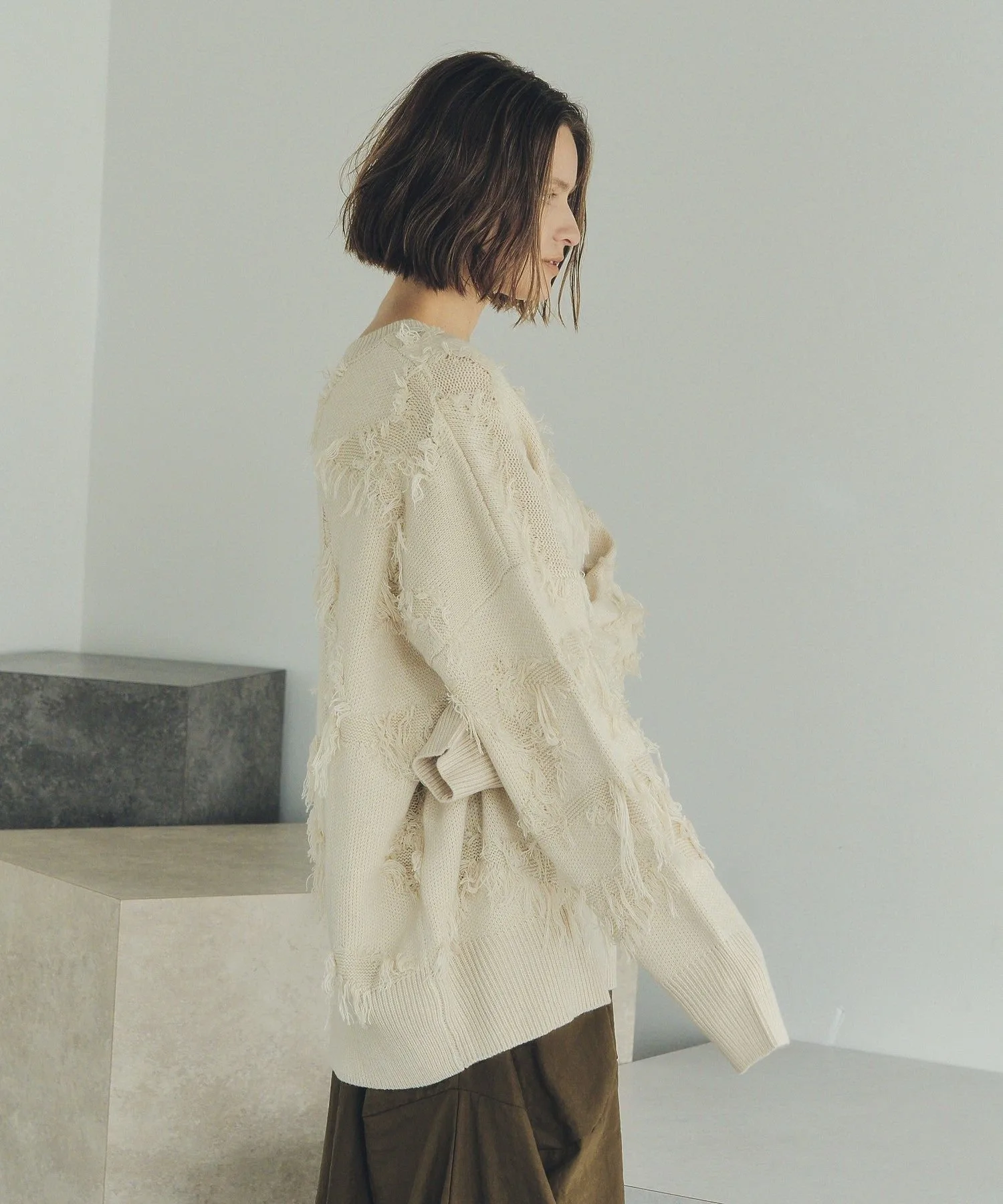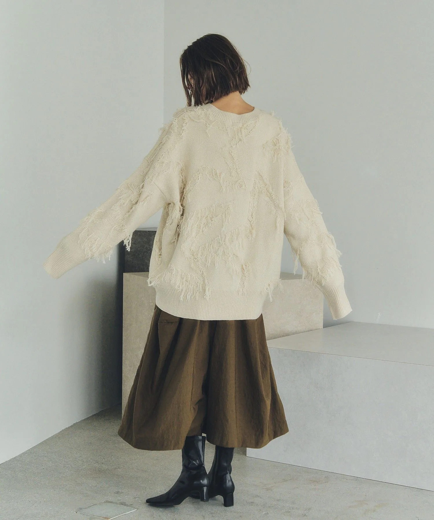 Дизайн-трикотаж с эффектным узором в виде звезд, выполненный из трехмерной жаккардовой бахромы.