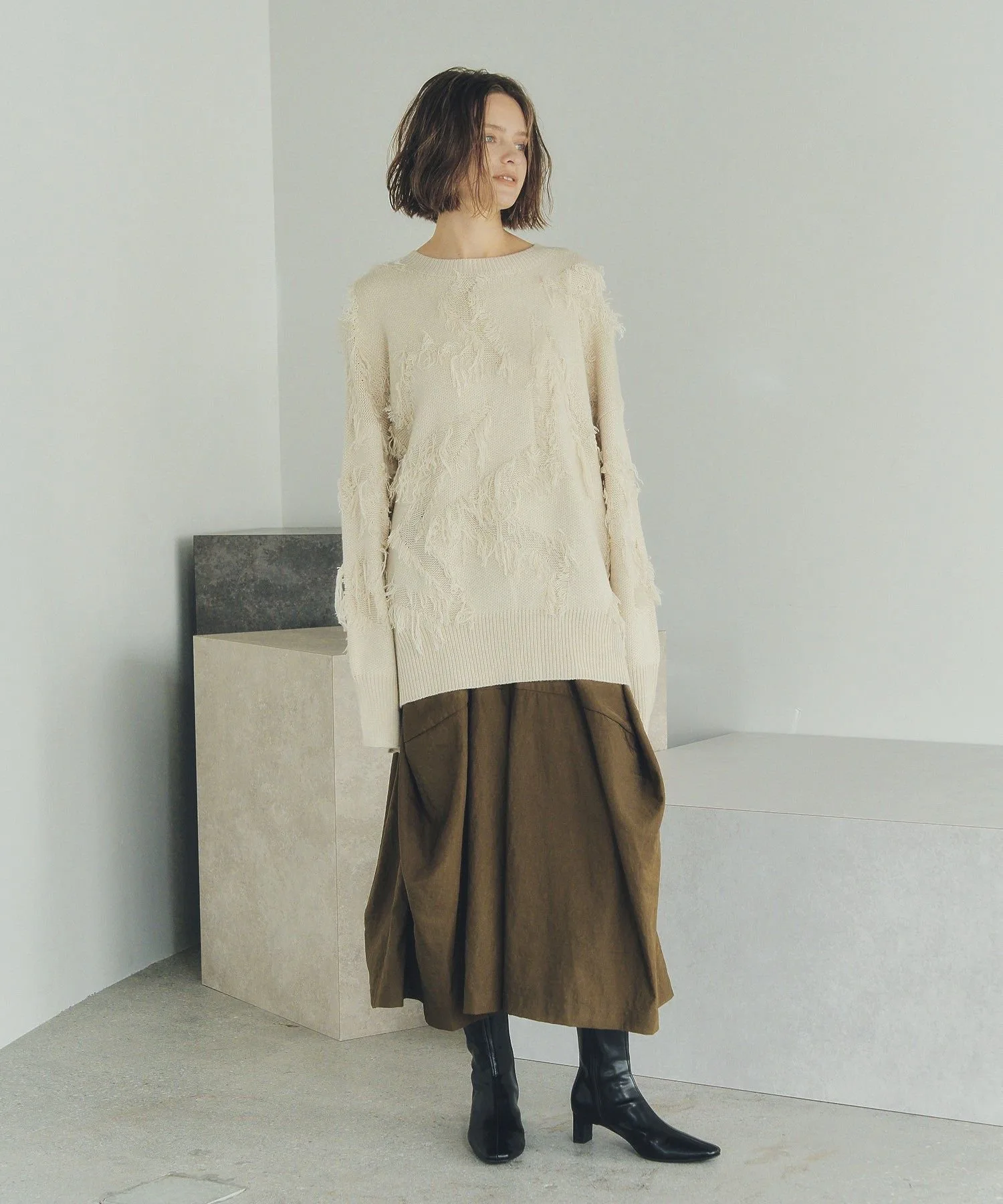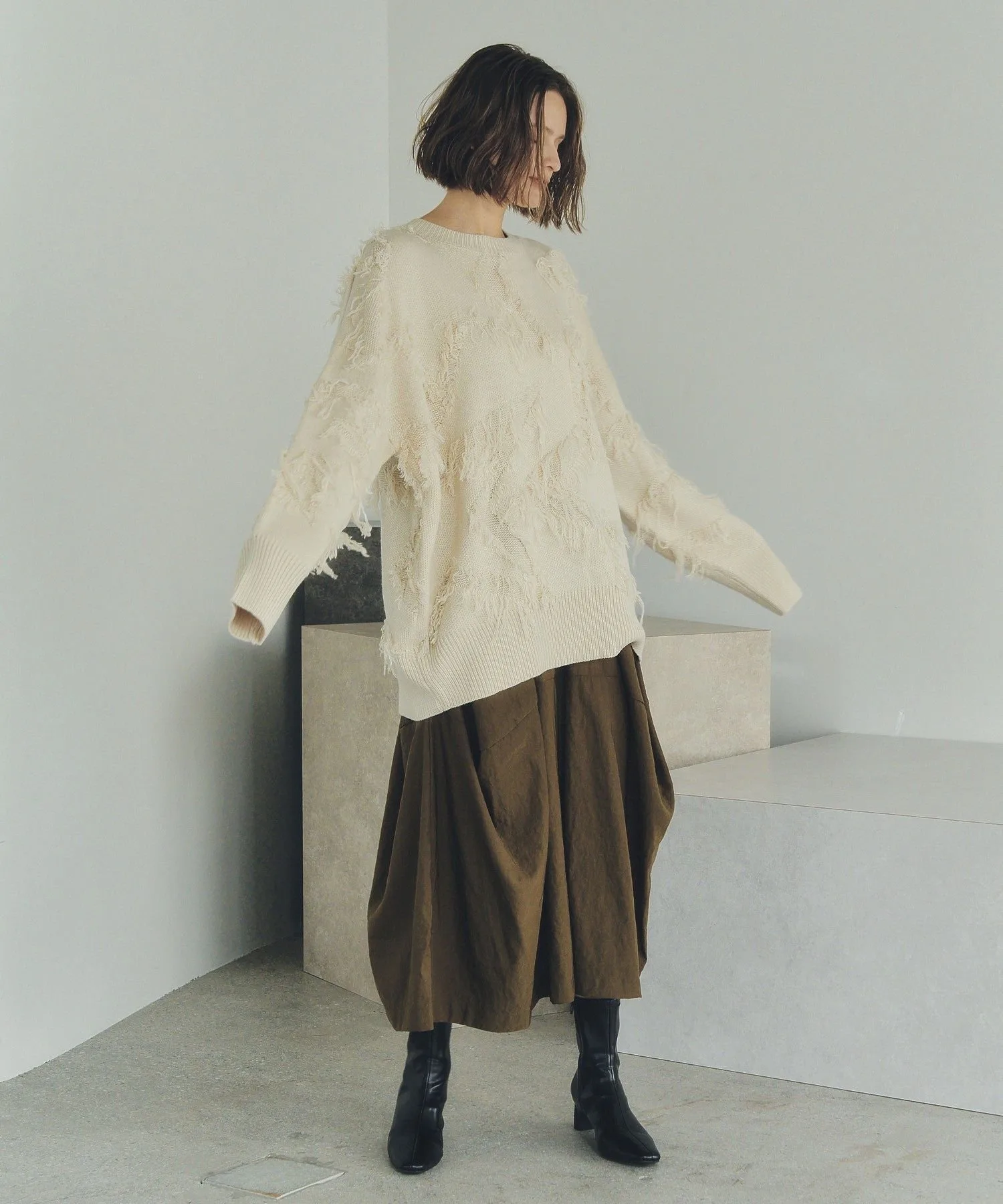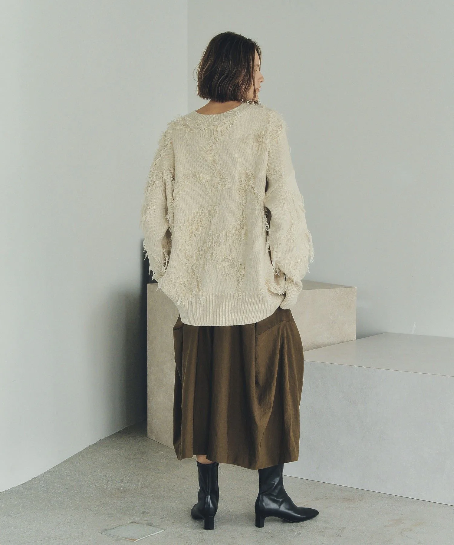 Дизайн-трикотаж с эффектным узором в виде звезд, выполненный из трехмерной жаккардовой бахромы.