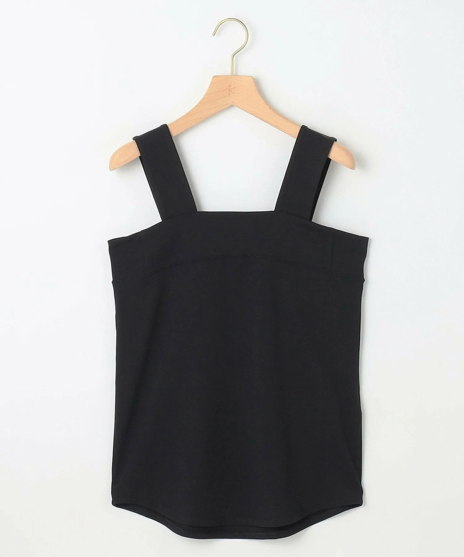 Дизайн・Квадратная майка с открытым верхом, с широкими бретелями, скрывающими грудь и бретели нижнего белья. ・Неглубокий квадратный вырез создает аккуратный силуэт вокруг груди и обеспечивает достаточное покрытие до подмышек. ・Эластичный материал облегает тело, а контрастная ткань над грудью предотвращает чрезмерное обнажение. ・Грудная часть имеет двойной слой для непрозрачного вида. ・Чередование плетения ткани в области подмышек (вертикальное спереди и горизонтальное сзади) обеспечивает плотное прикрытие подмышек, которые часто являются наиболее чувствительной зоной, создавая аккуратный вид.