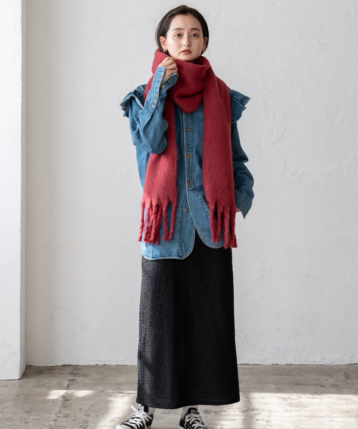 Его также можно использовать в качестве акцента к осенне-зимним нарядам и для того, чтобы визуально уменьшить лицо.