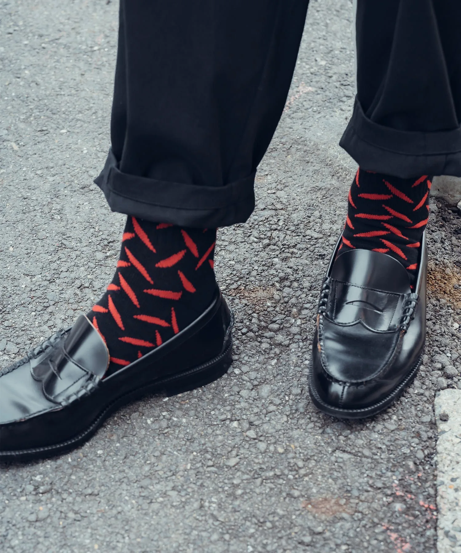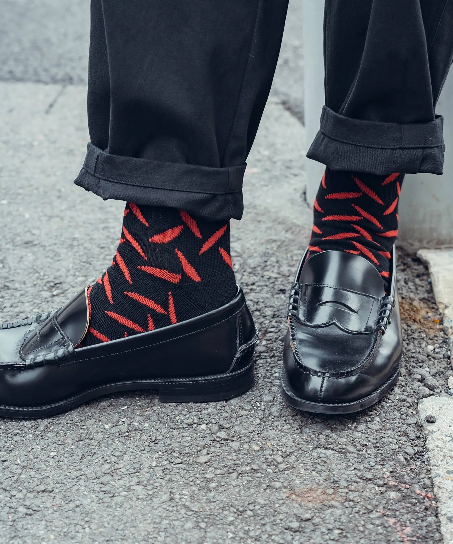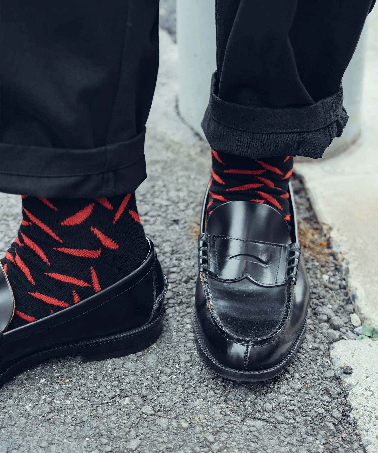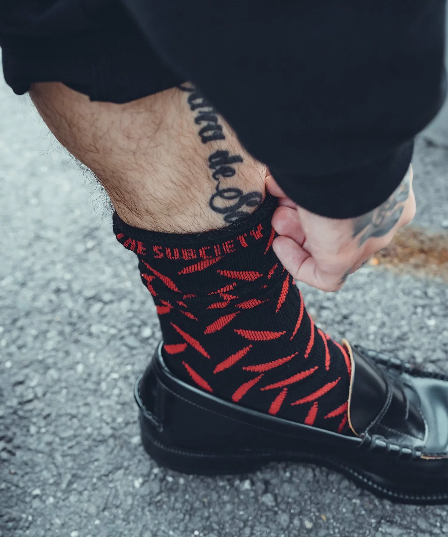 Вся ткань носков выполнена жаккардовым плетением с узором из полосатых стальных пластин (клетчатых пластин), используемых на строительных площадках и т. д.