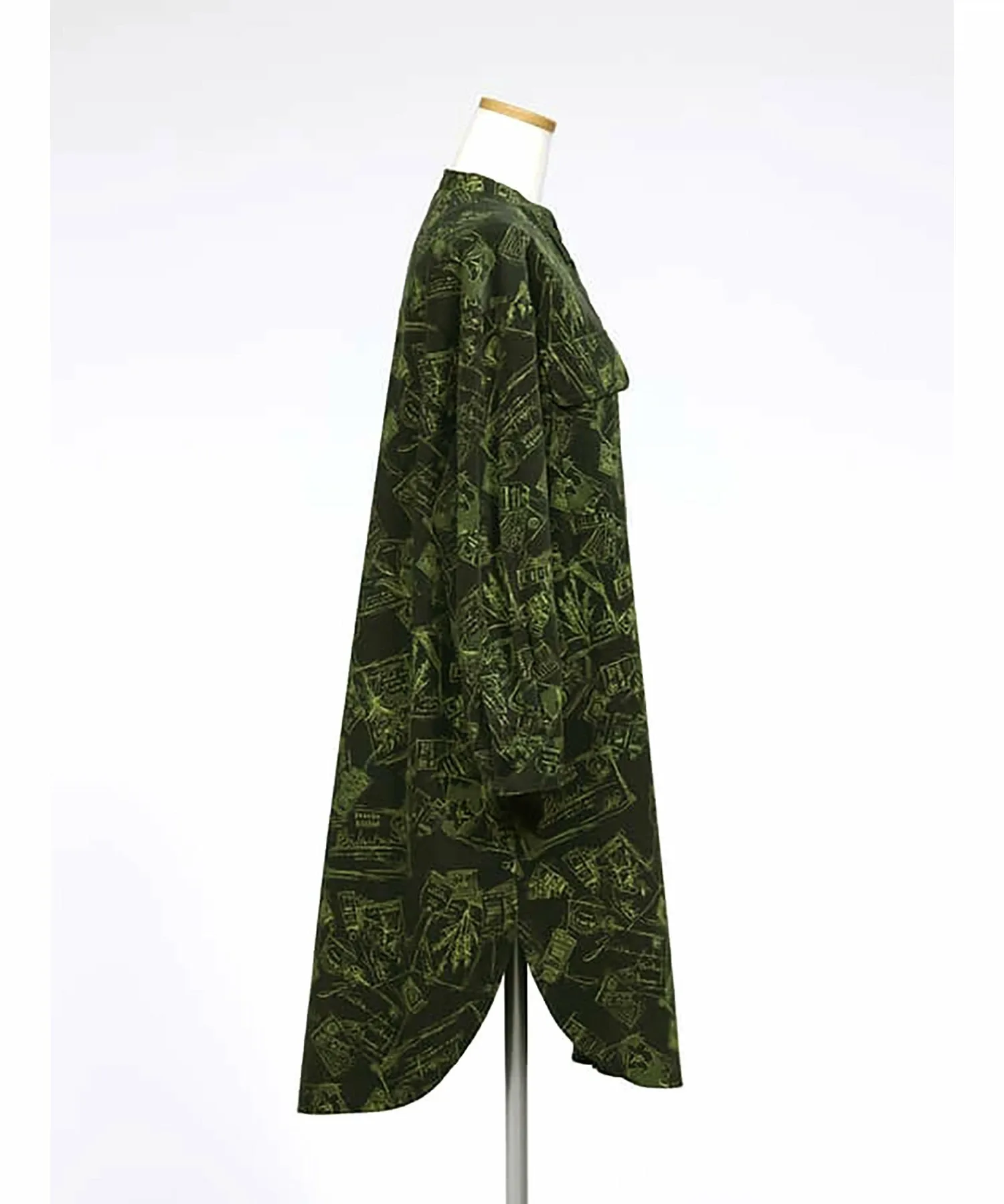 Свободный силуэт со спущенными плечами выполнен из вельветовой ткани для повседневной рубашки.