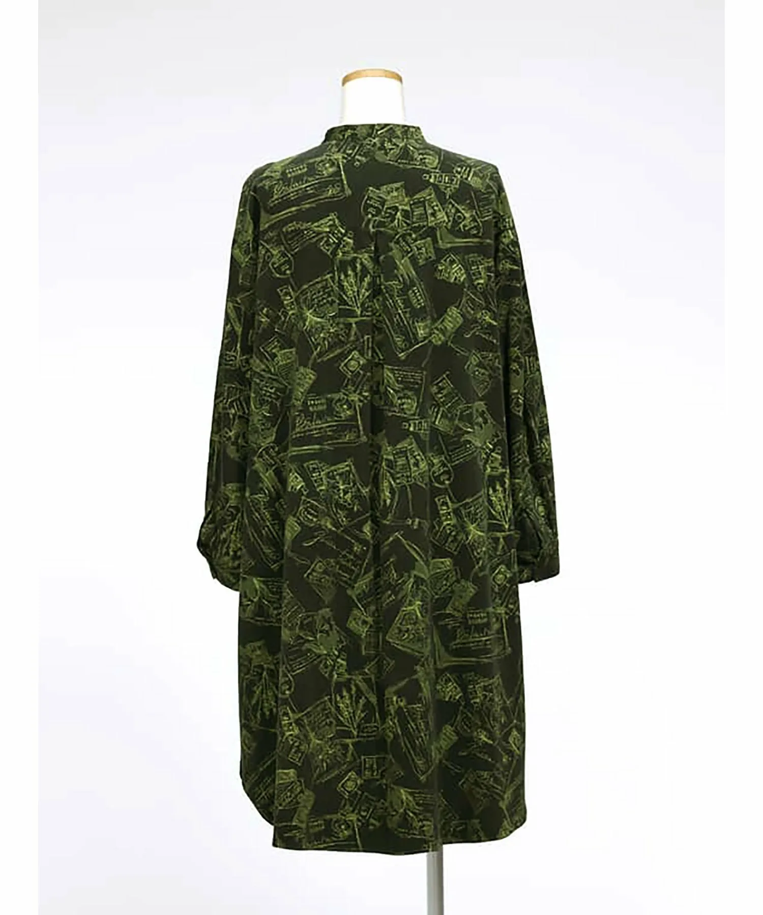 Платье с изысканным дизайном, с застежкой спереди и воротником-стойкой.