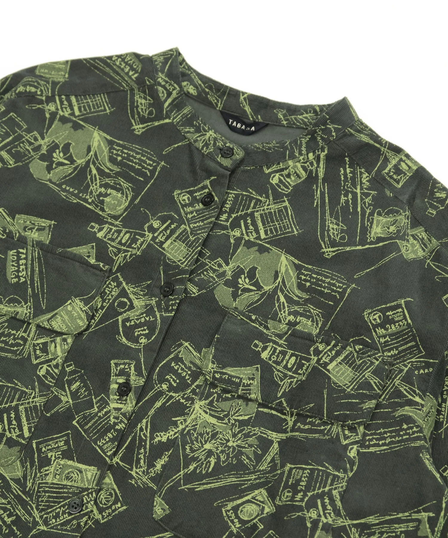 Оригинальный материал TABASA, коллаж из эскизов из путешествий, напечатанный на тонком ребристом вельвете (вельвет для рубашки).