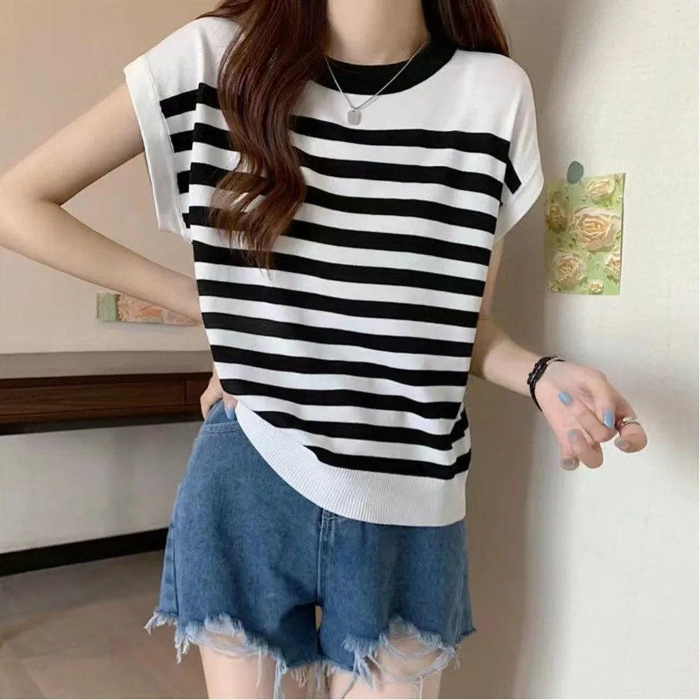 Женская трикотажная блузка с круглым вырезом, элегантная, легкая, ребристая, универсальная, повседневная, стильная.