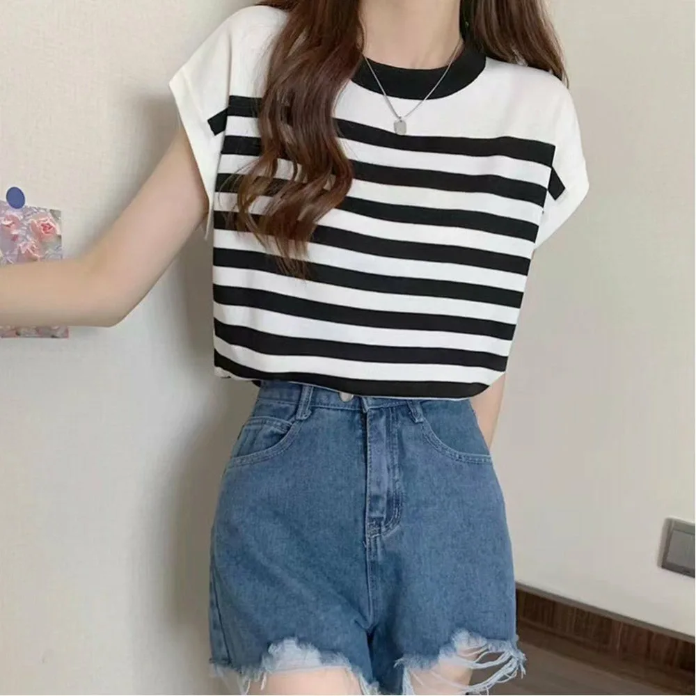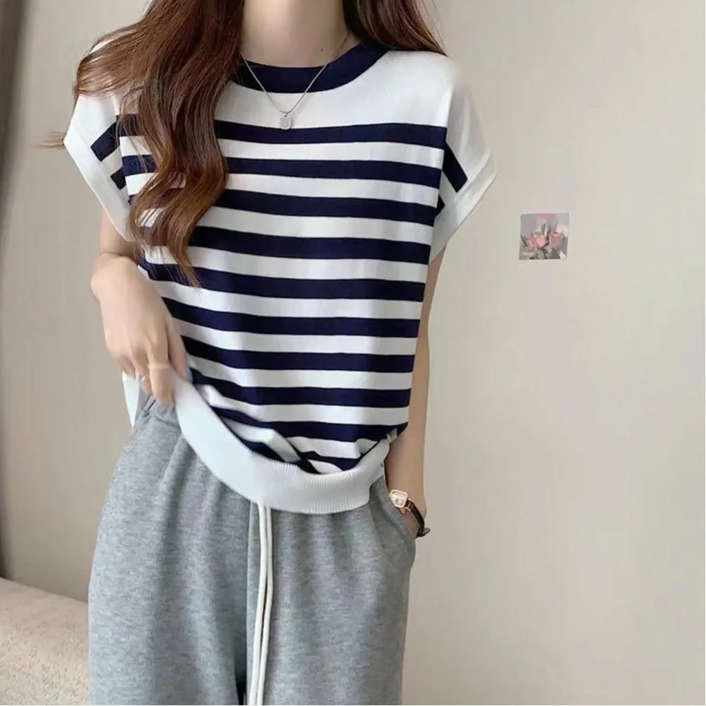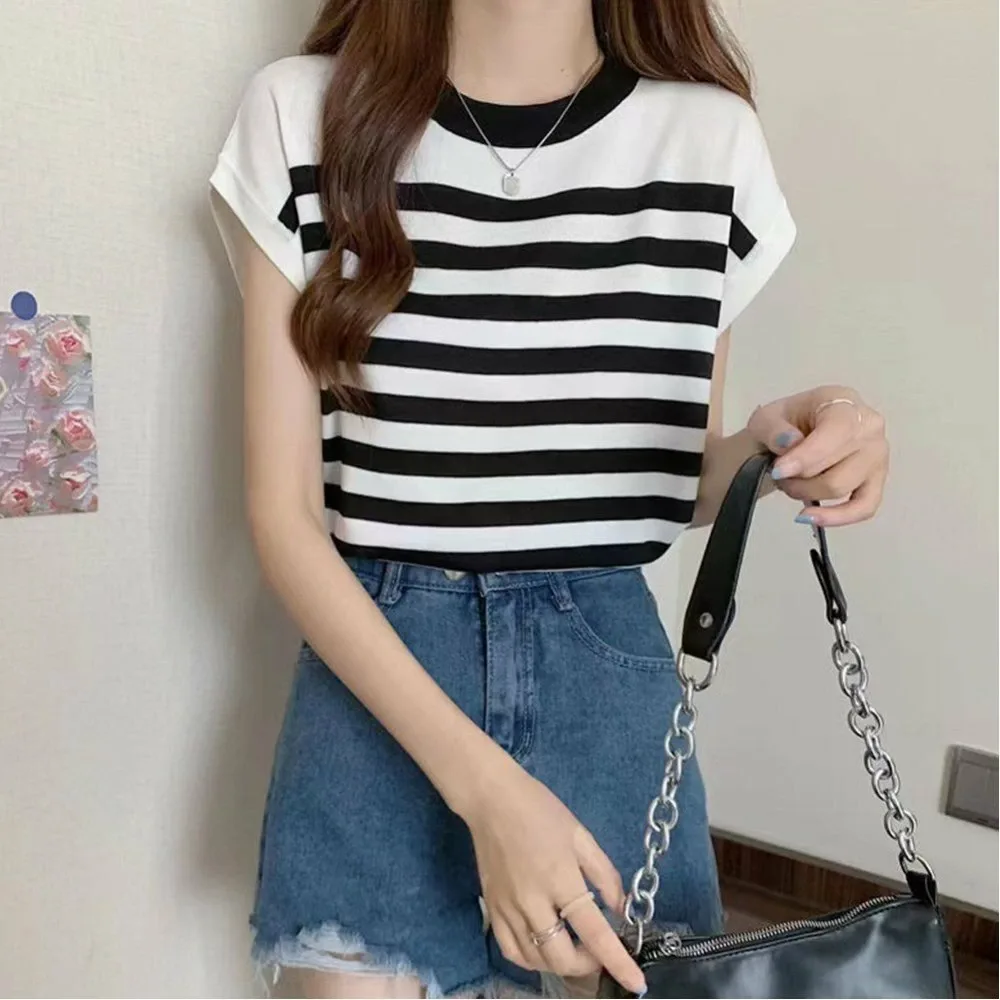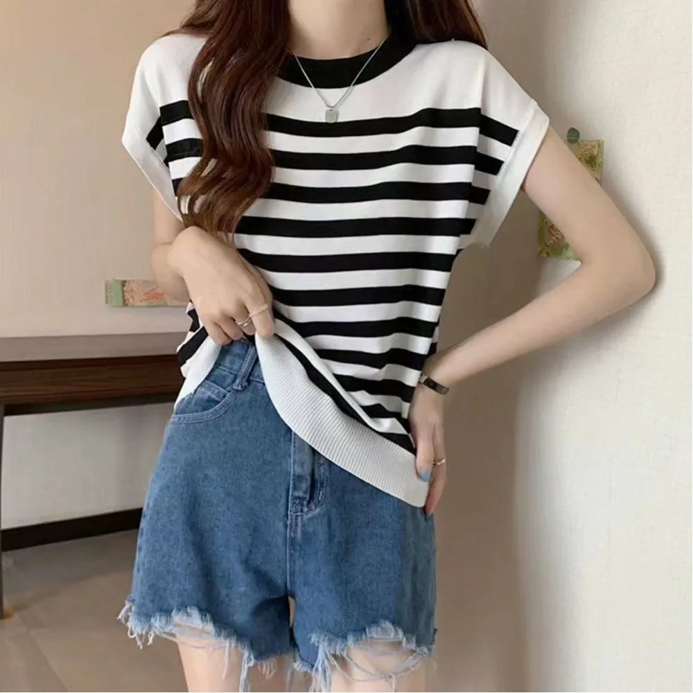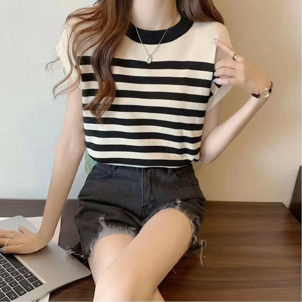 Женская трикотажная блузка с круглым вырезом, элегантная, легкая, ребристая, универсальная, повседневная, стильная.