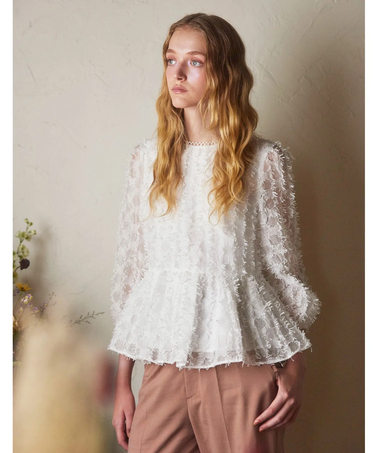 Легкая, полупрозрачная жаккардовая блузка.