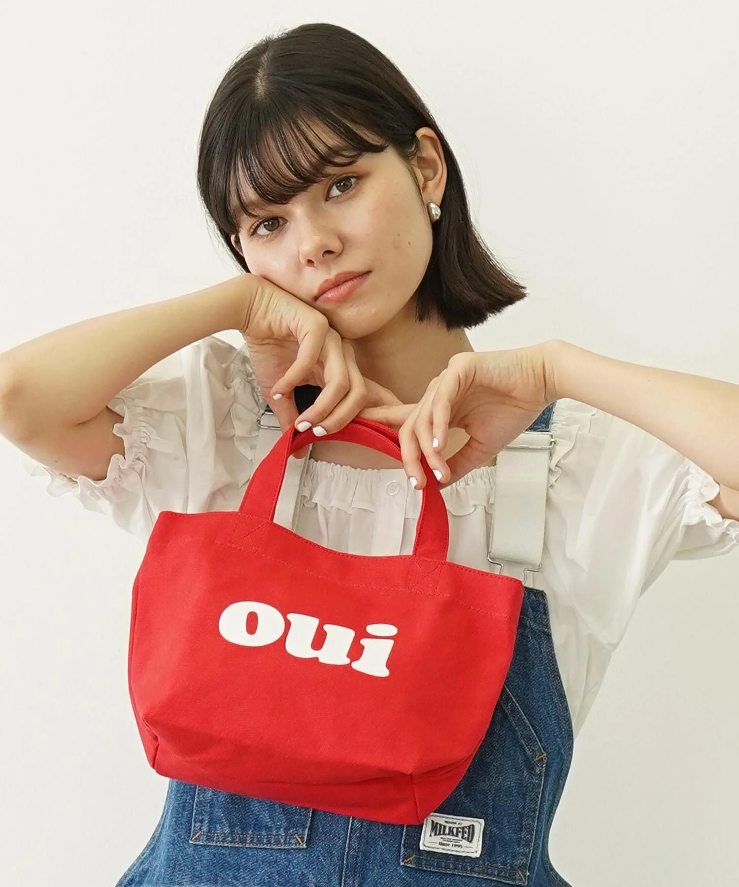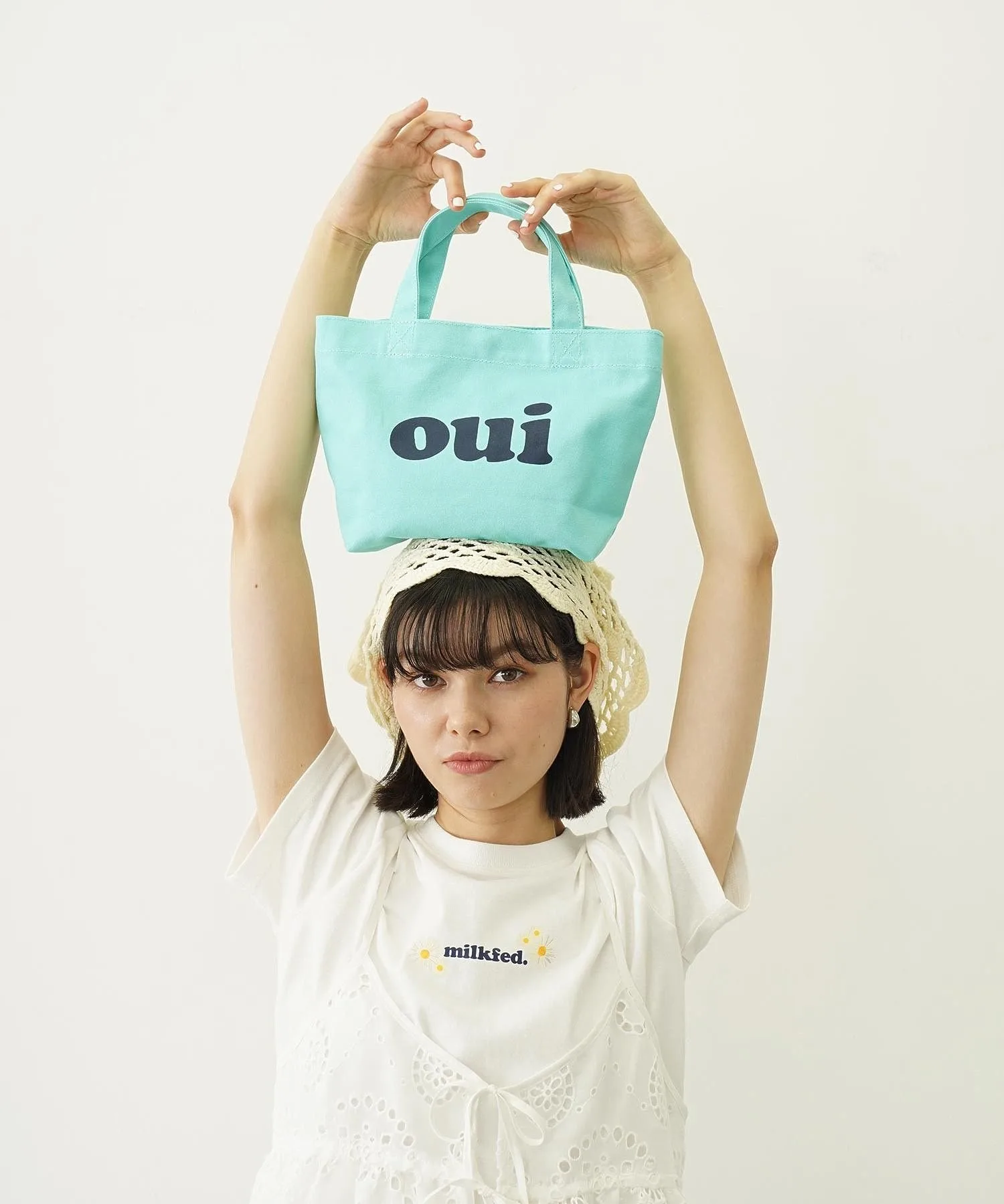 Популярная вещь из прошлого возвращается в обновленном виде! Эта мини-сумка-тоут украшена логотипом OUI. Она удобна для повседневного использования, а также для коротких поездок, например, во время перерывов на работе. Благодаря большому боковому отделению ее можно использовать и как сумку для обеда. Внутри есть карман для разделения мелких предметов, которые имеют тенденцию разлетаться. Это также отличная идея для подарка или прекрасный способ поделиться с друзьями! Характеристики: Основная застежка: Кнопка Внутреннее отделение: 1 разделенный карман [MILKFED.]