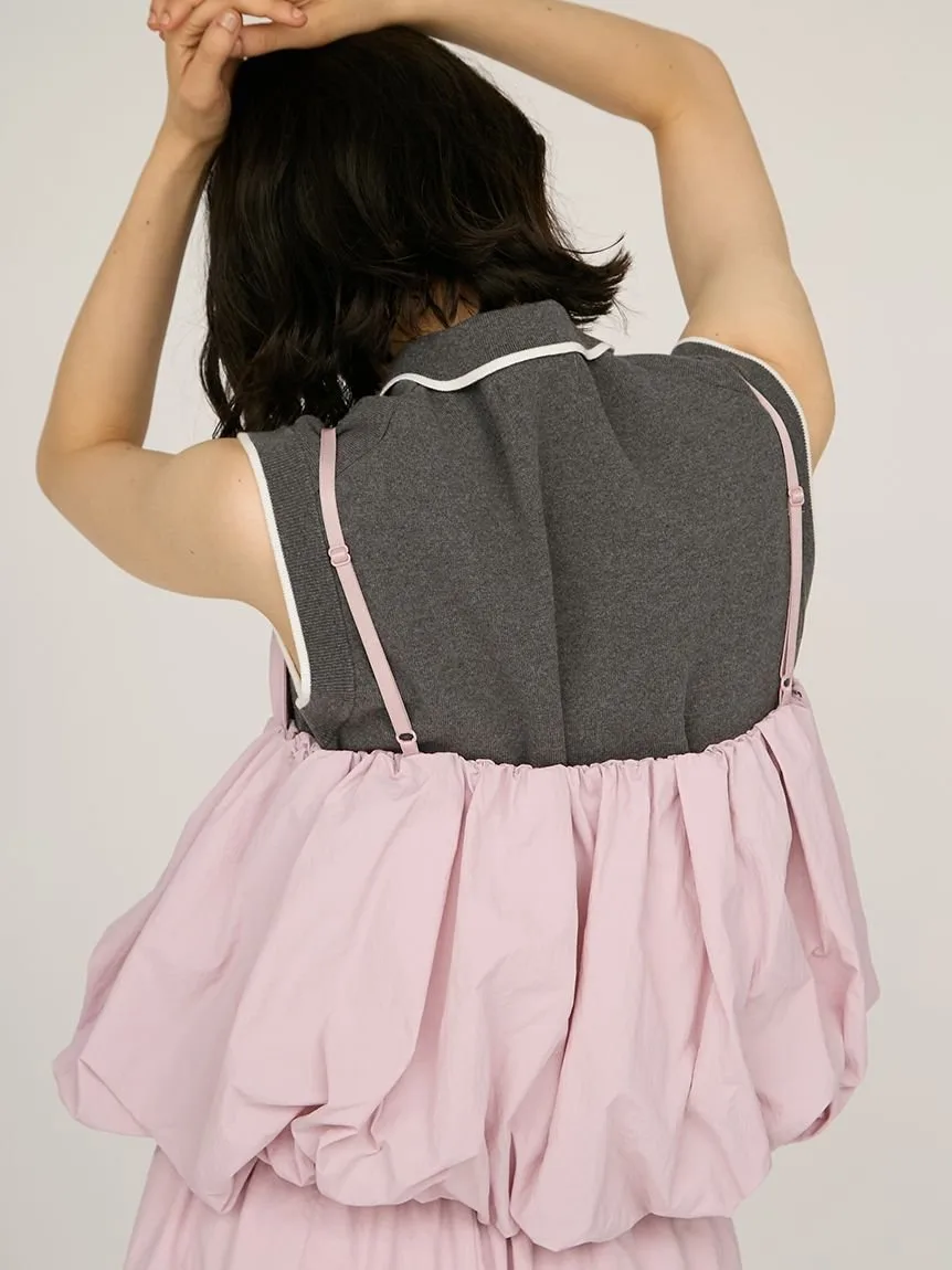 Детали, напоминающие нижнее белье, спереди добавляют спортивный, но в то же время женственный штрих.